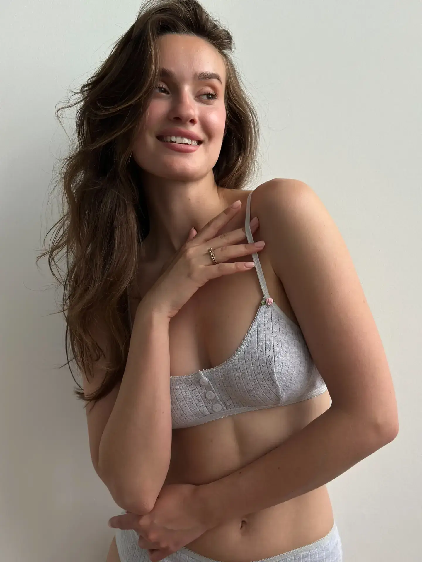 Top braletka z ribany prążkowanej, szary
