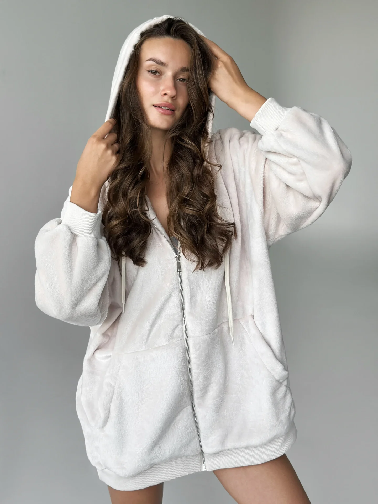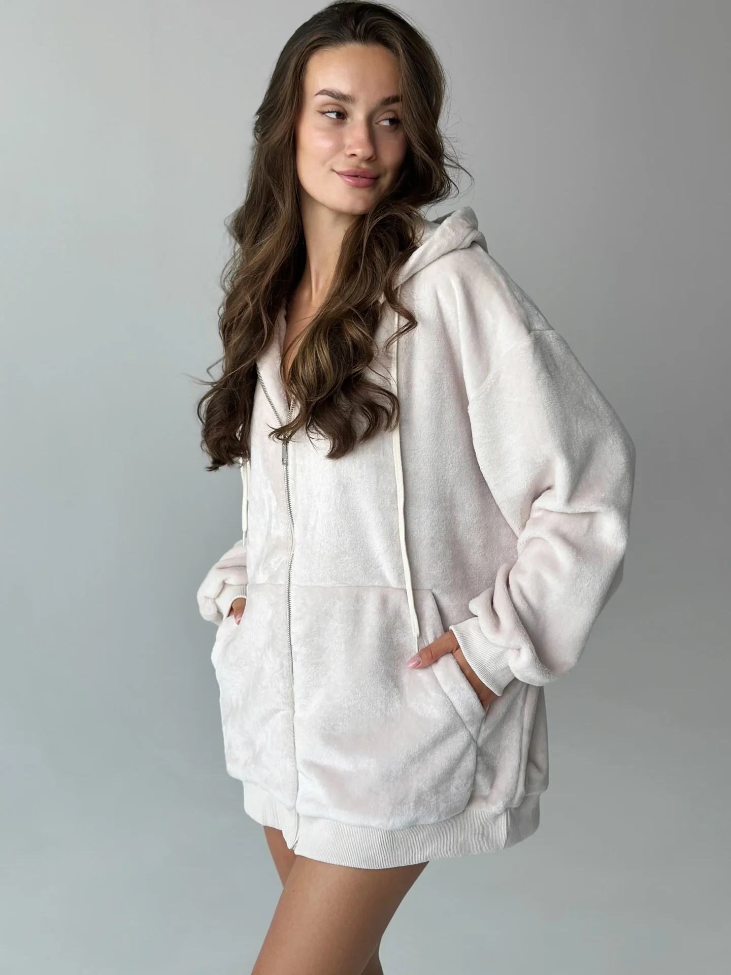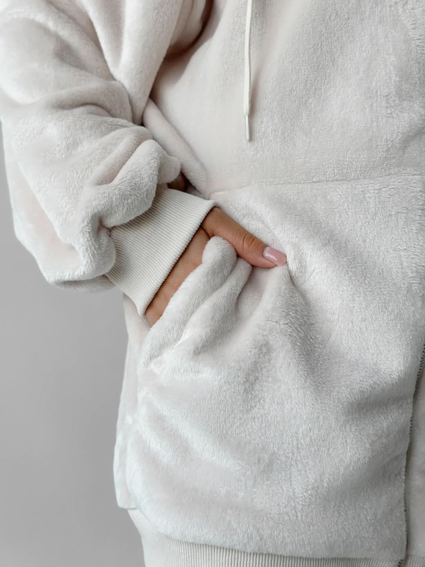 Bluza TEDDY z dwustronnego polaru w kolorze beżowym (one size).Miękka, ciepła i przyjemna w dotyku, wygodna zarówno do domu, jak i na spacery na świeżym powietrzu. Idealna na chłodną pogodę, zapewnia komfort i przytulność.