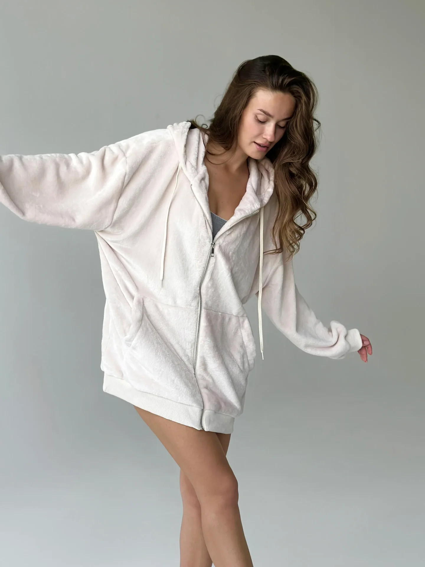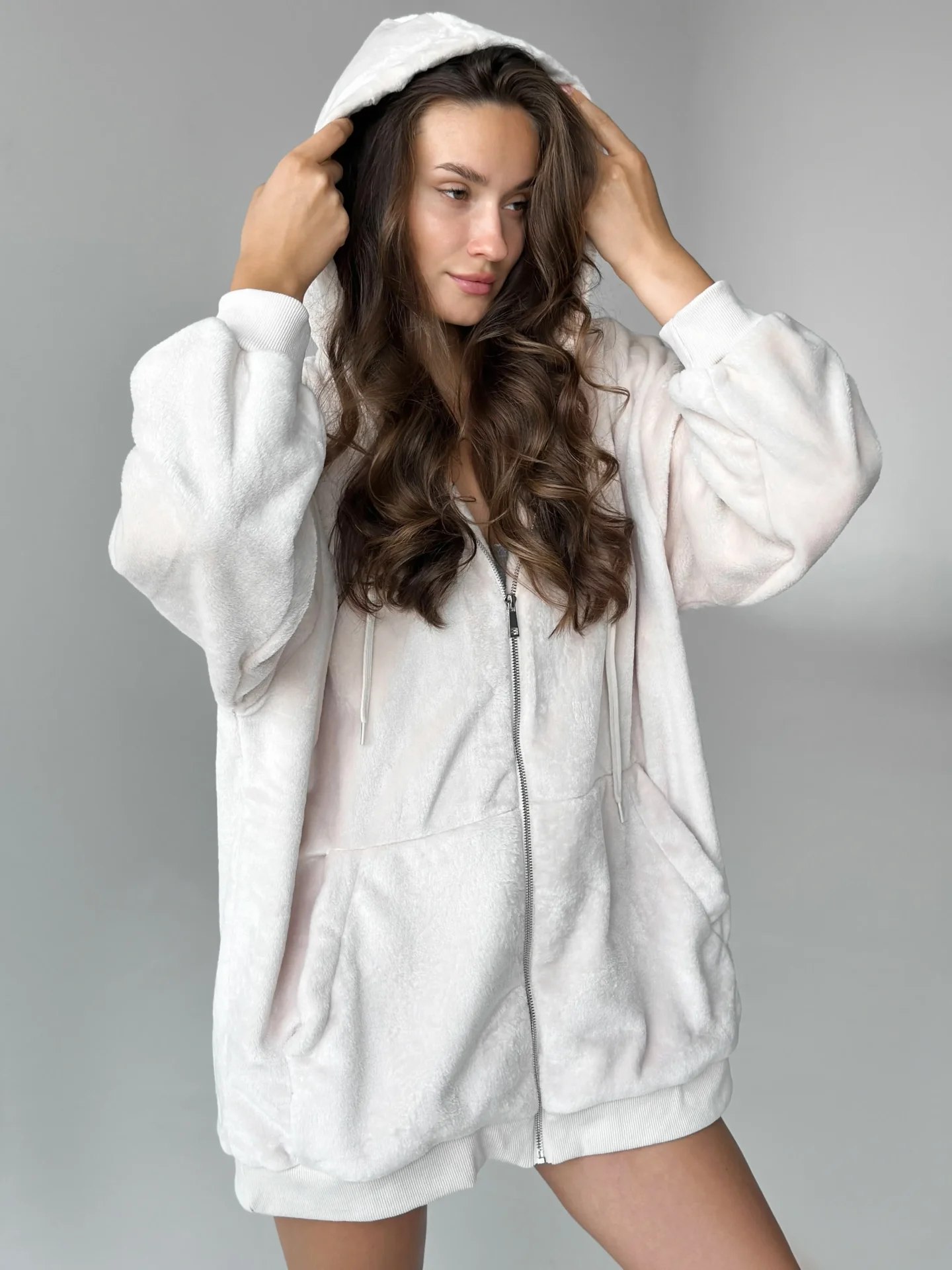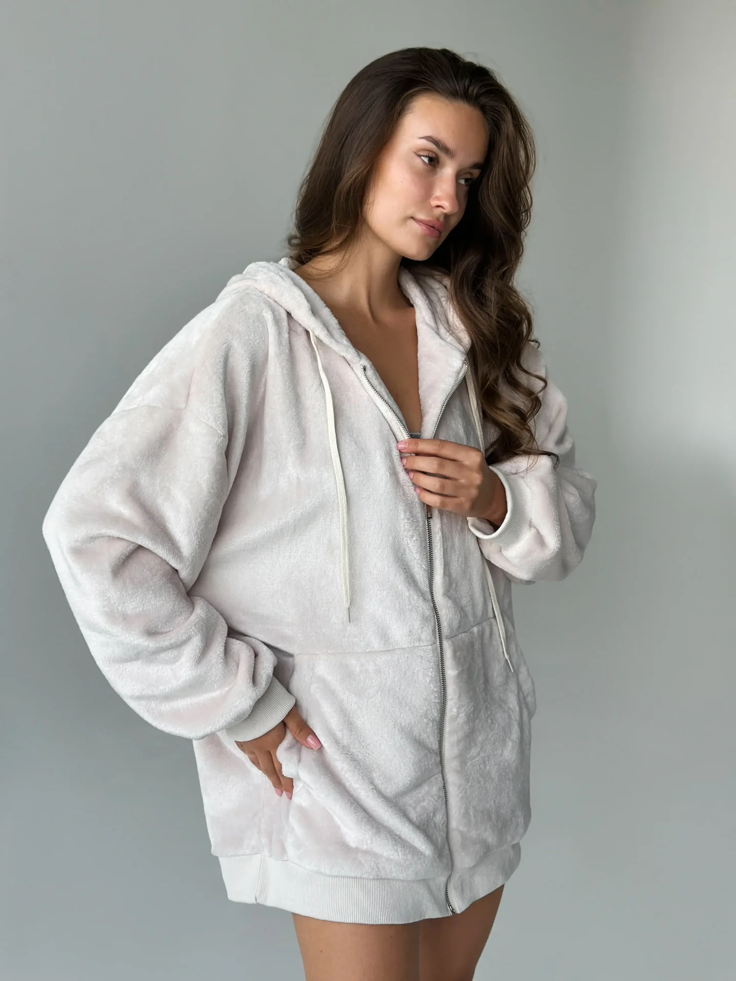 Bluza TEDDY z dwustronnego polaru w kolorze beżowym (one size).Miękka, ciepła i przyjemna w dotyku, wygodna zarówno do domu, jak i na spacery na świeżym powietrzu. Idealna na chłodną pogodę, zapewnia komfort i przytulność.