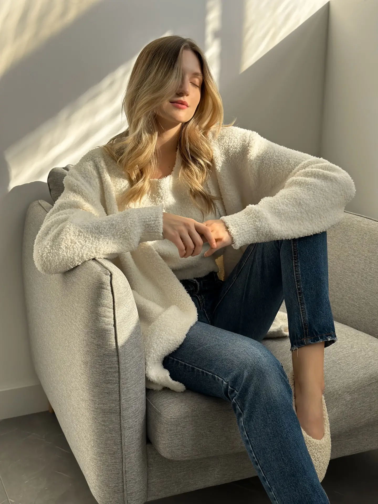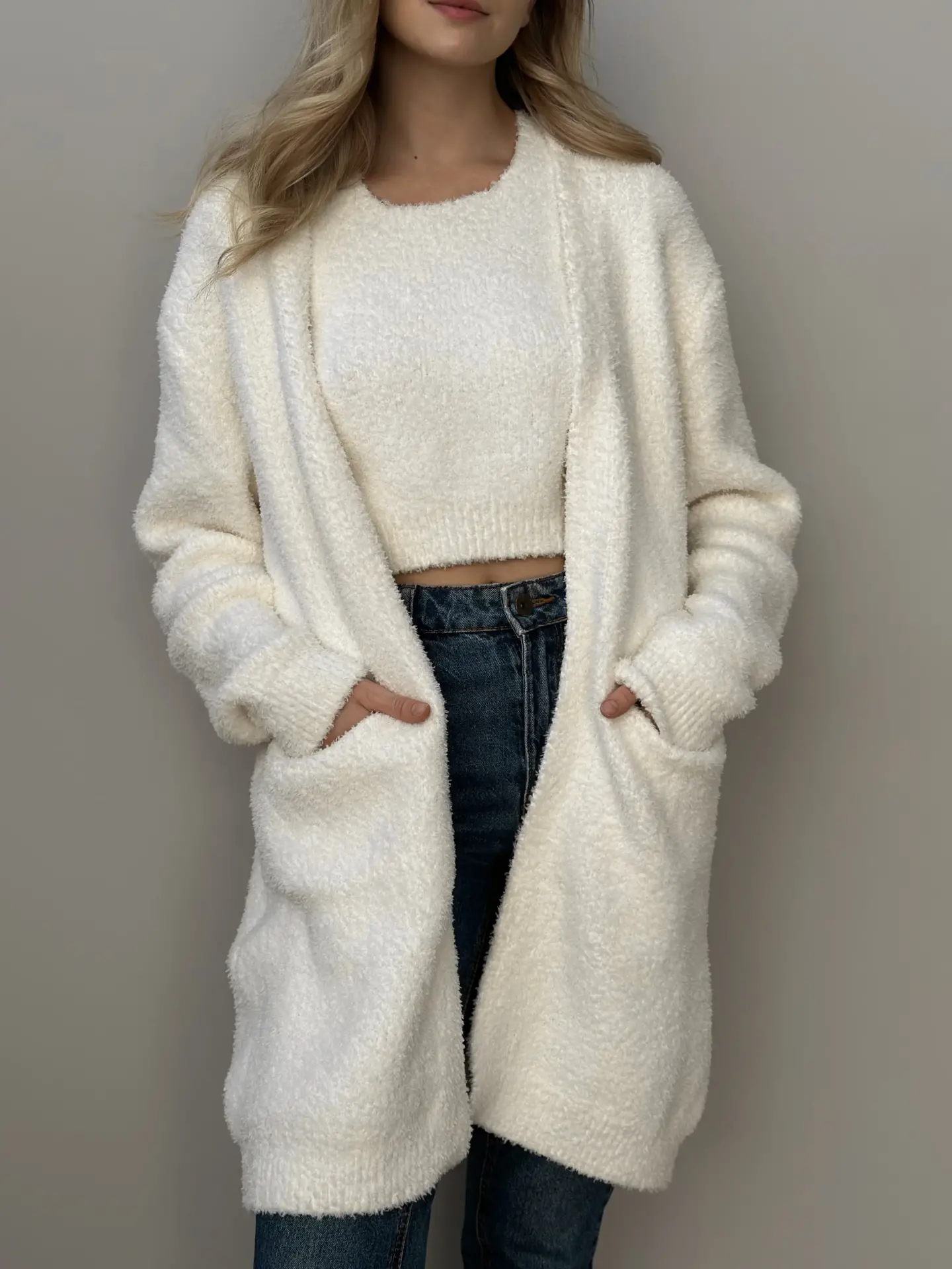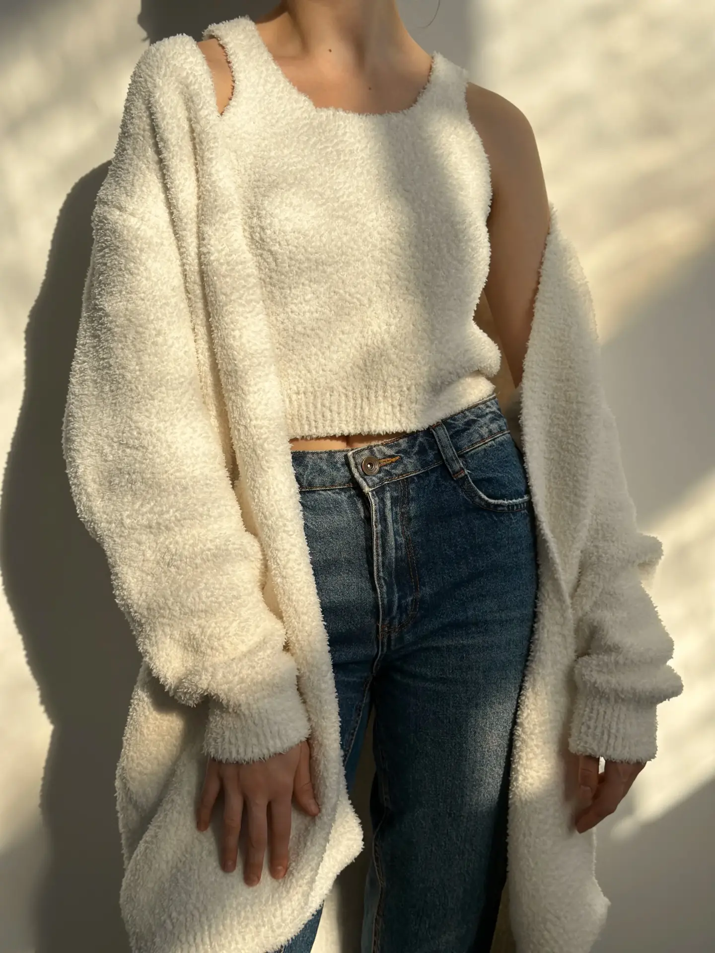 Kardigan SOFT z puszystej przędzy jest stylowy i wygodny. Miękka faktura nadaje produktowi delikatności, dzięki czemu idealnie nadaje się do stworzenia przytulnego wizerunku. Nadaje się zarówno do noszenia na co dzień, jak i na specjalne okazje.