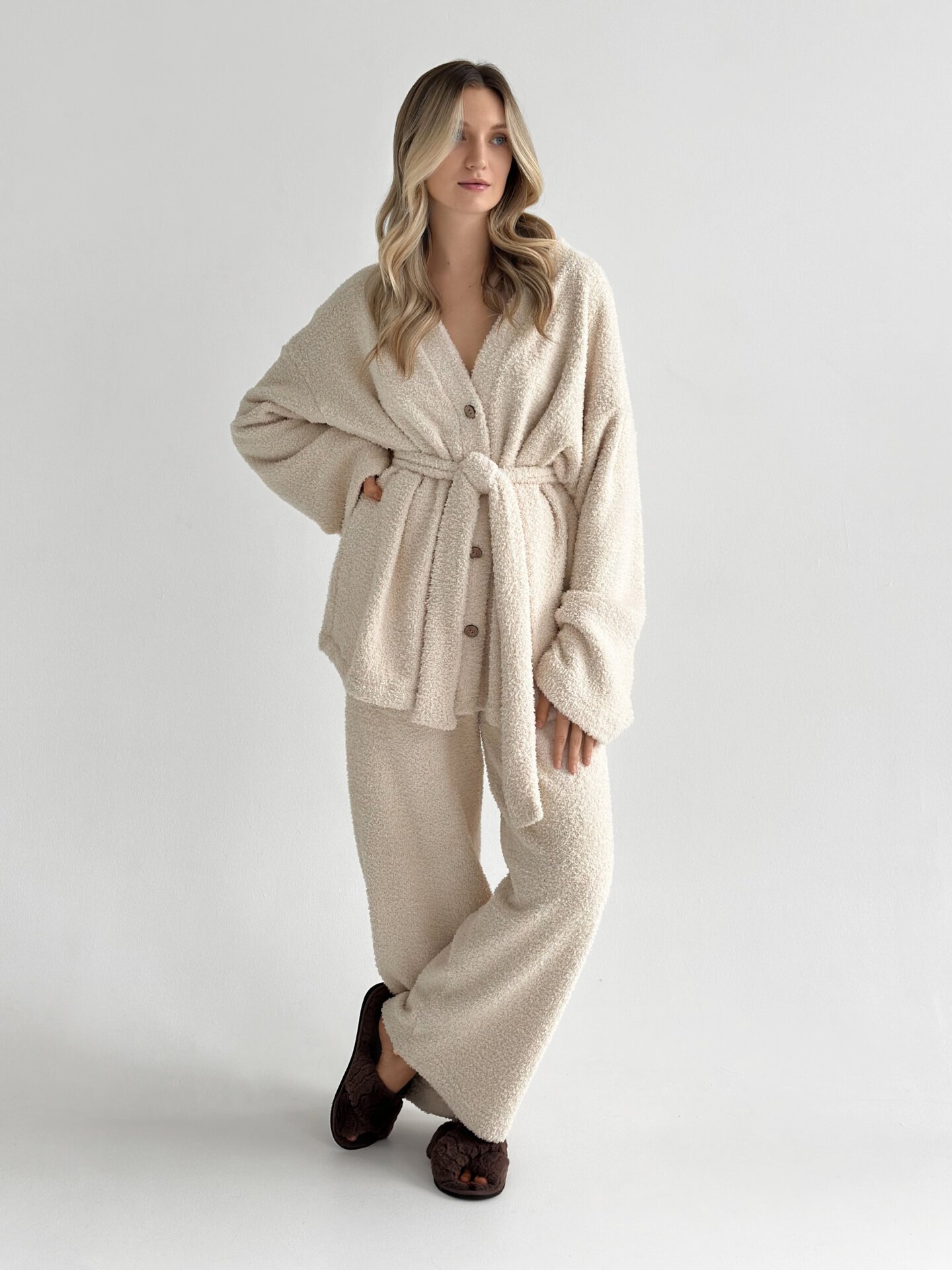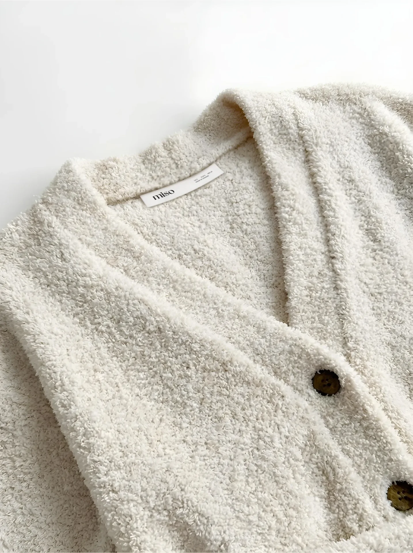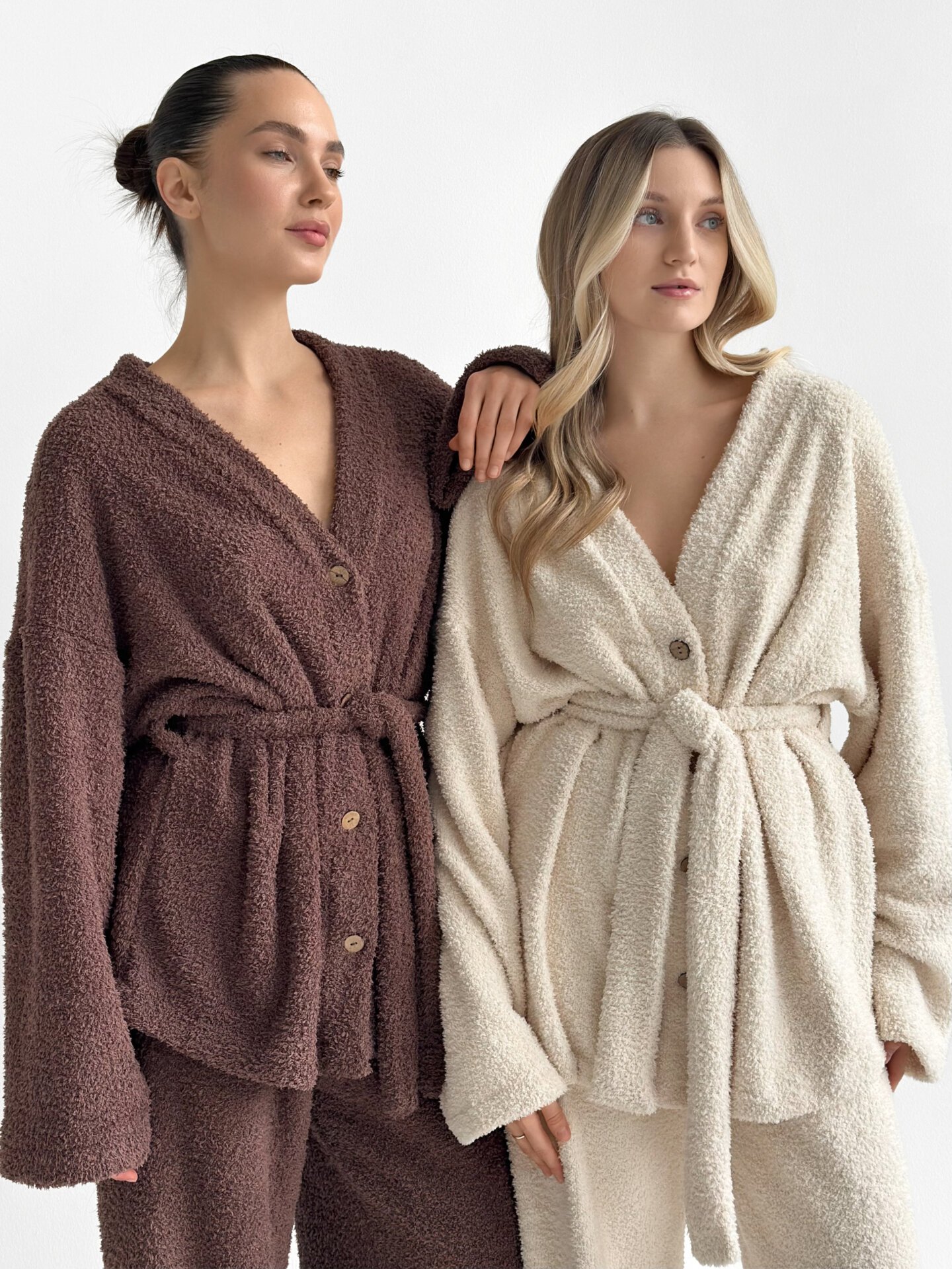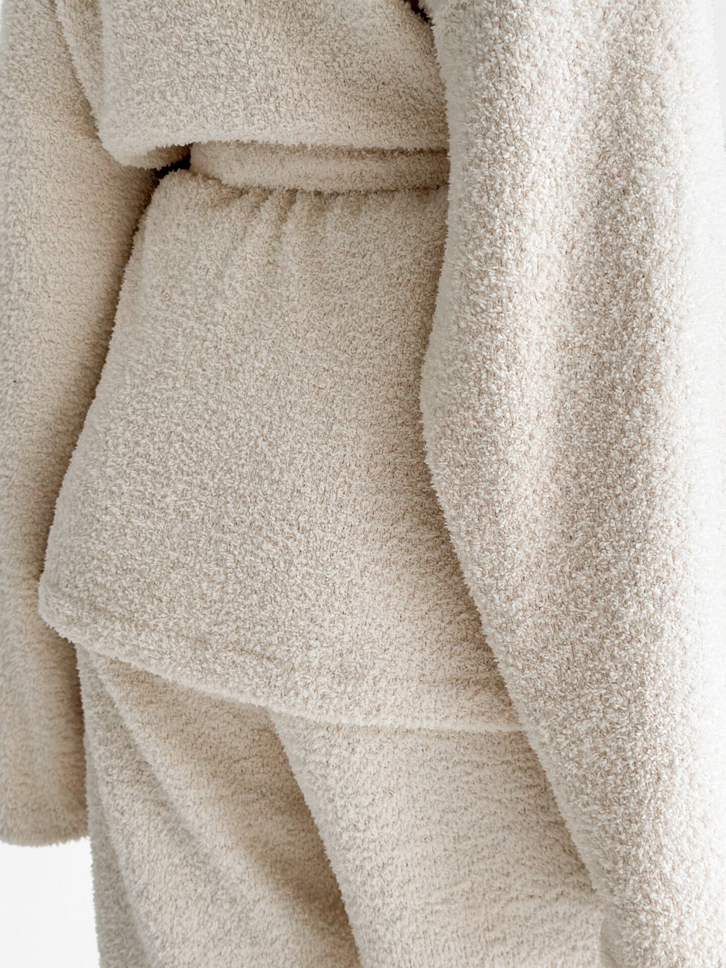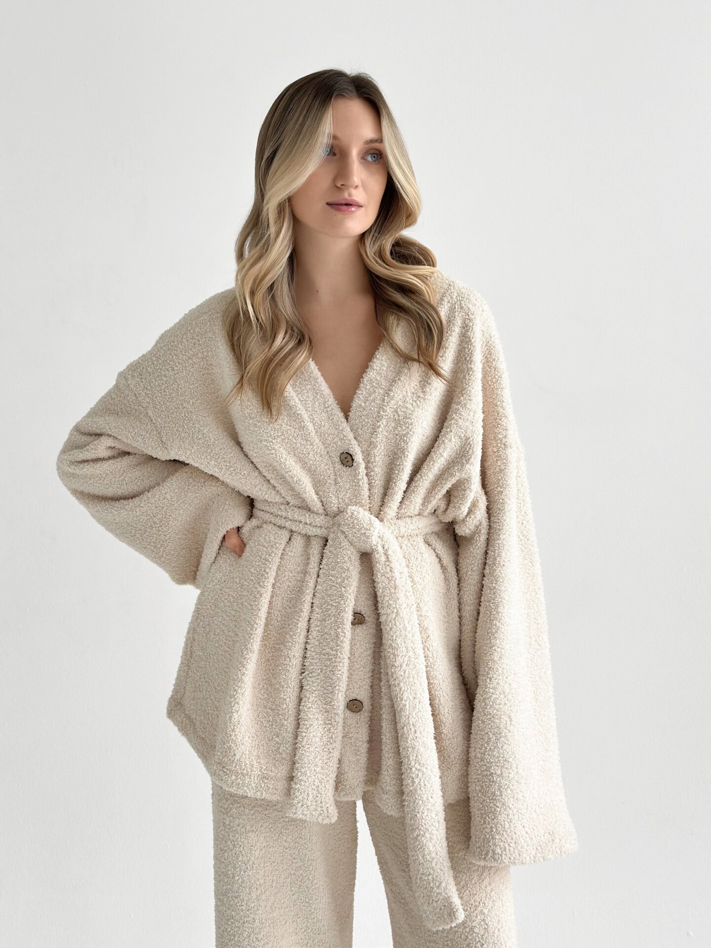 Miękka i przyjemna w dotyku bluza z frotty zapewnia komfort w każdy dzień. Wygodny krój i guziki z przodu sprawiają, że jest praktyczna i jednocześnie stylowa. Idealny wybór na domowy relaks i codzienne stylizacje.