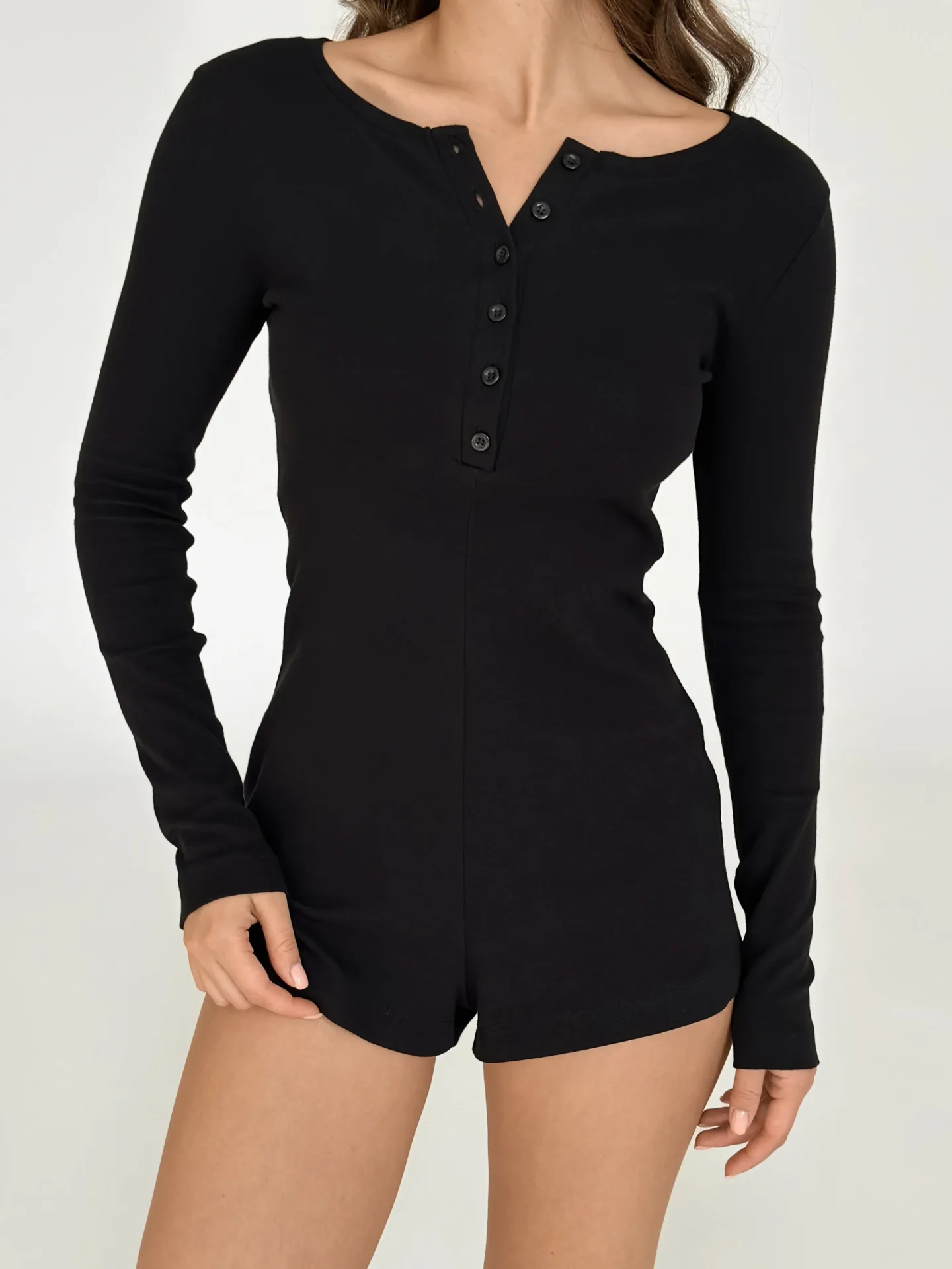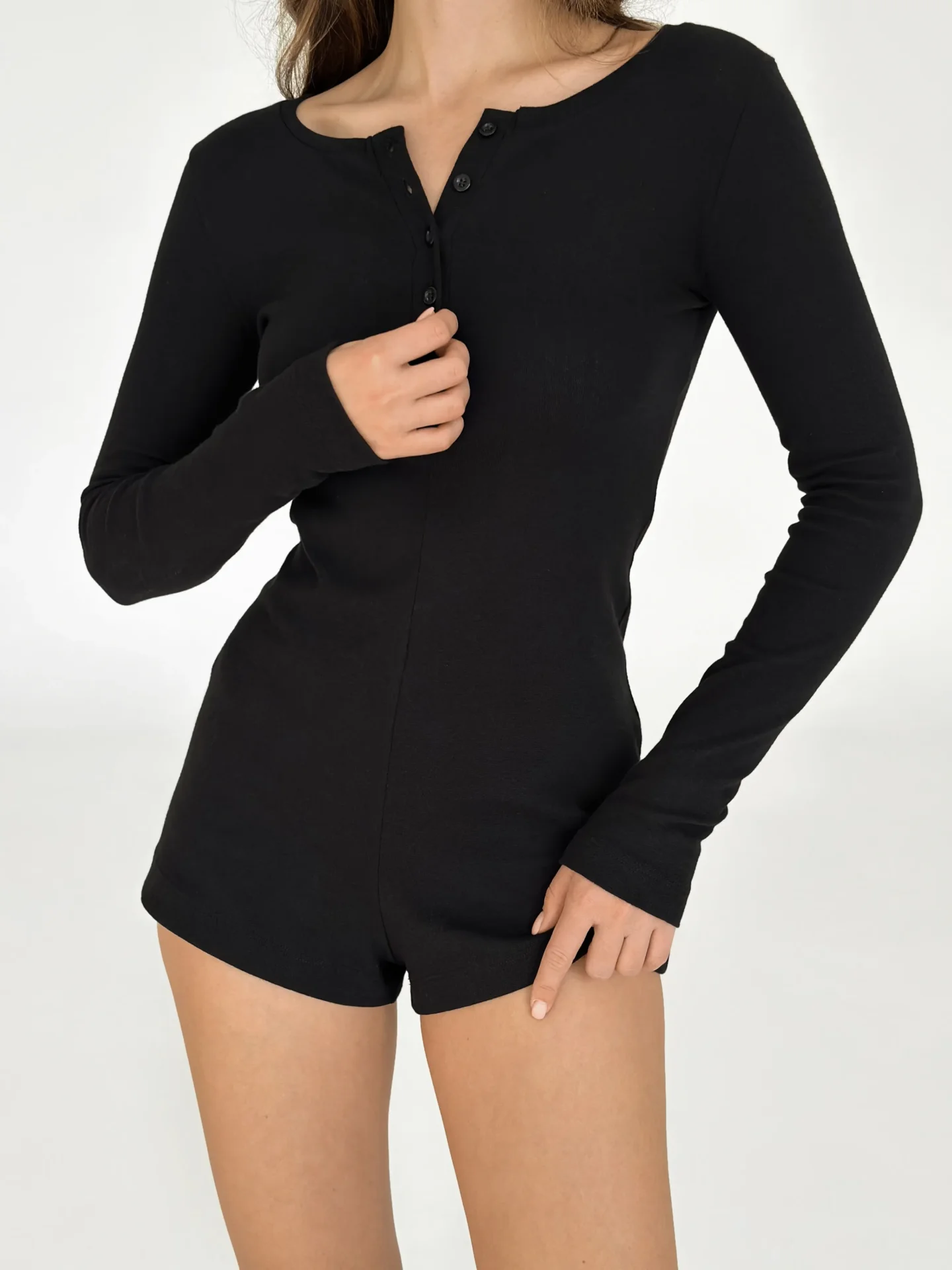 Kombinezon z długim rękawem, z ribany w kropki, czarny - Miso