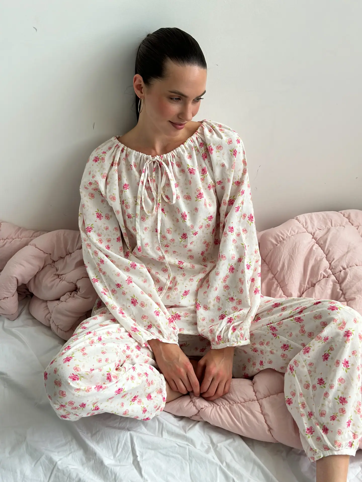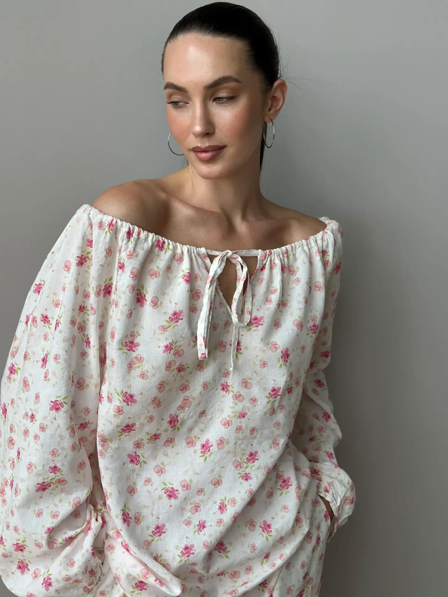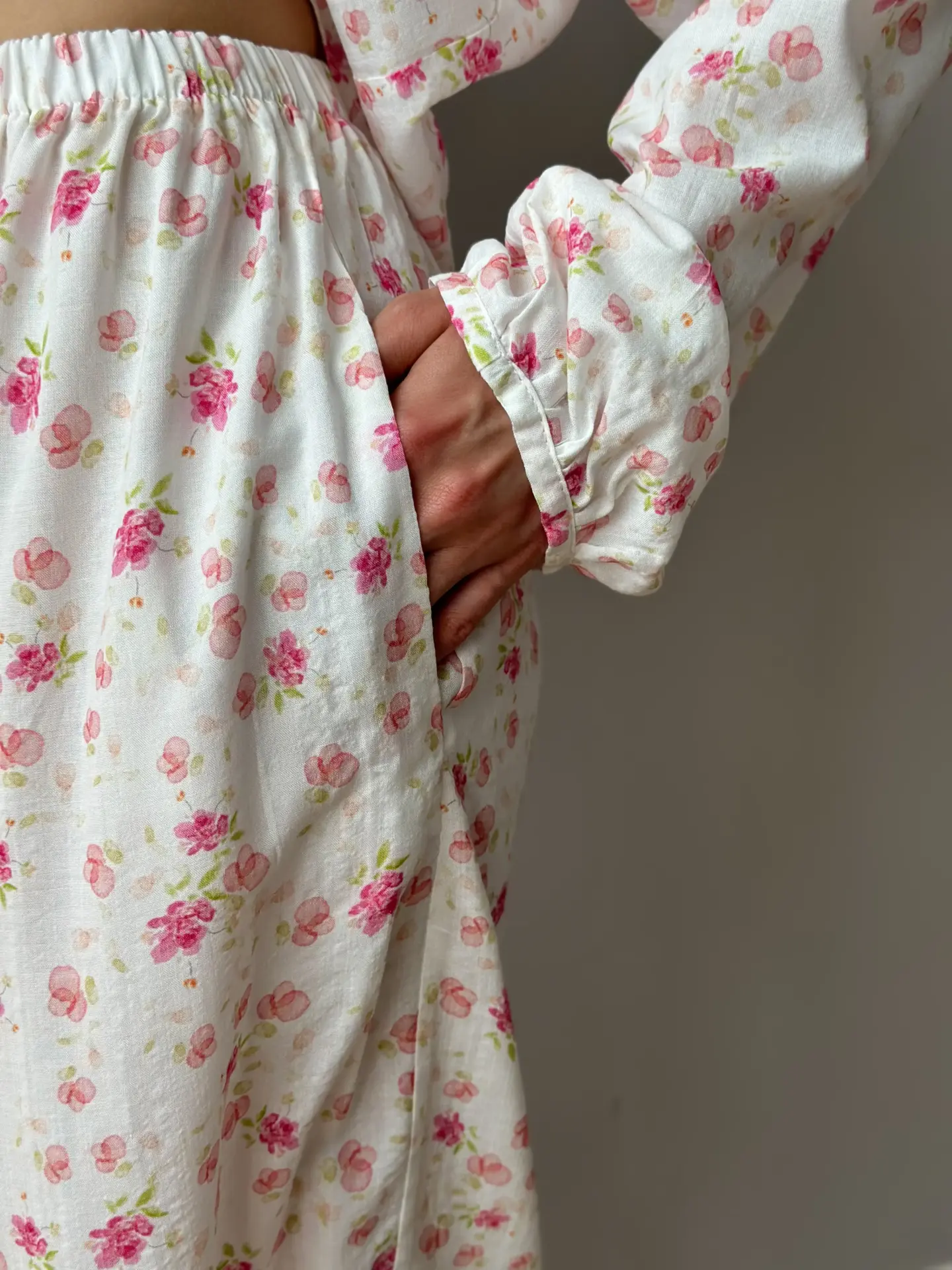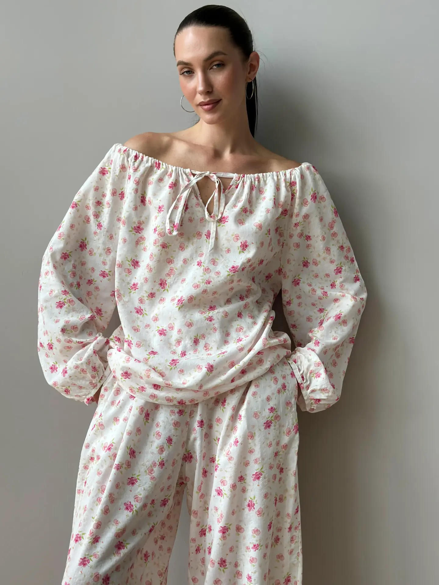Komplet: koszula z tunelem i spodnie szarawary z batystu — lekki i komfortowy zestaw na letnie dni. Koszula z tunelem pozwala regulować objętość i tworzyć różne sylwetki, a luźne szarawary zapewniają swobodę ruchów i maksymalny komfort. Batystowa tkanina jest delikatna, oddychająca i przyjemna dla ciała. Idealny wybór na wypoczynek, spacery lub swobodne miejskie stylizacje.