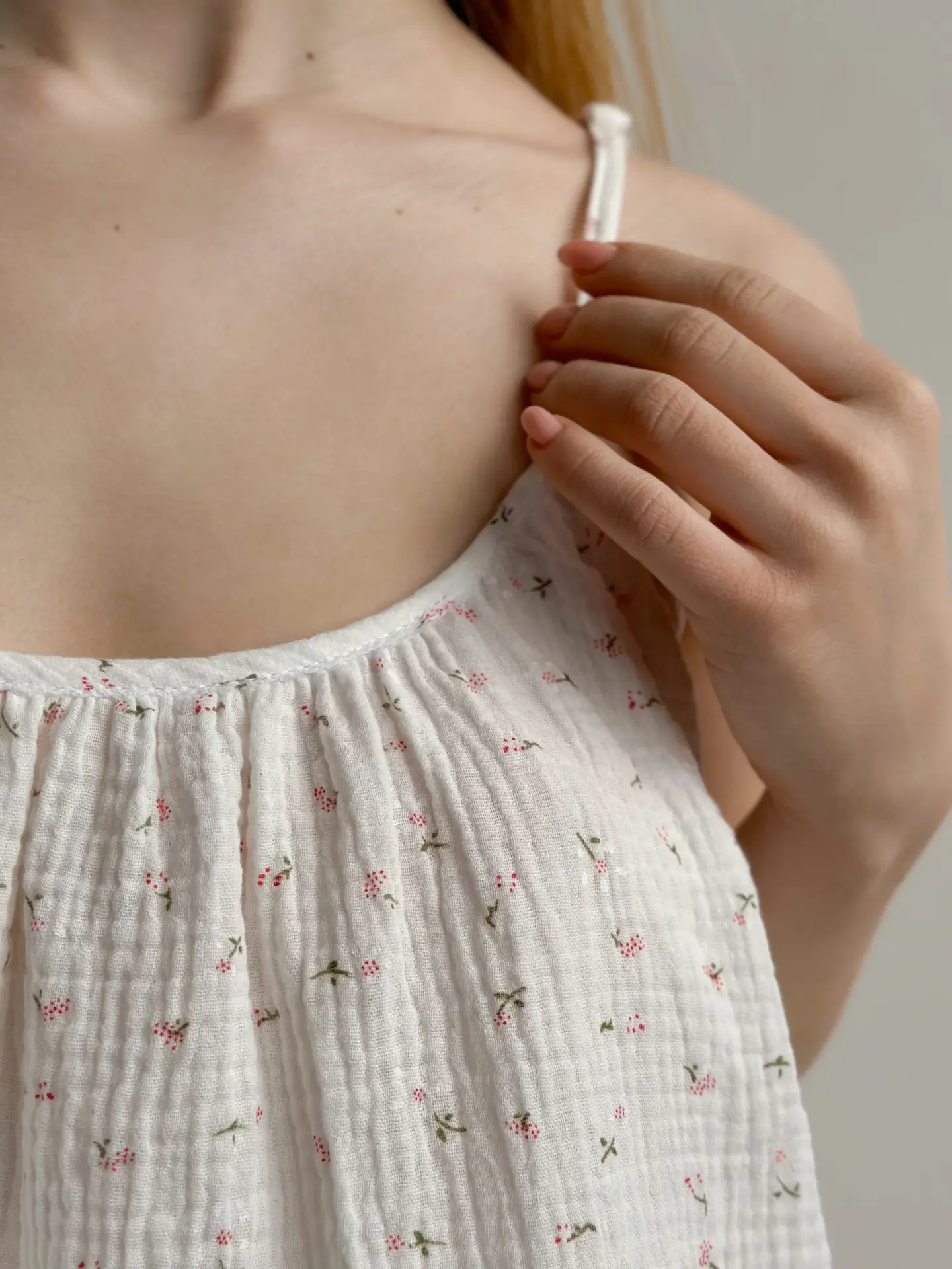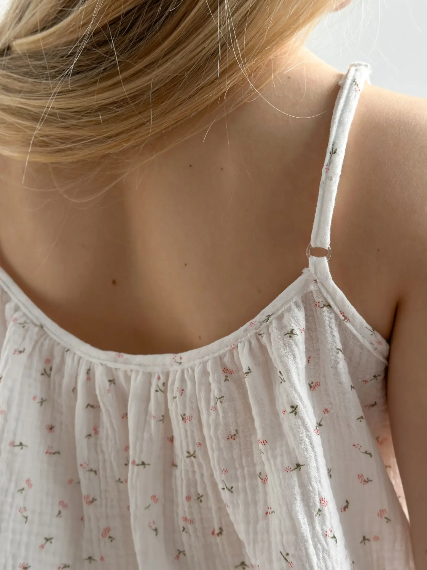 Komplet koszulka na ramiączkach i szorty, z muślinu, biały w stokrotki