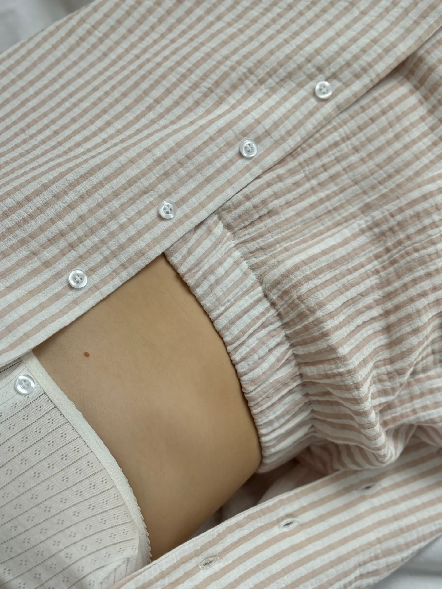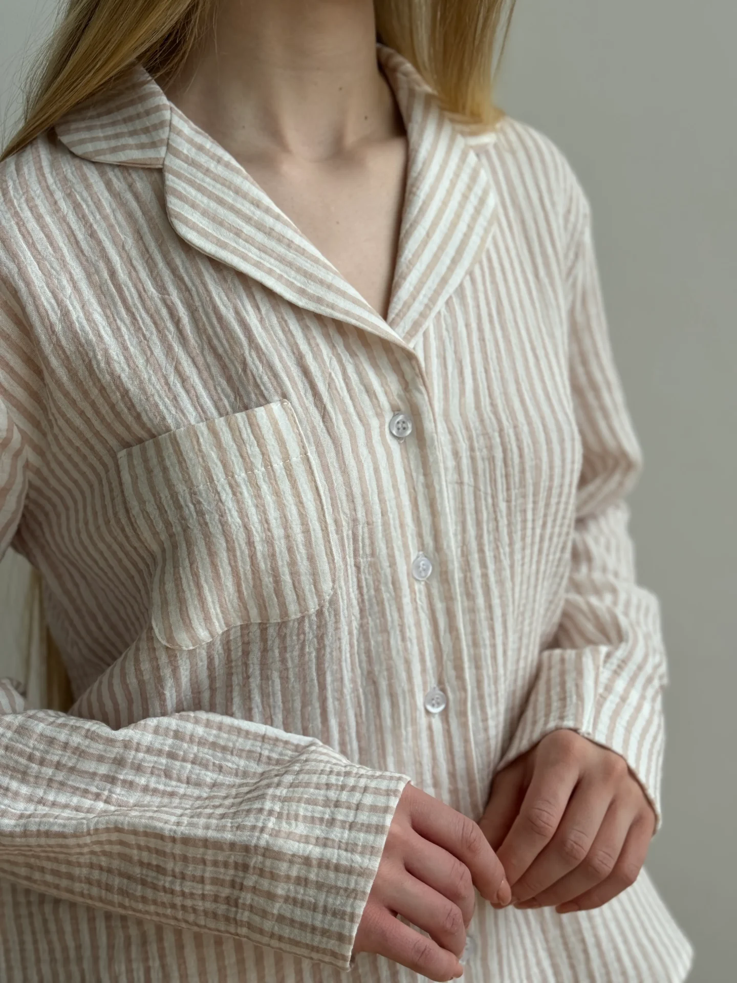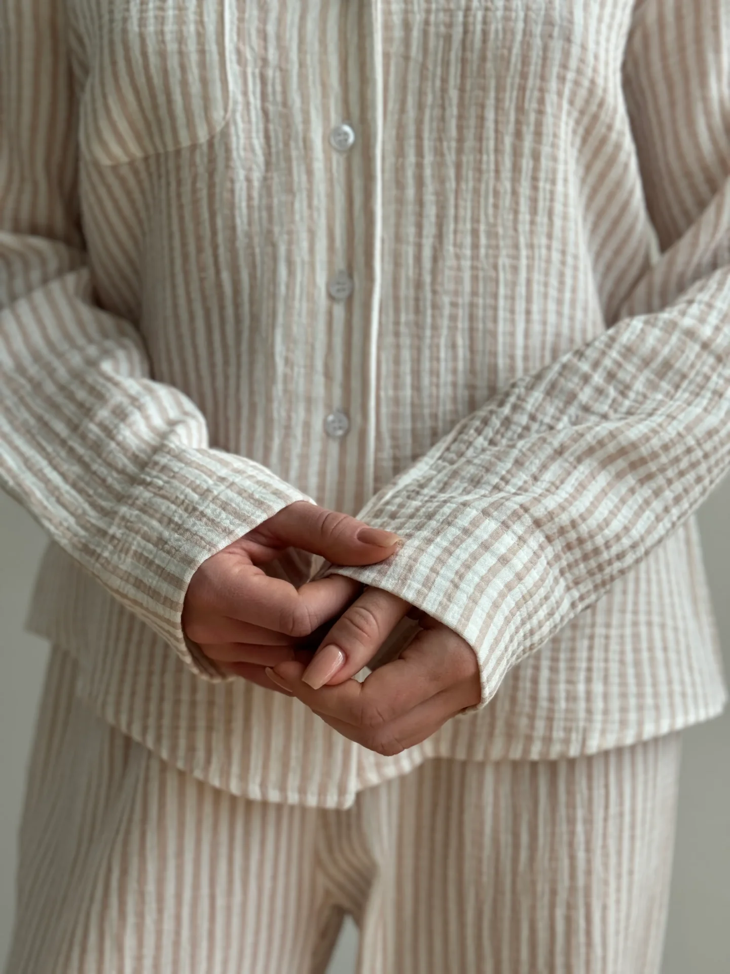 Komplet koszula i spodnie, z muślinu, w beżowe paski
