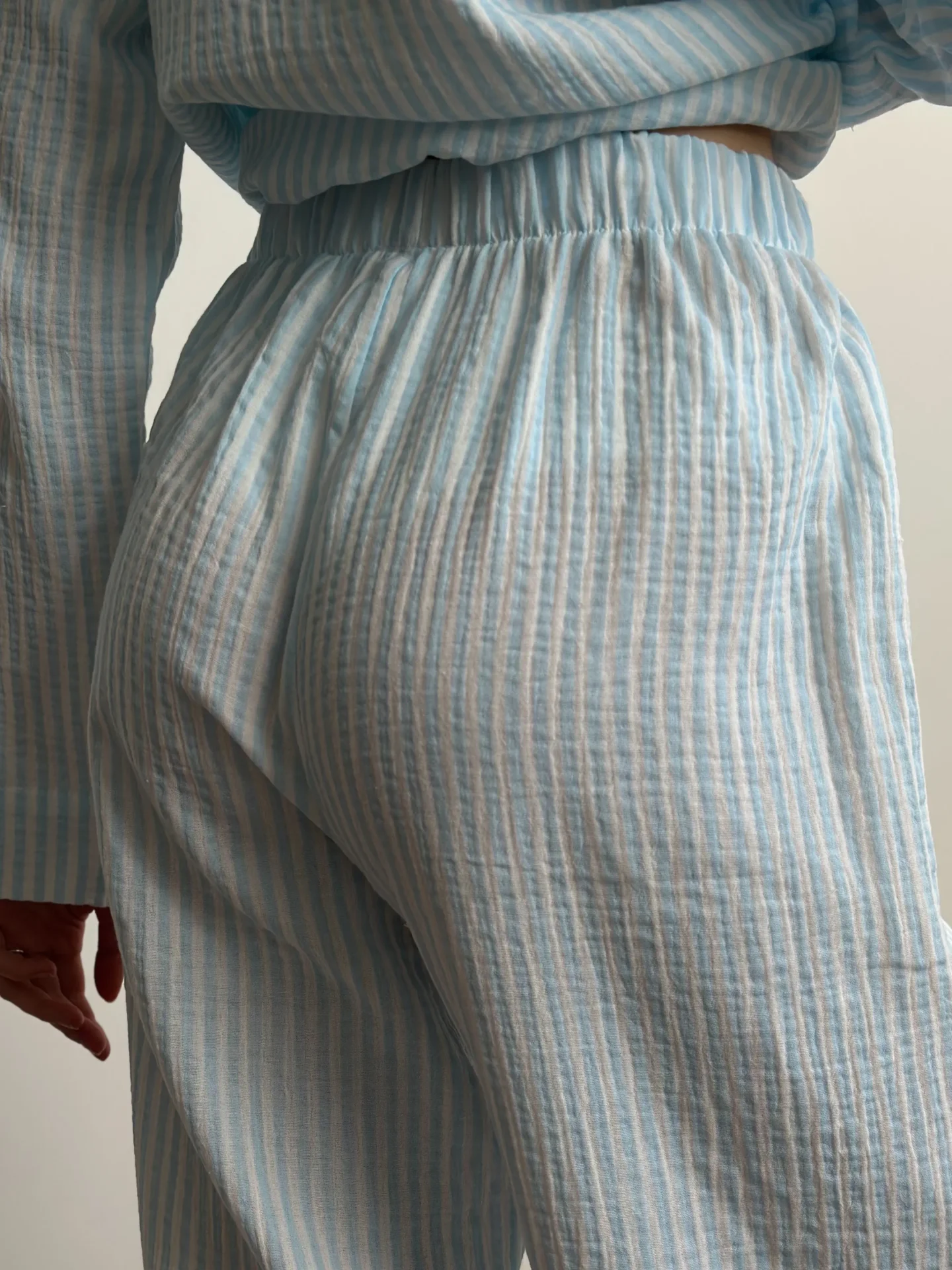 Komplet koszula i spodnie, z muślinu, w niebieskie paski