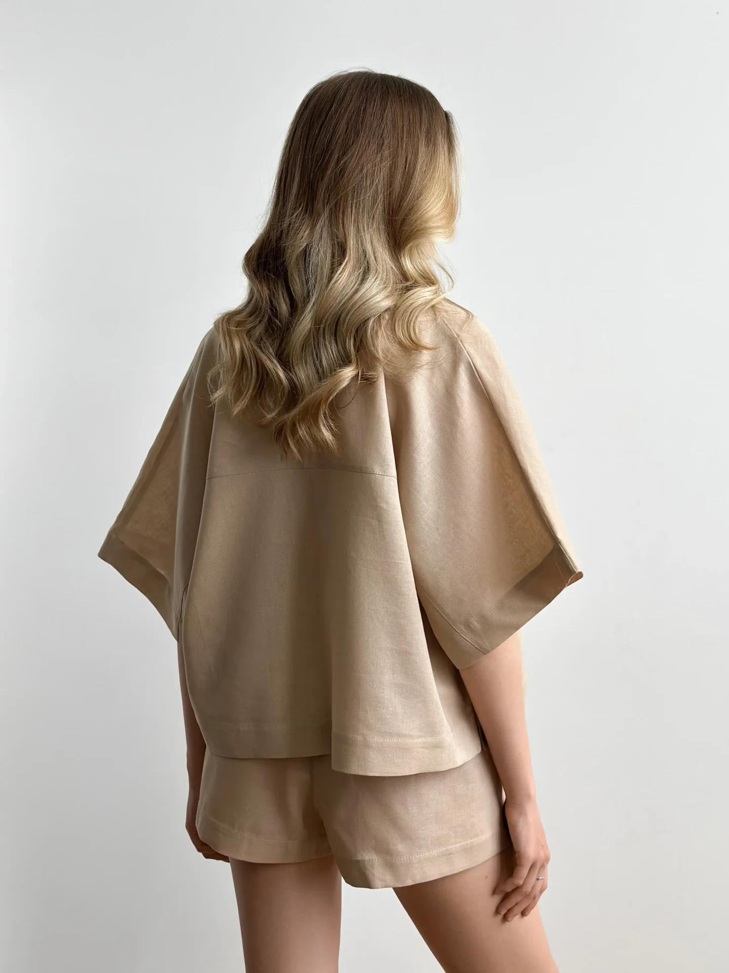 Koszula Polo z naturalnego lnu łączy klasyczny krój z nowoczesną prostotą. Len zapewnia komfort w ciepłe dni dzięki swojej przewiewnej strukturze i przyjemnemu w dotyku materiałowi. Kołnierzyk dodaje stylizacji schludności, a luźny fason nie krępuje ruchów. Idealna do codziennych letnich stylizacji, spacerów i odpoczynku.