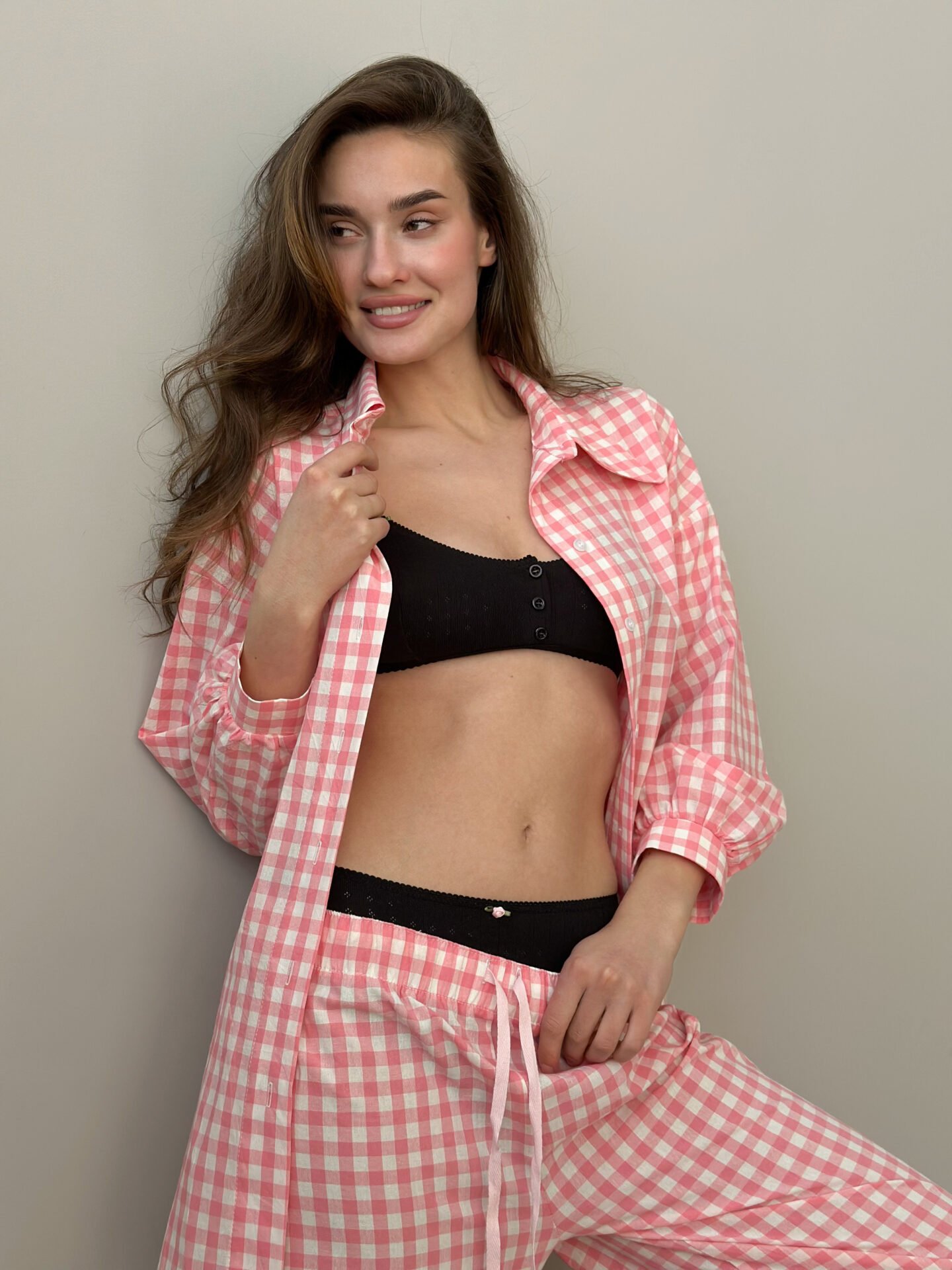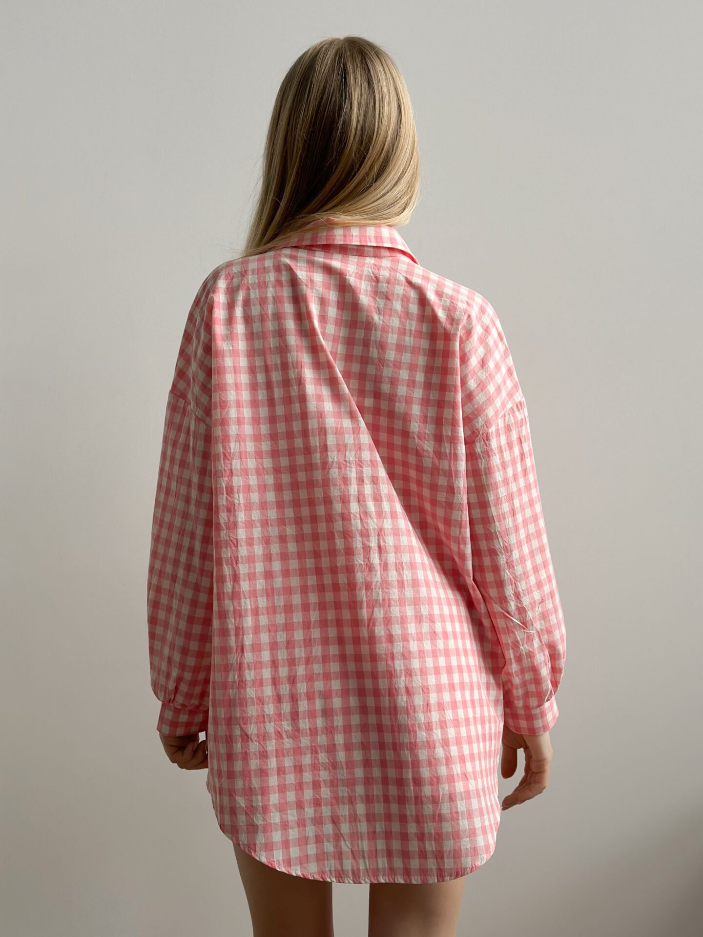 Koszula z bawełny pranej, w różową kratkę