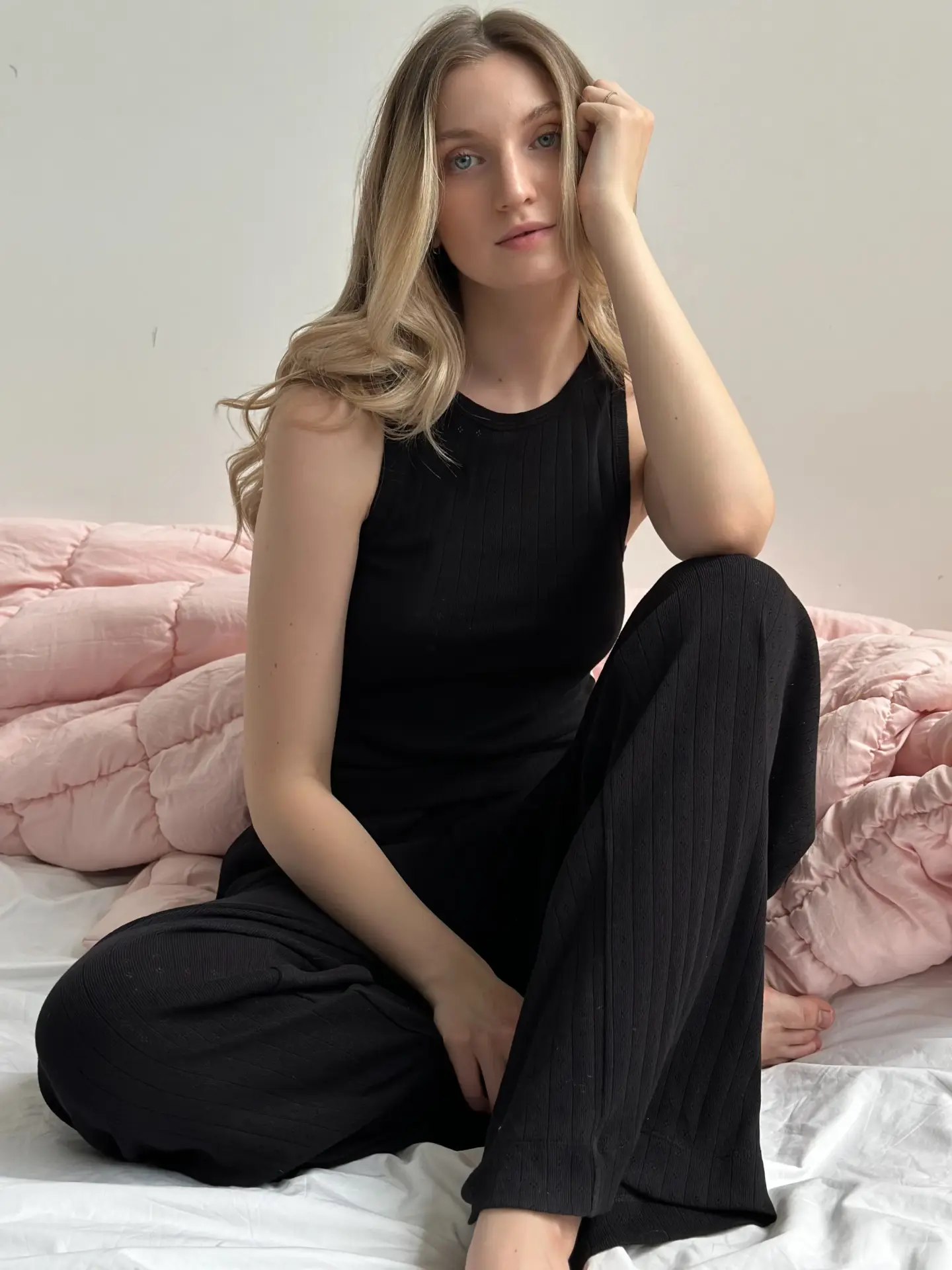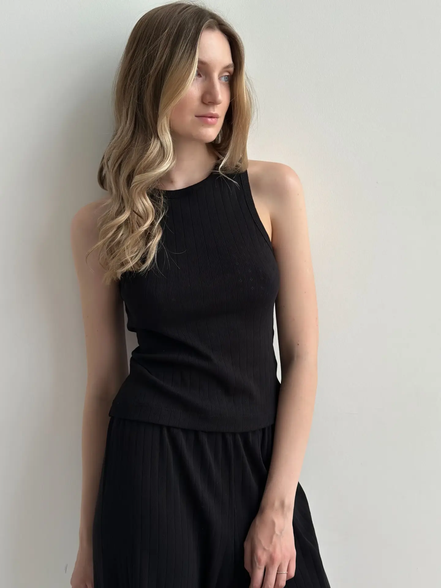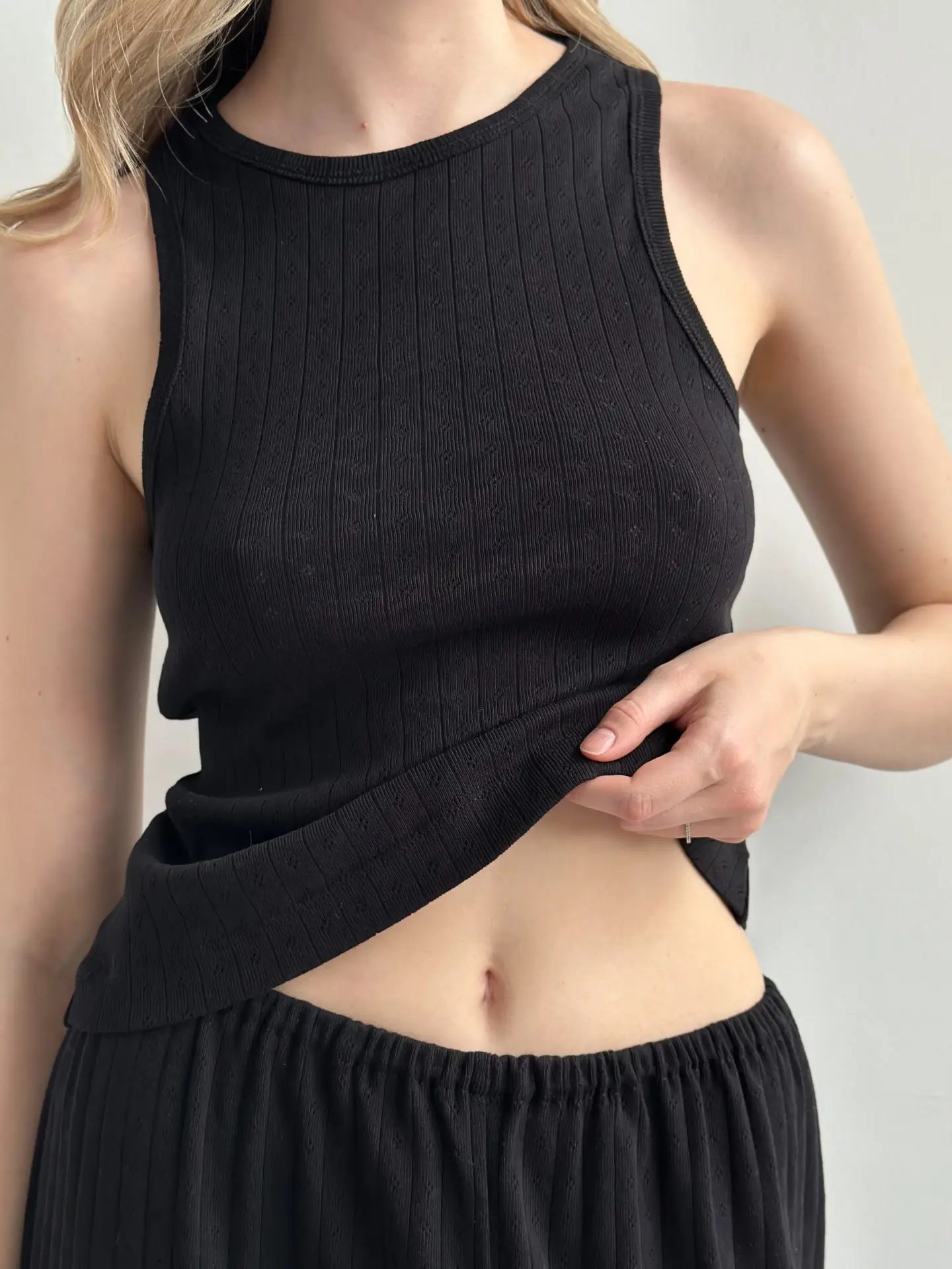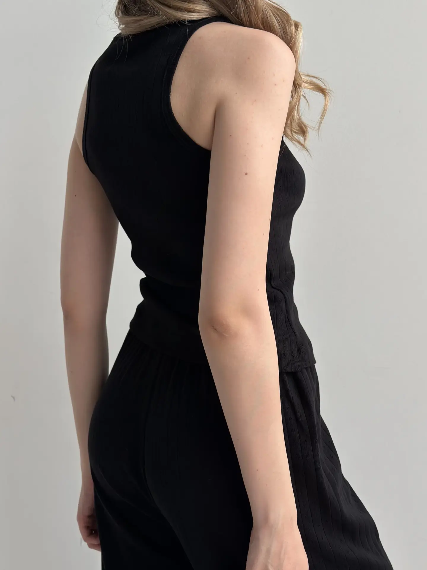 Koszulka bez rękawów z ribany prążkowanej, czarna