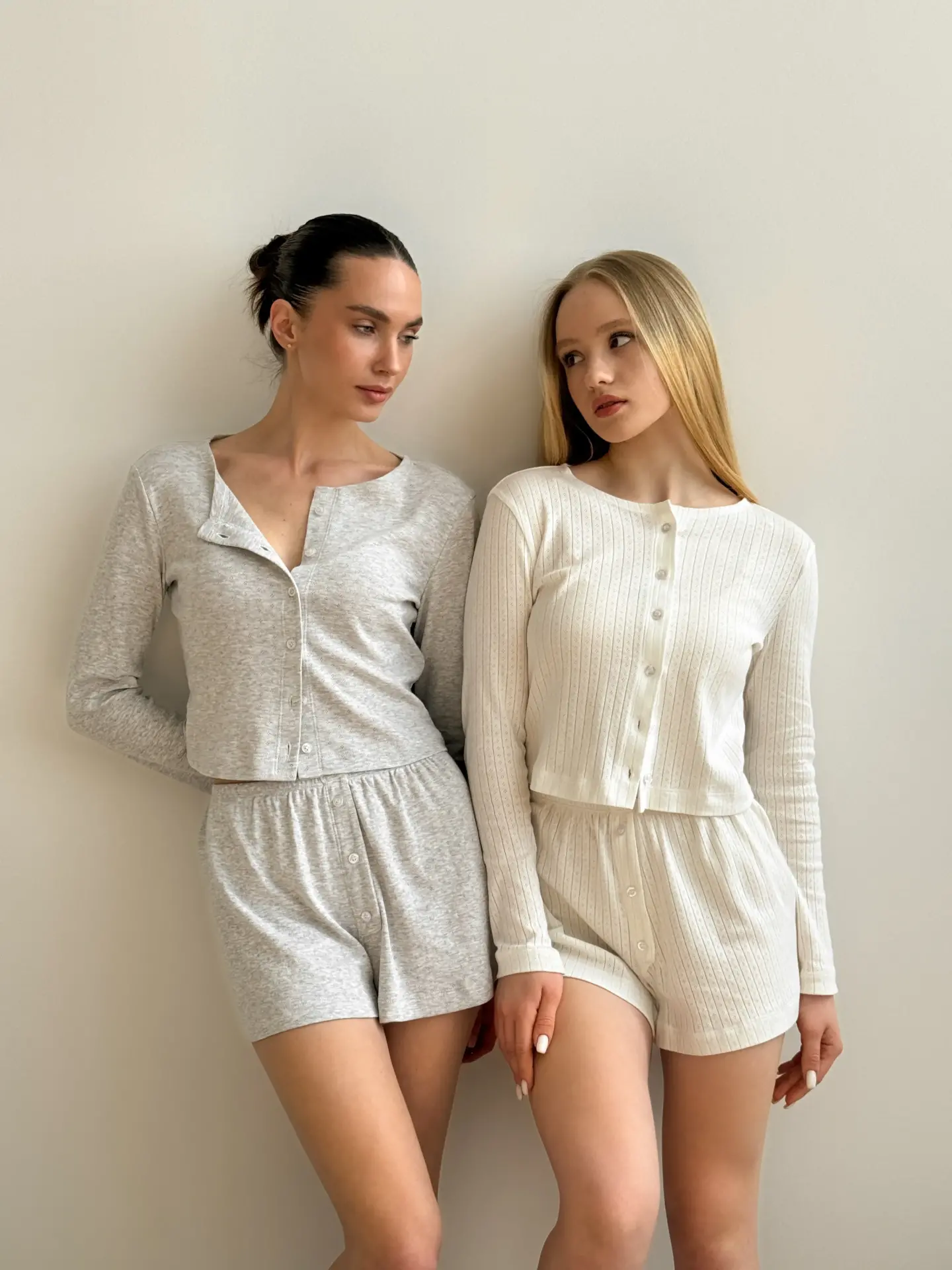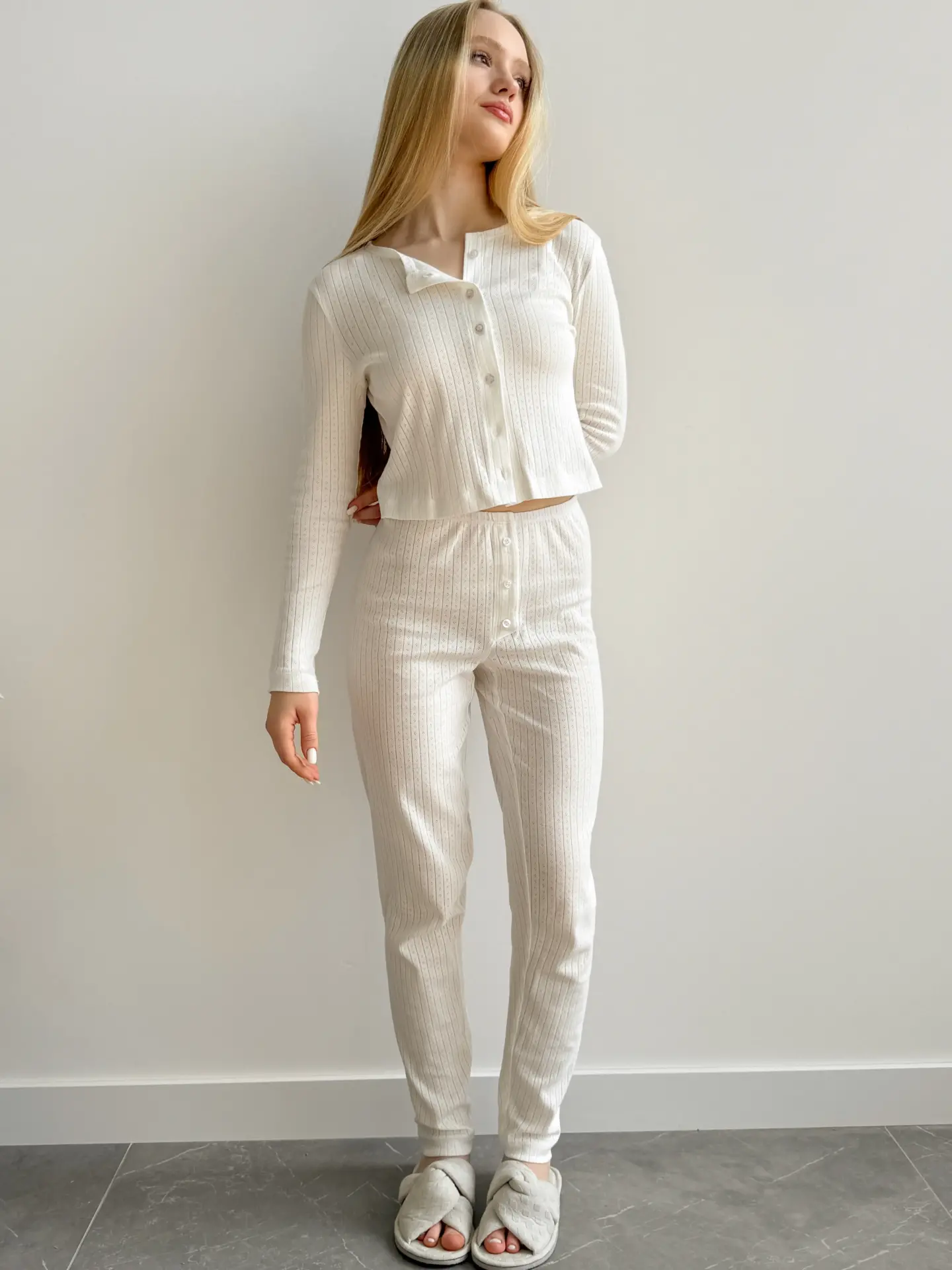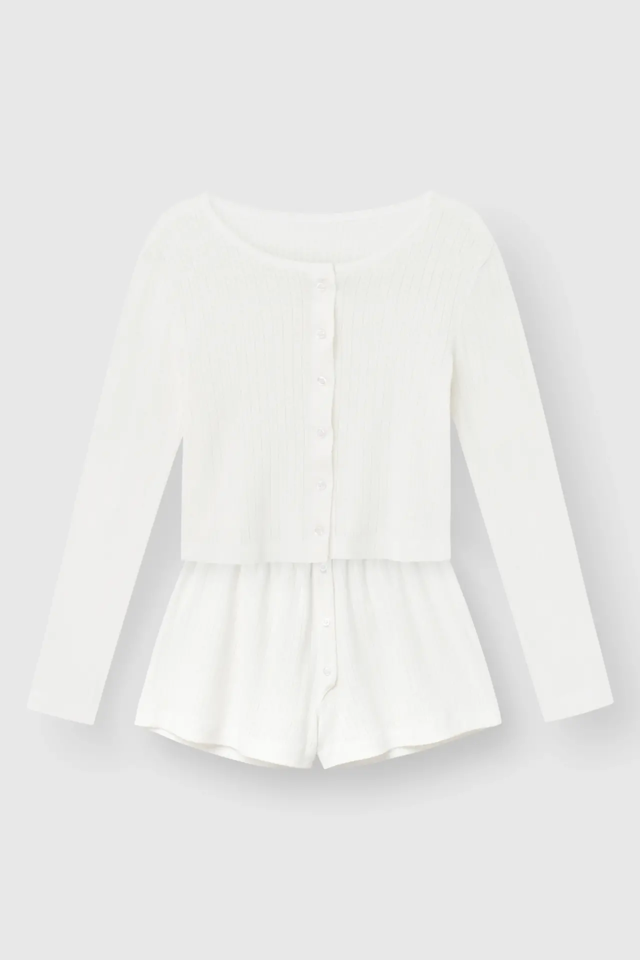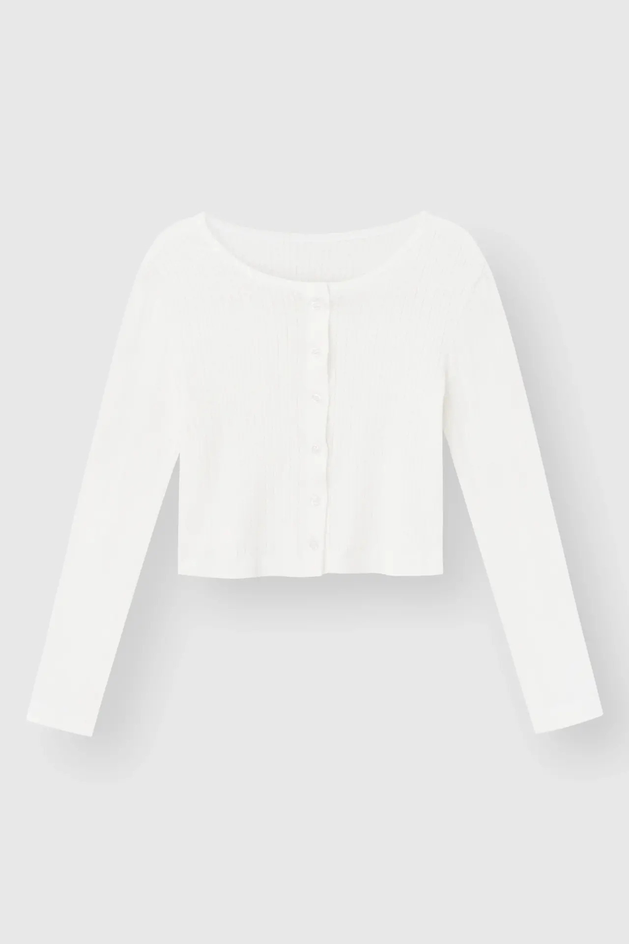 Koszulka longsleeve rozpinana z guzikami, z ribany prążkowanej, mleczna