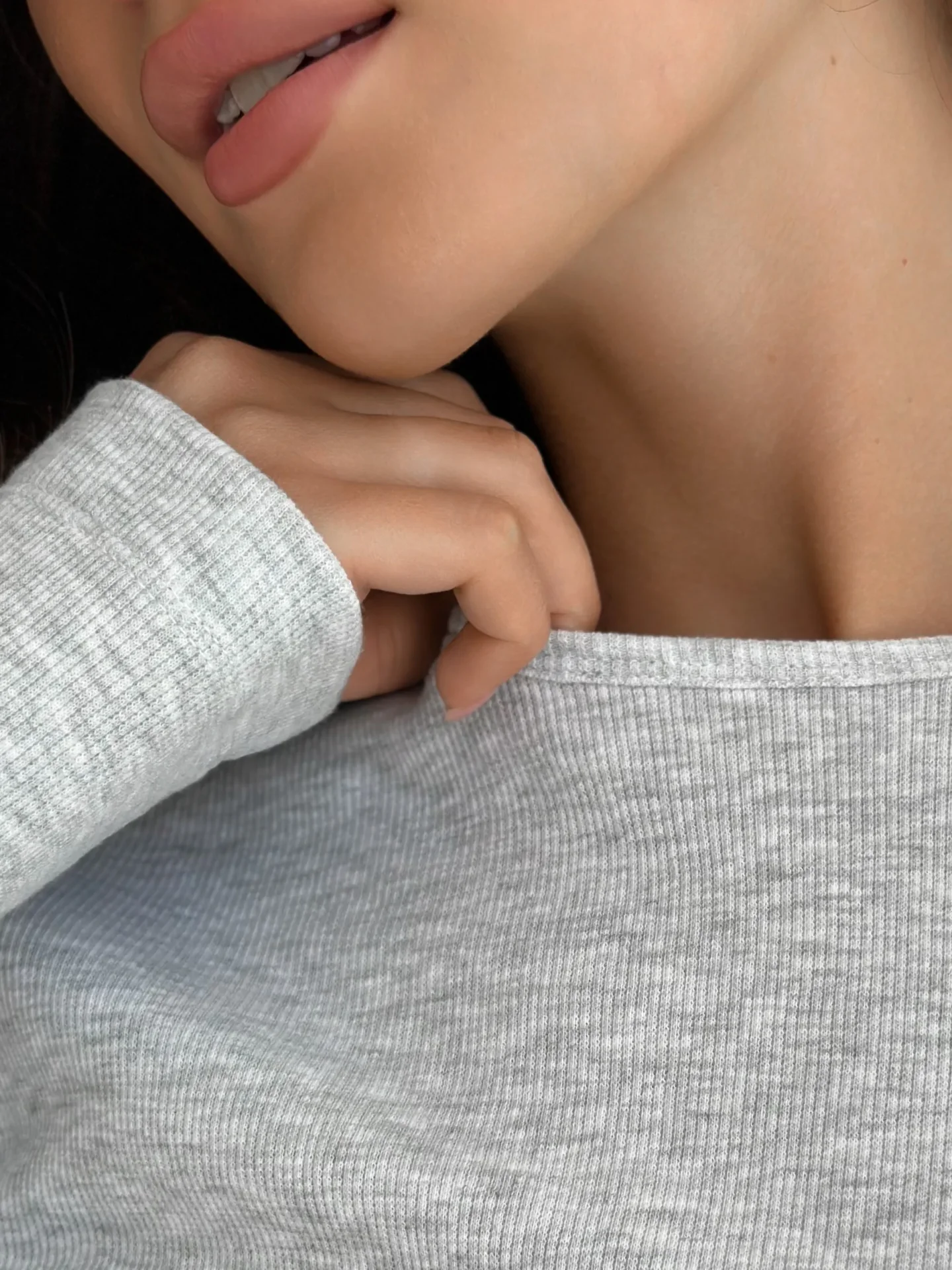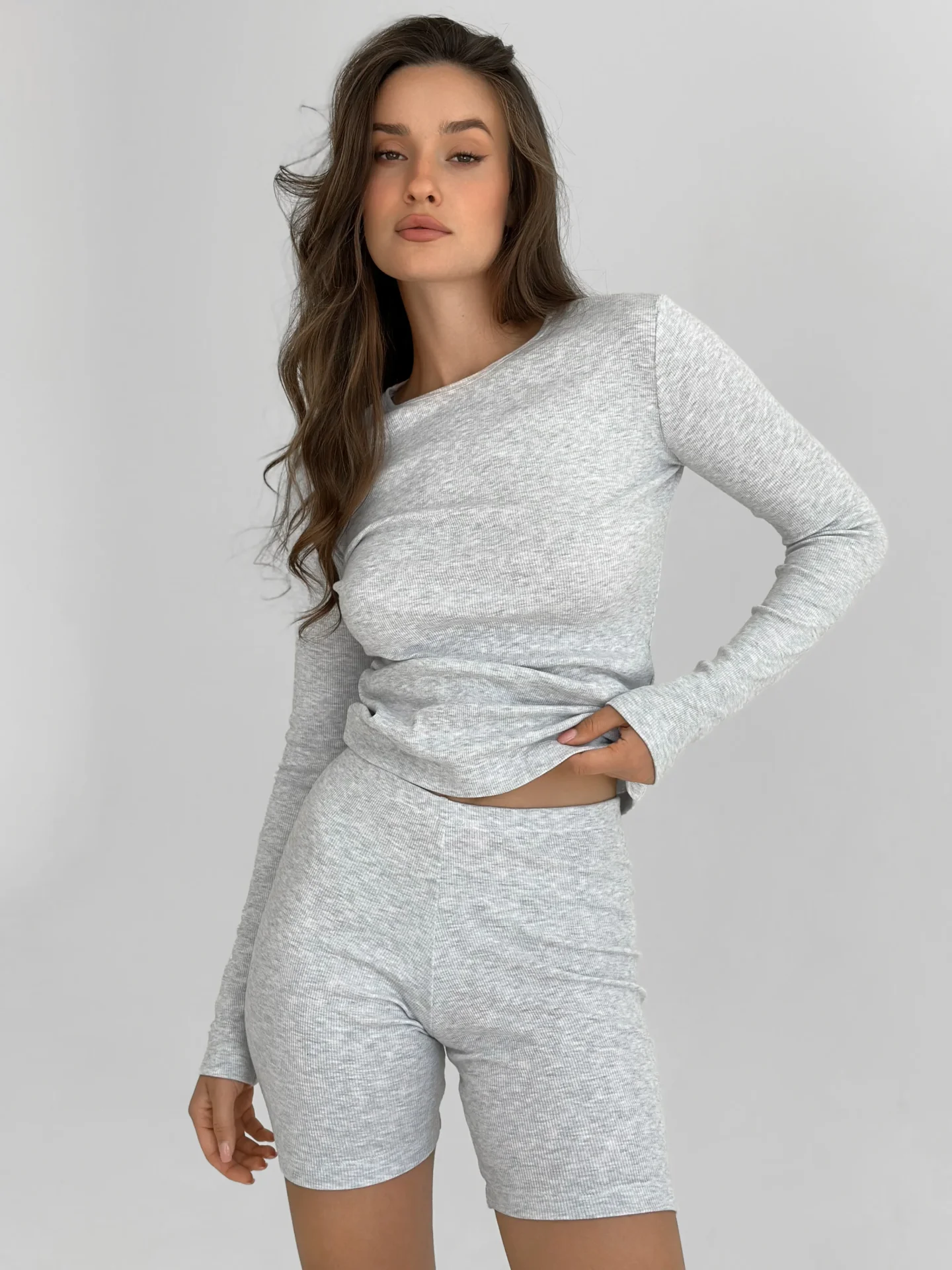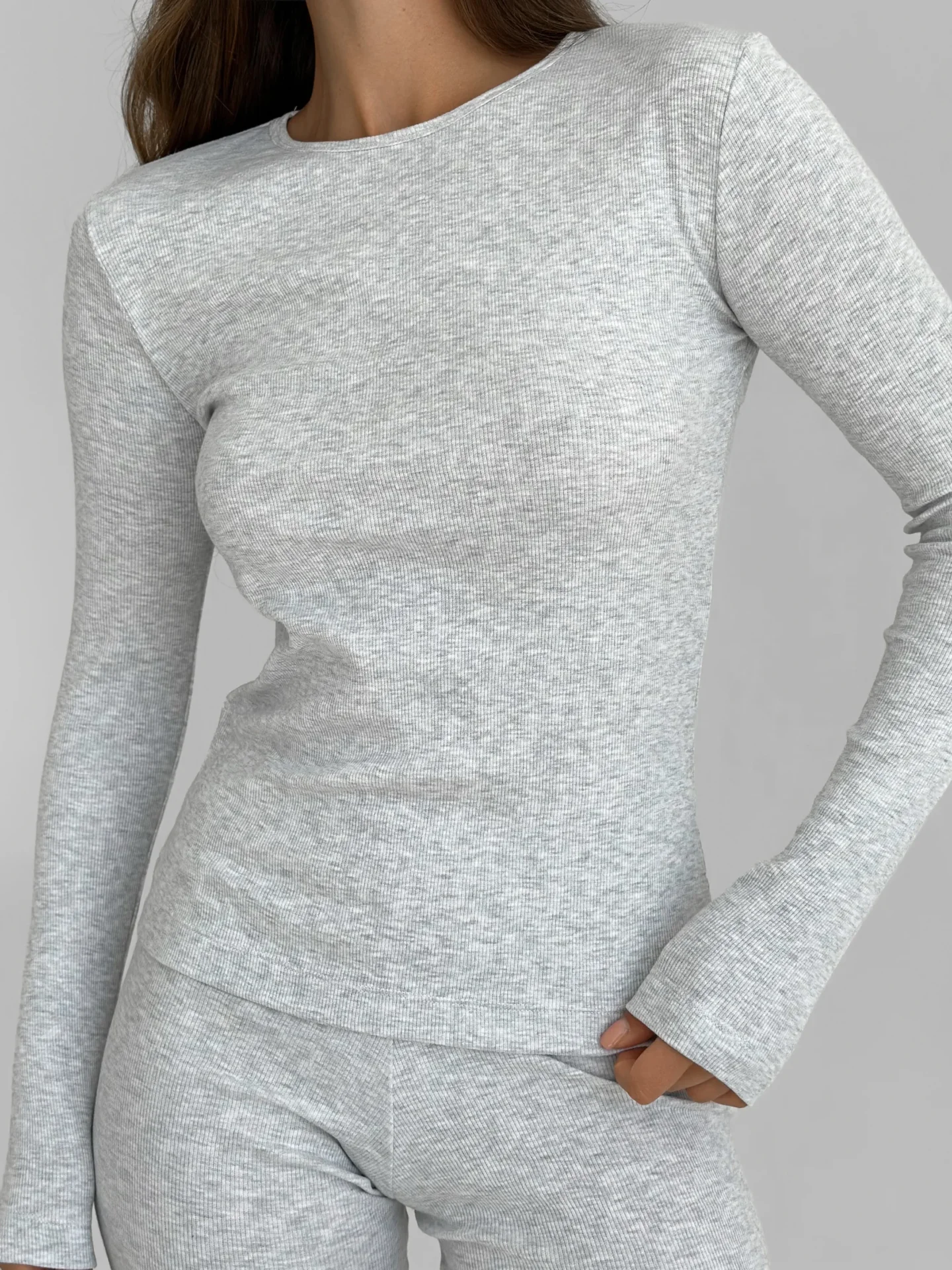 Koszulka longsleeve, z dzianiny prążkowanej, szara