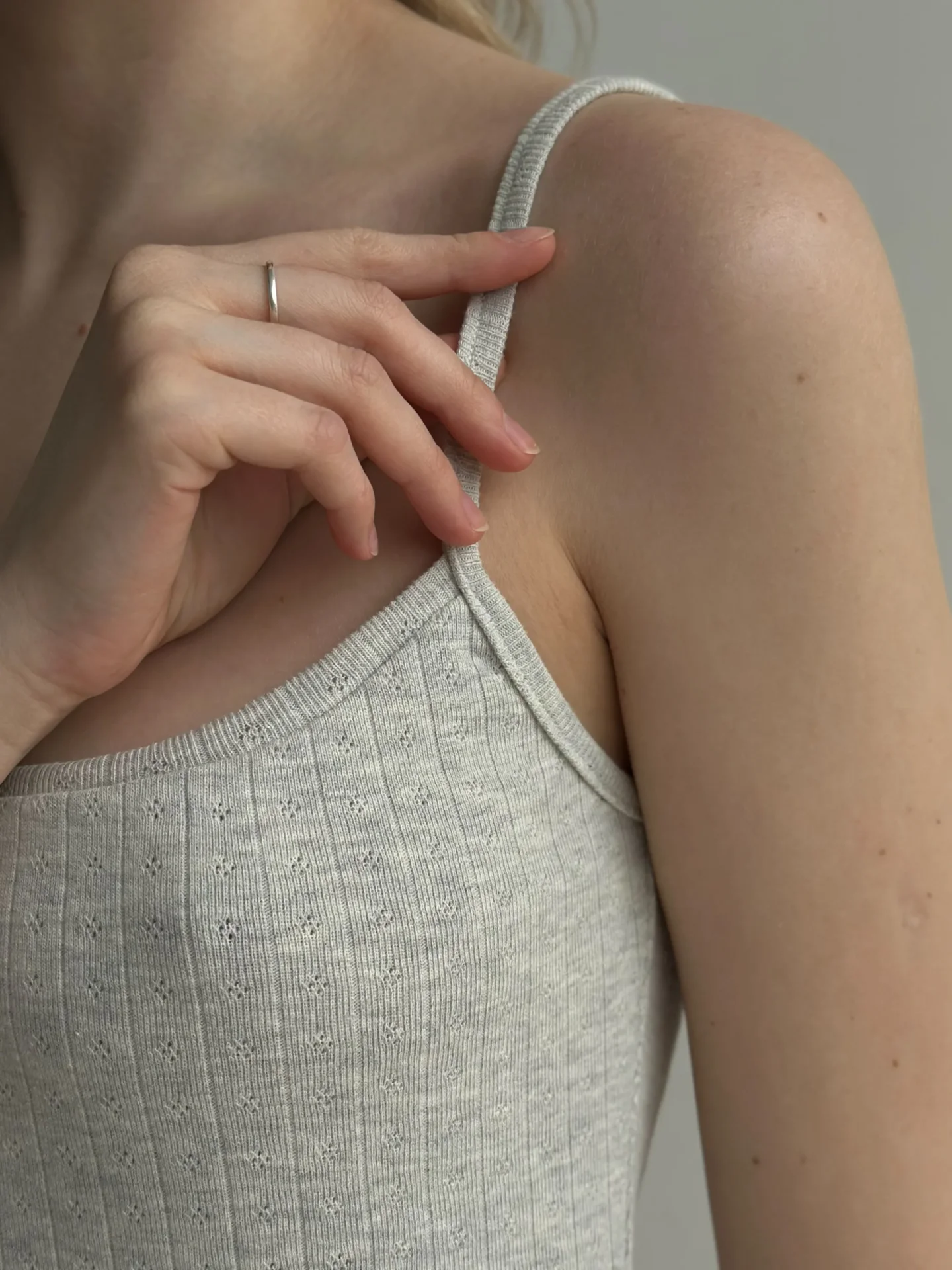 Koszulka na ramiączkach z ribany. Lekka i elastyczna, zapewnia komfort i swobodę ruchów. Idealna do podstawowej garderoby lub domowego komfortu.