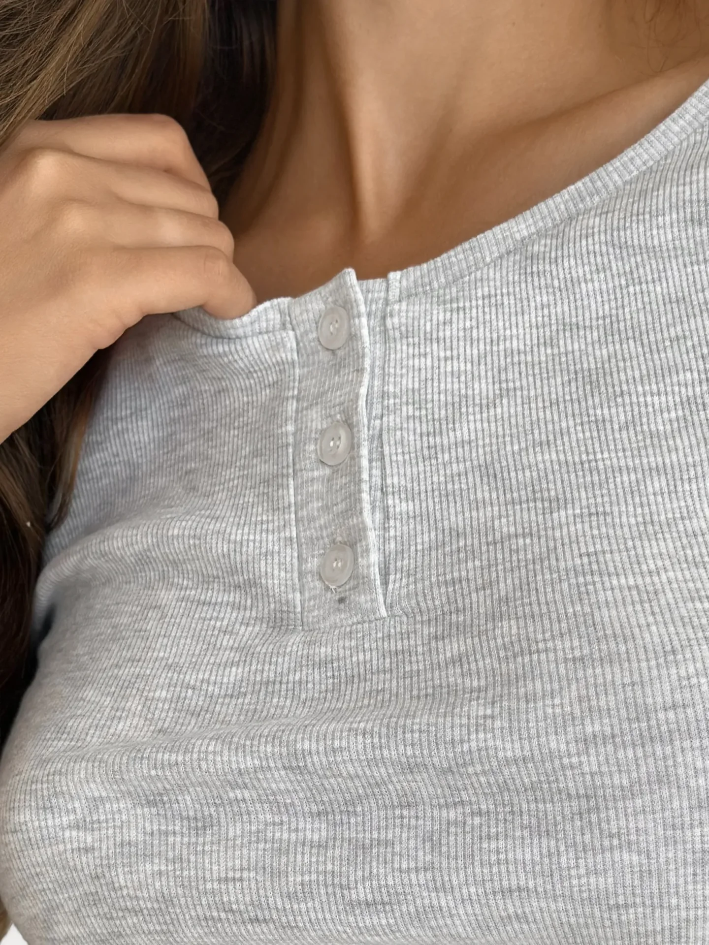 Koszulka z dekoltem na guziki, z dzianiny prążkowanej, szara