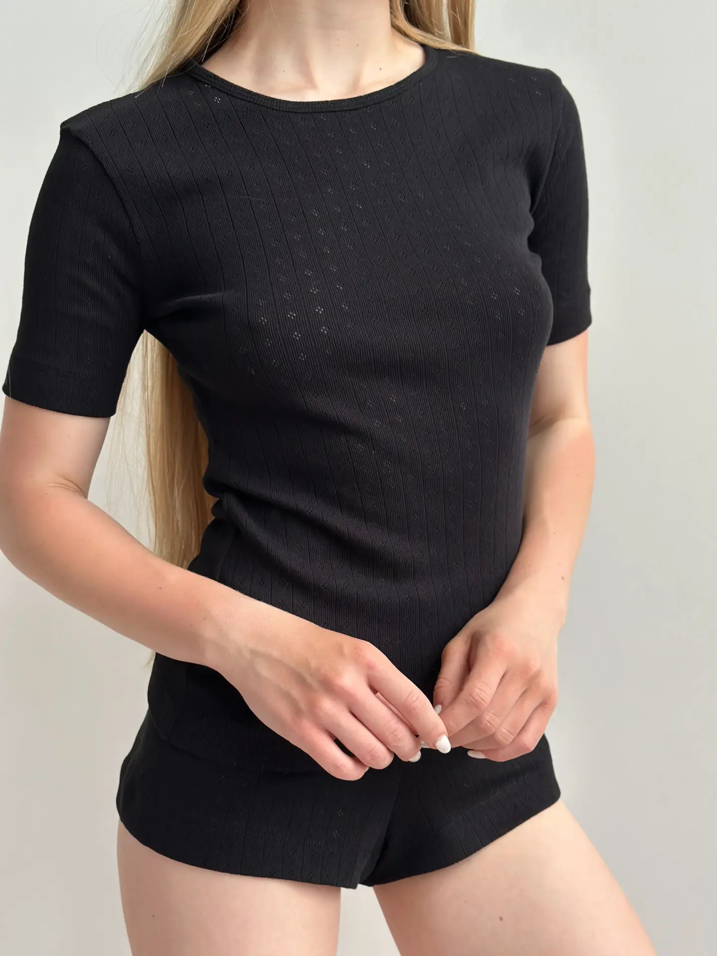 Koszulka z ribany prążkowanej, czarna