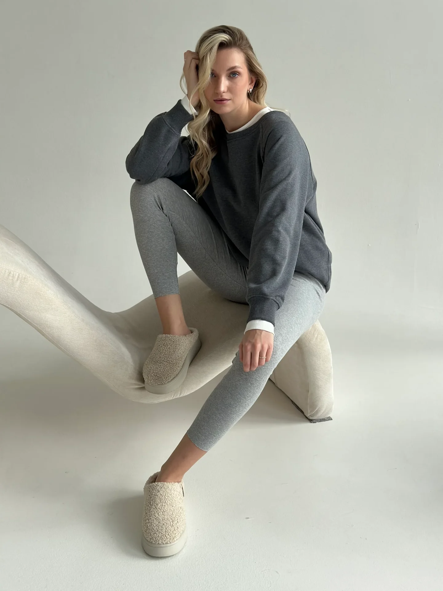 Legginsy z dzianiny zapewniają komfort i miękkość podczas noszenia. Elastyczny materiał przyjemnie dopasowuje się do sylwetki i nie krępuje ruchów. Idealne do domu lub przytulnych, codziennych stylizacji.
