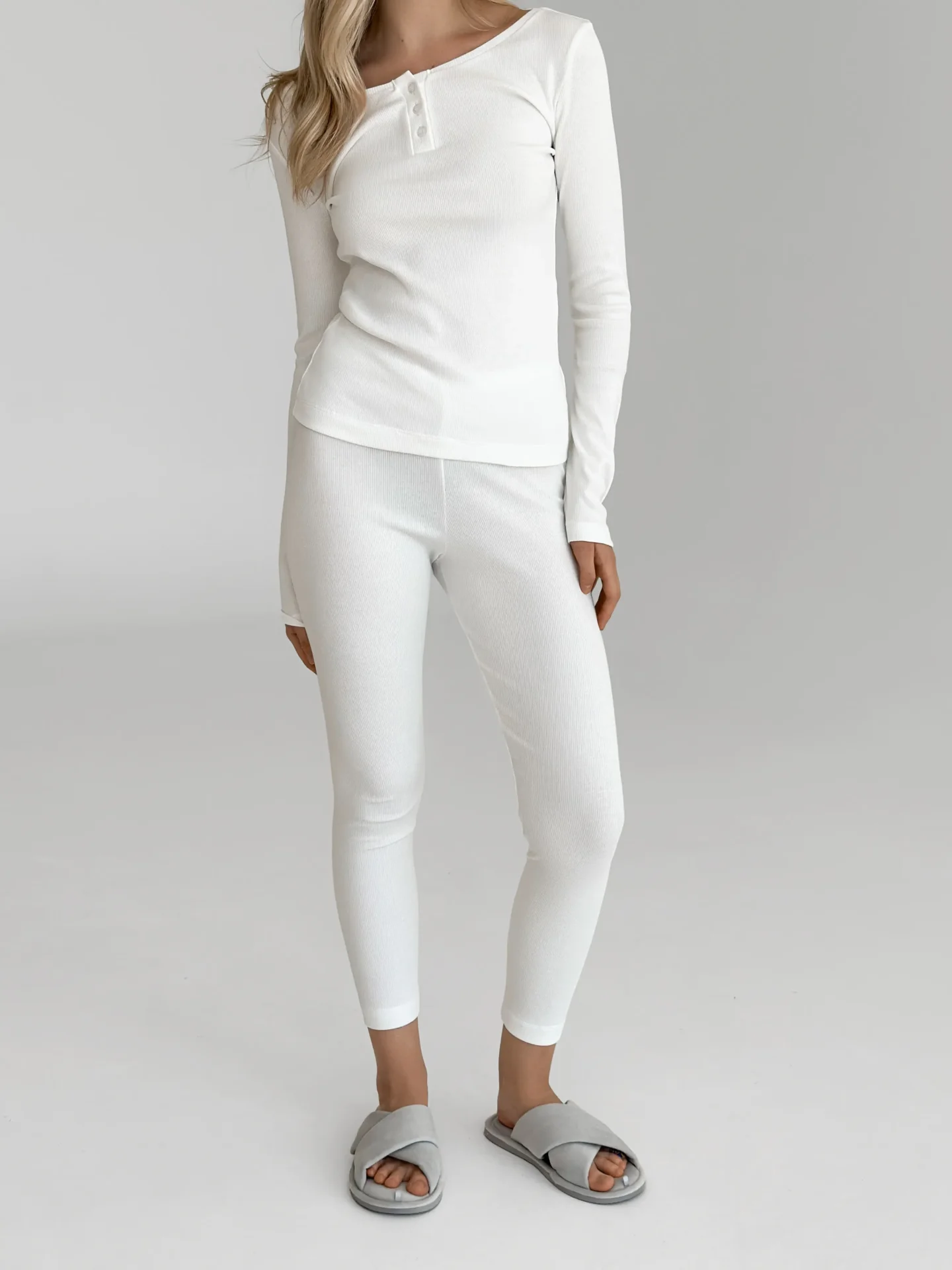 Legginsy z dzianiny prążkowanej, mleczne