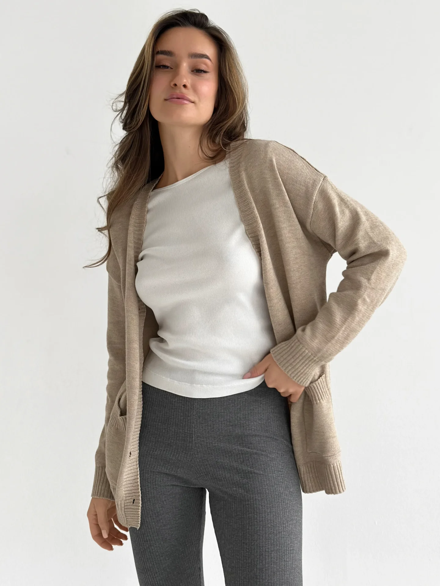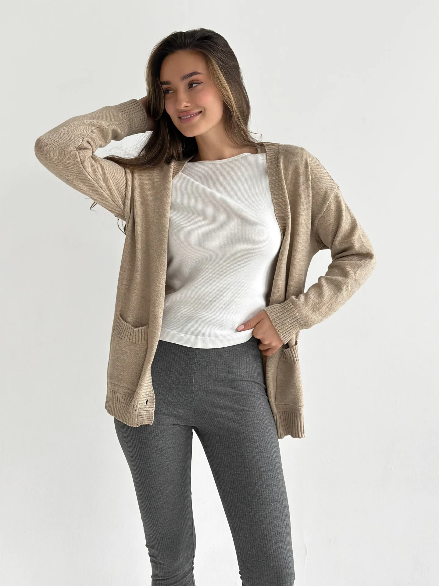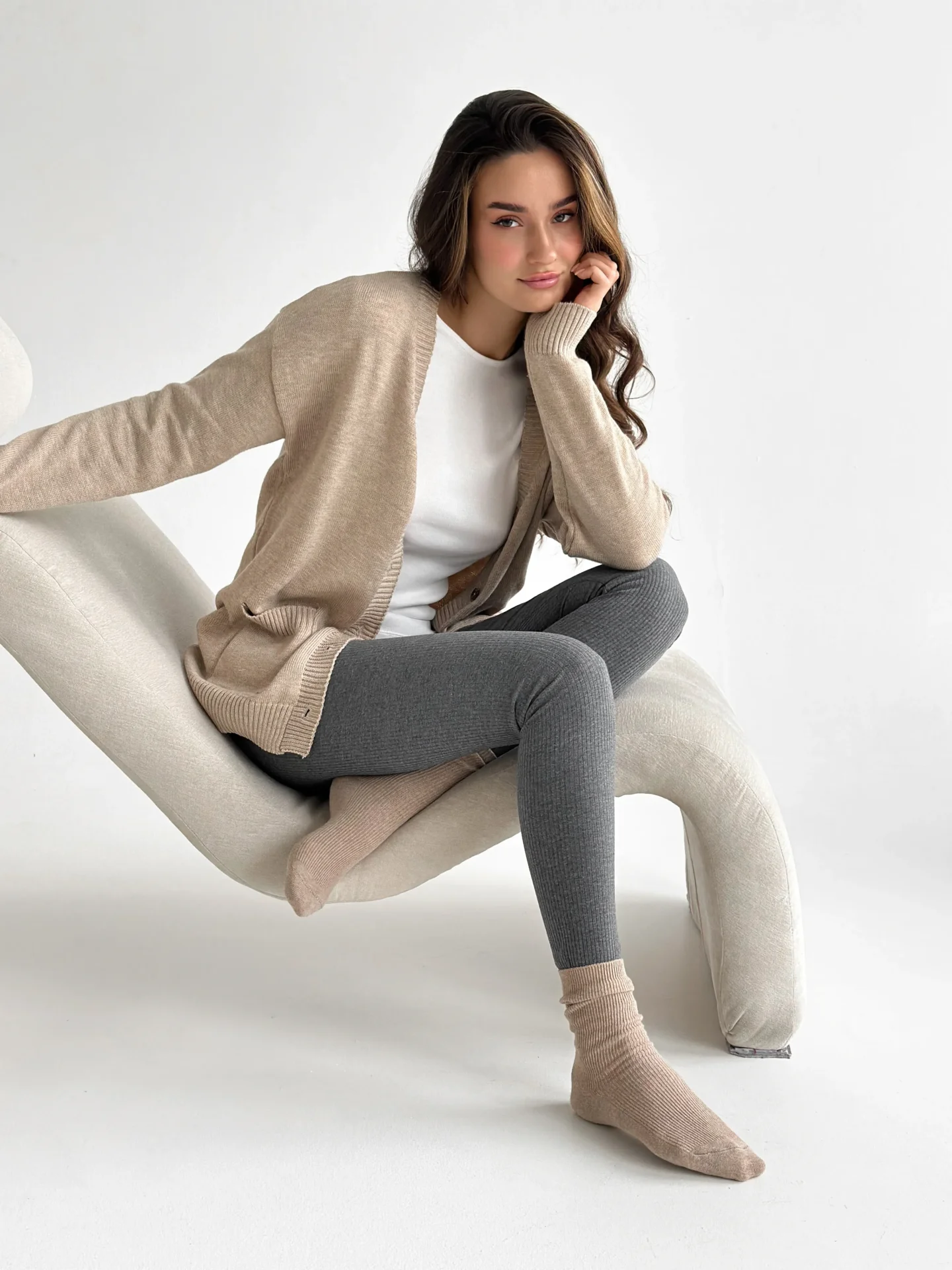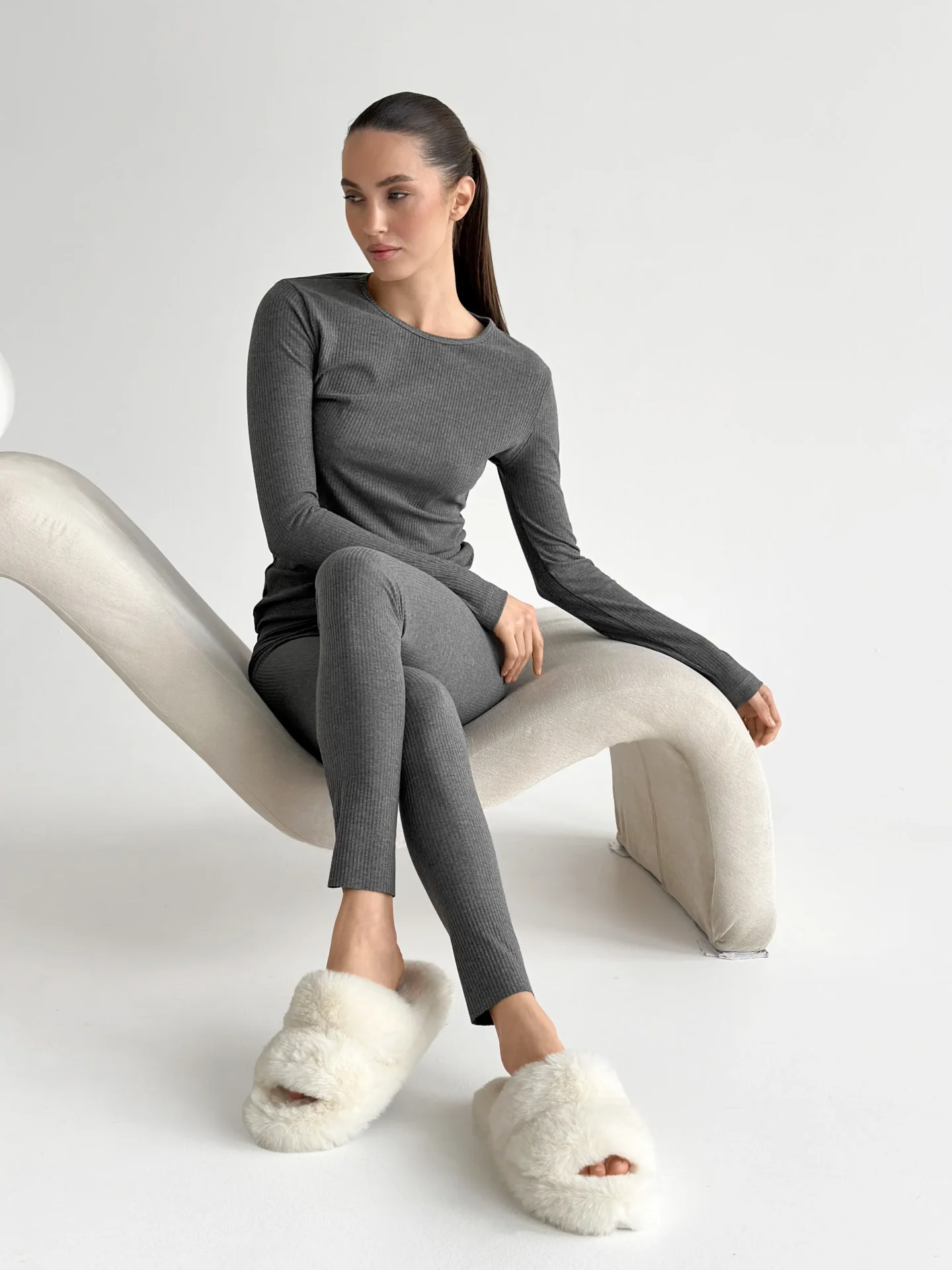 Legginsy z szerokiego prążkowanego dzianinowego materiału zostały stworzone z myślą o maksymalnym komforcie. Elastyczny, miękki materiał przyjemnie dopasowuje się do sylwetki, zapewniając swobodę ruchów przez cały dzień. Modna faktura prążka dodaje stylowego charakteru i sprawia, że model jest uniwersalny zarówno do domu, jak i codziennych stylizacji.