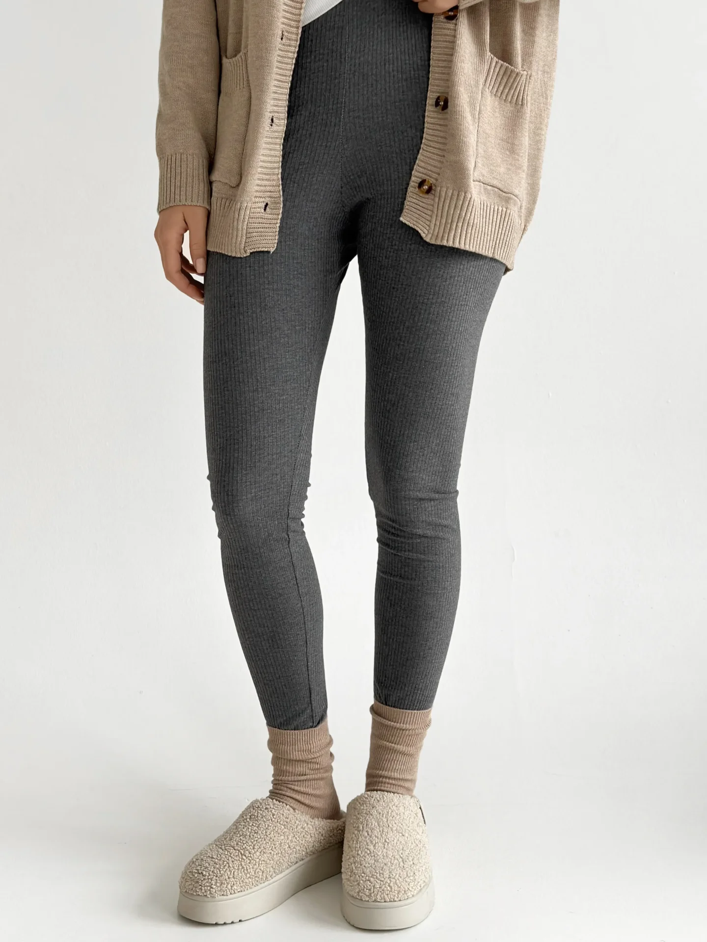 Legginsy z dzianiny prążkowanej szerokiej, antracytowe