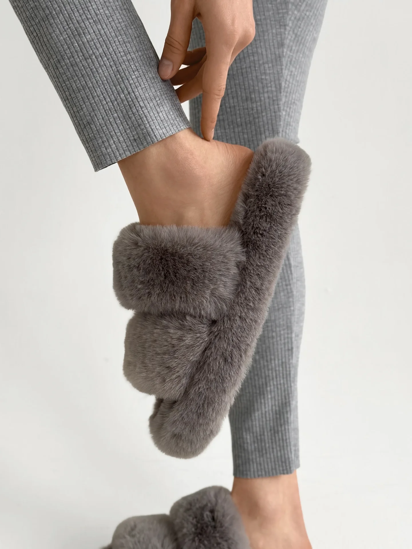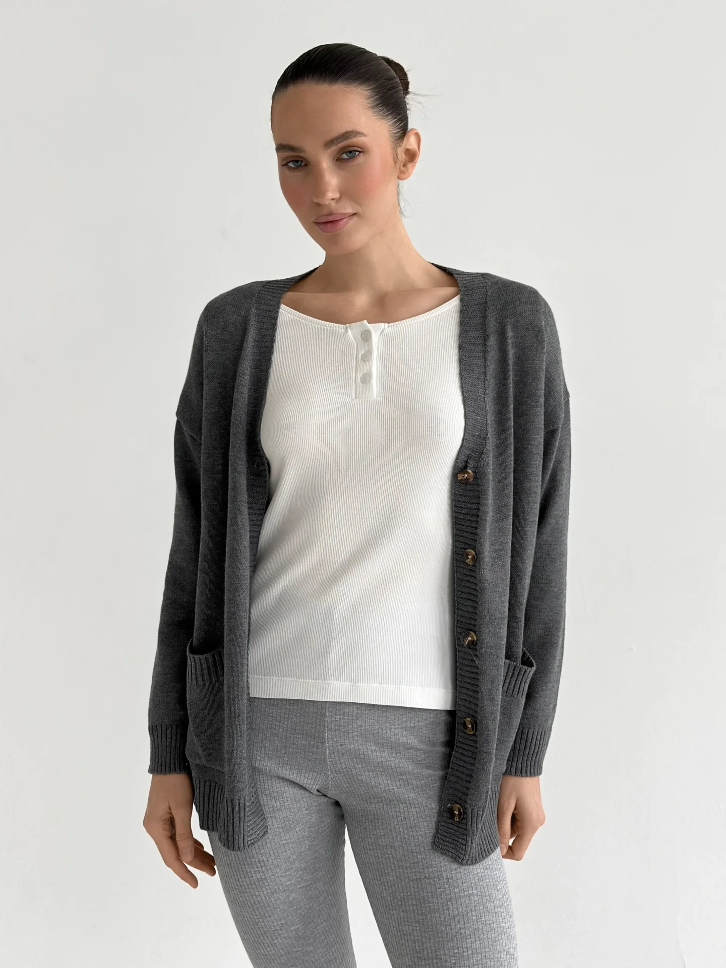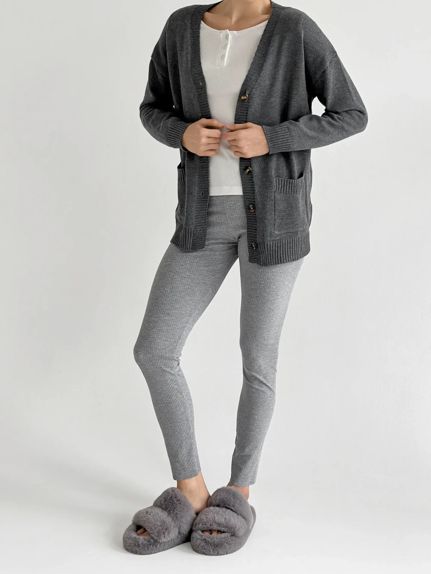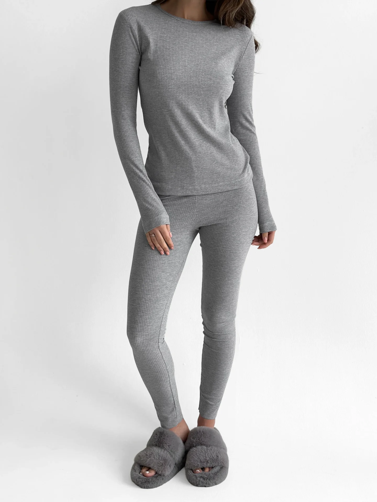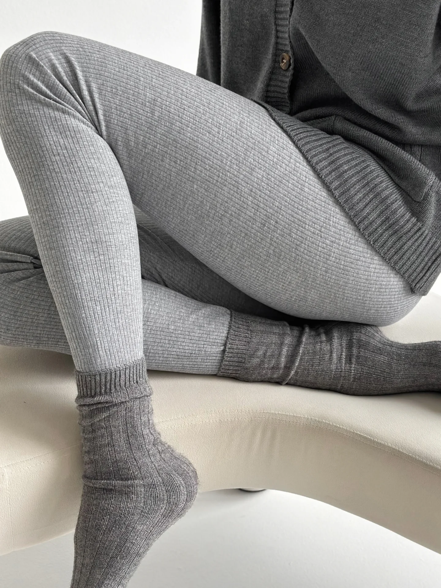 Legginsy z dzianiny prążkowanej szerokiej, szare - Miso
