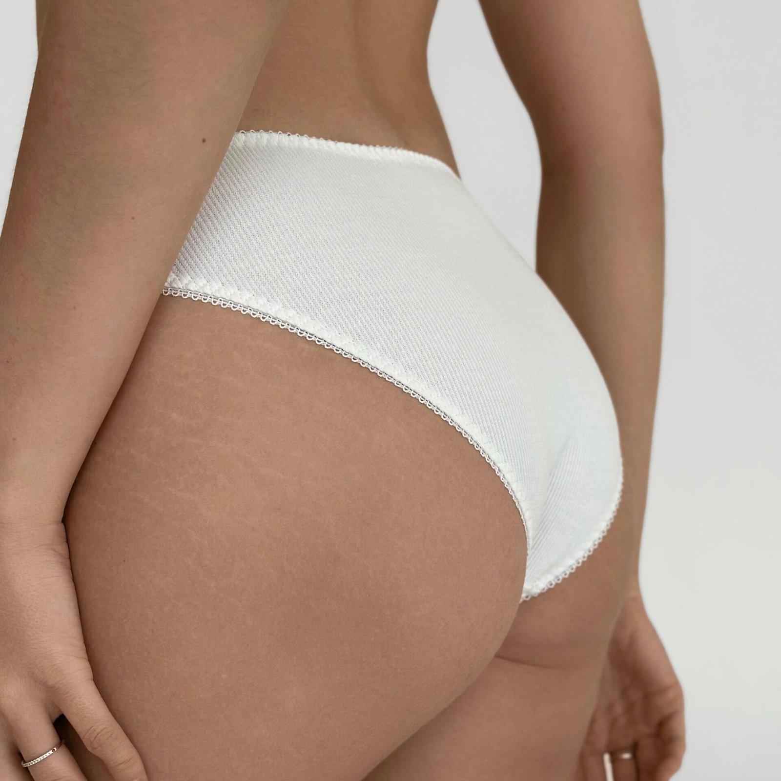 Majtki Slip „Delicacy” z dzianiny prążkowanej, mleczne