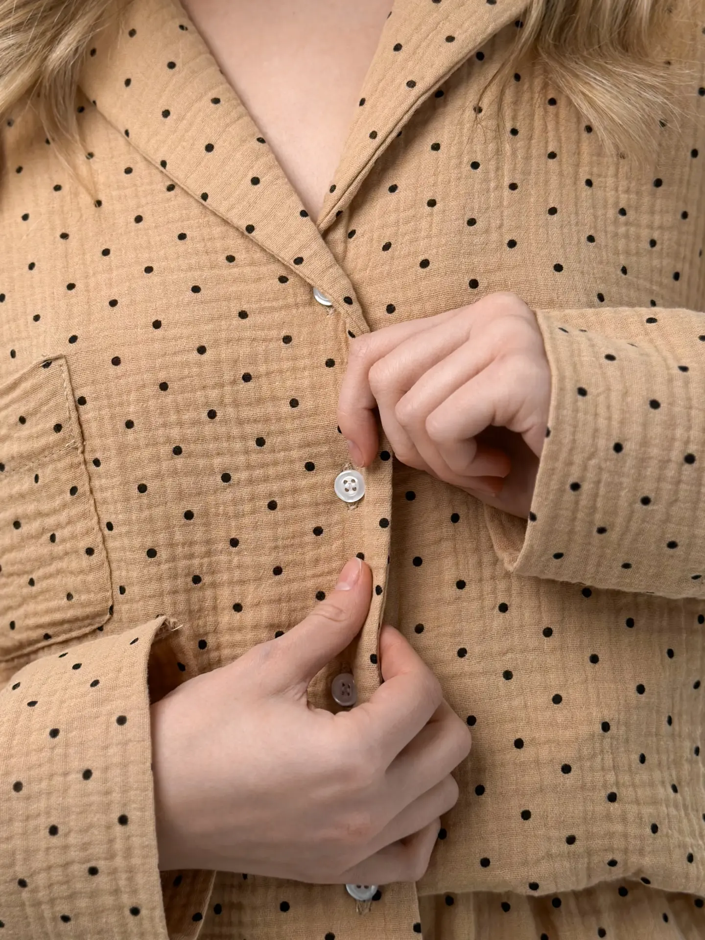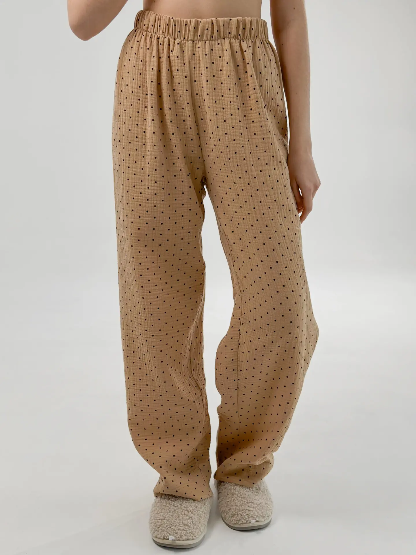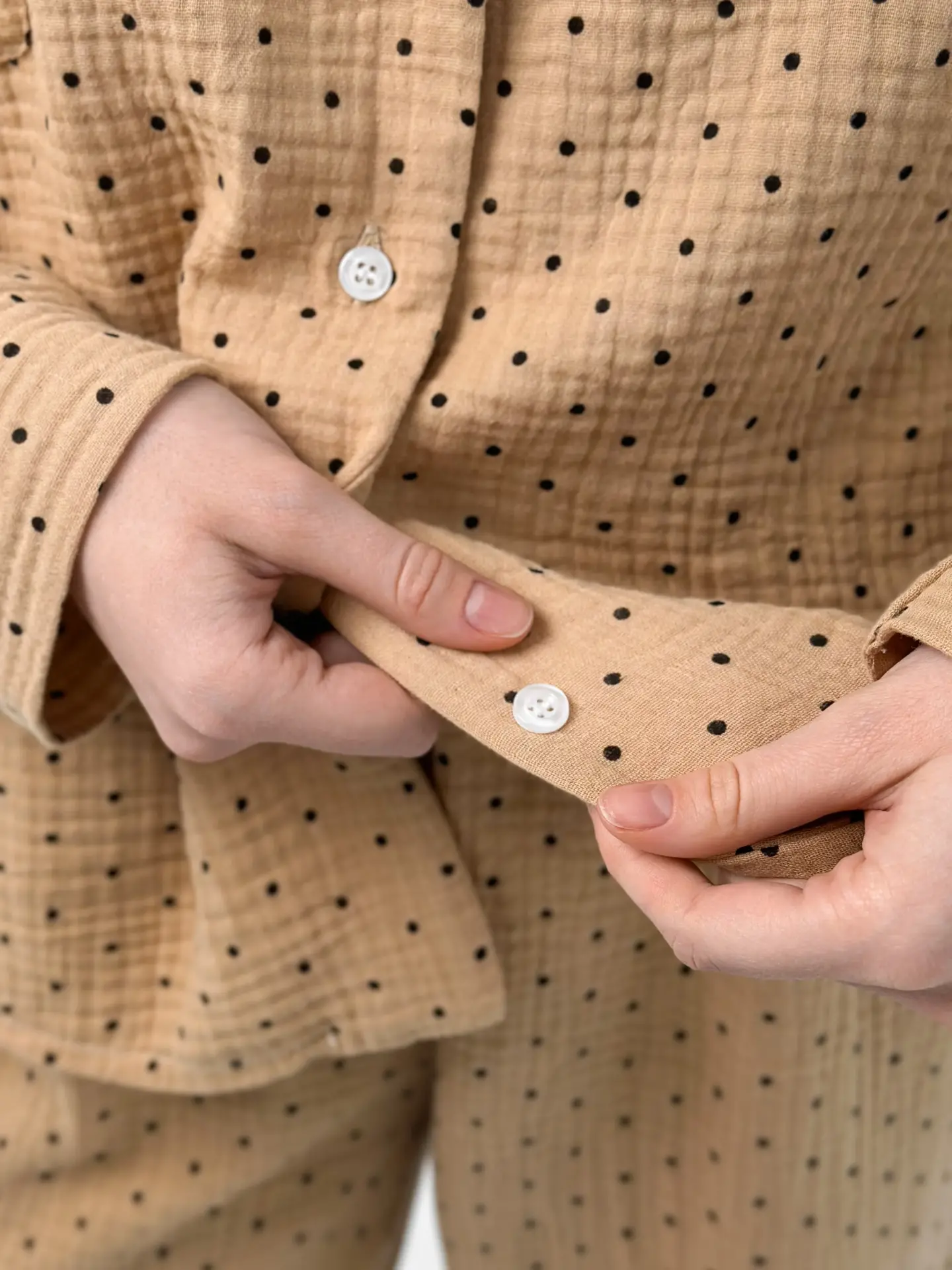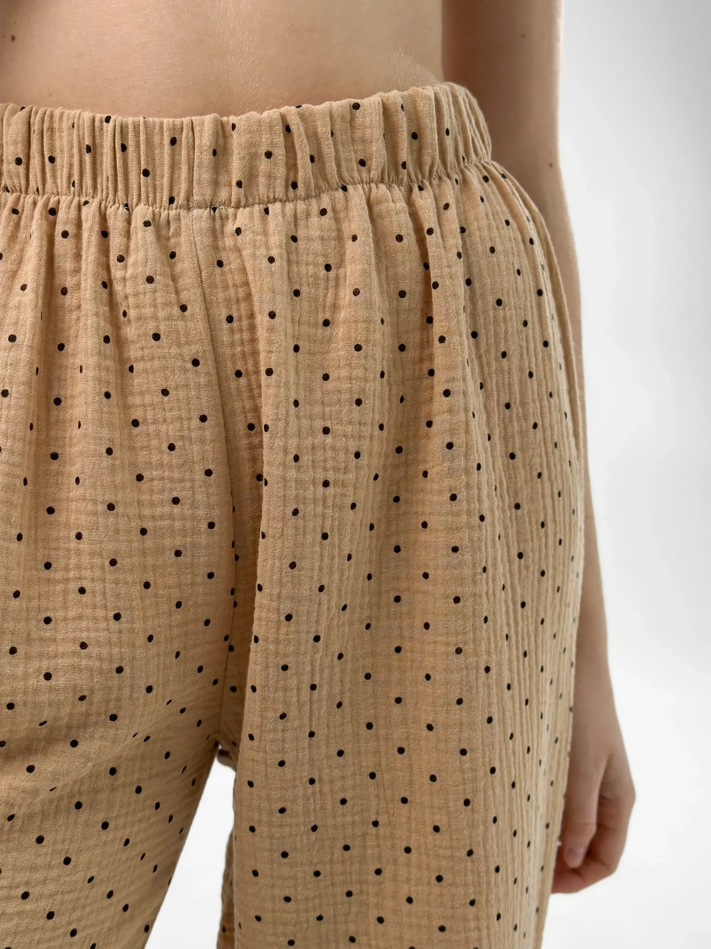 Komplet piżamowy koszula i spodnie, z muślinu, brązowy w groszki