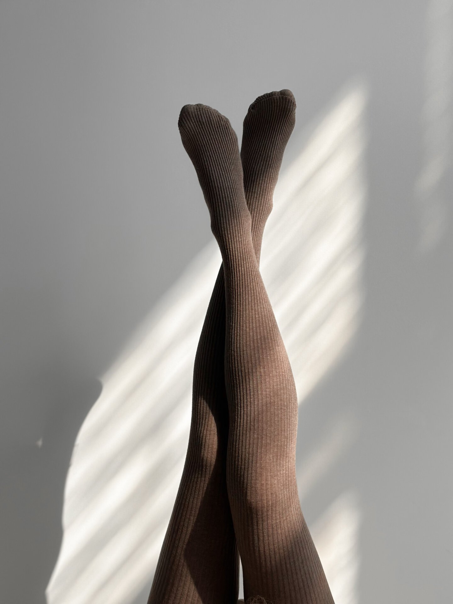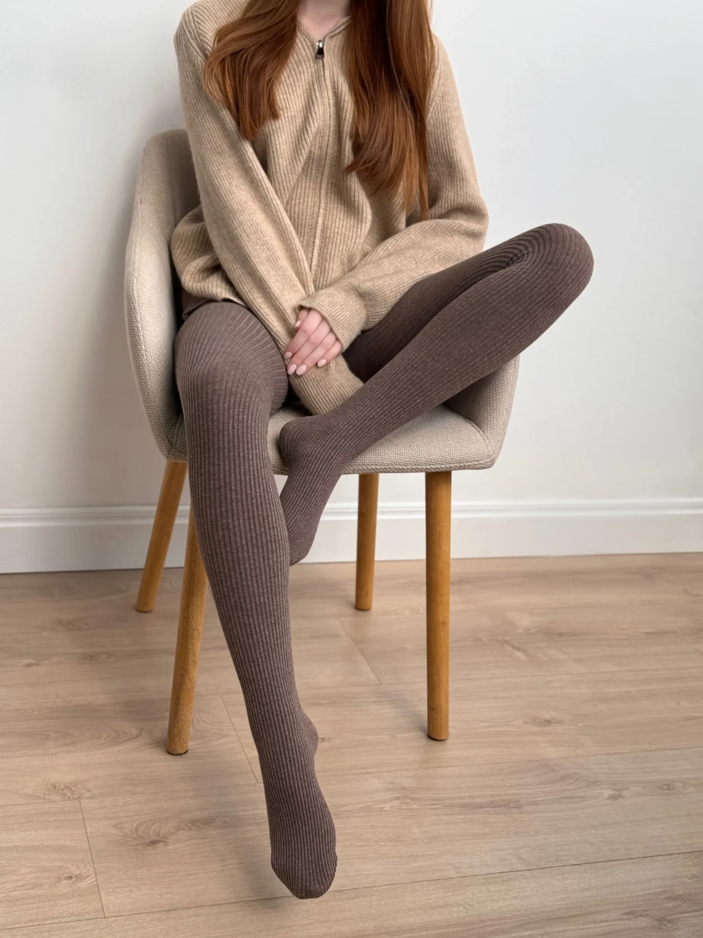 Jednokolorowe rajstopy w prążek w jakości premium łączą elegancję i komfort na co dzień.