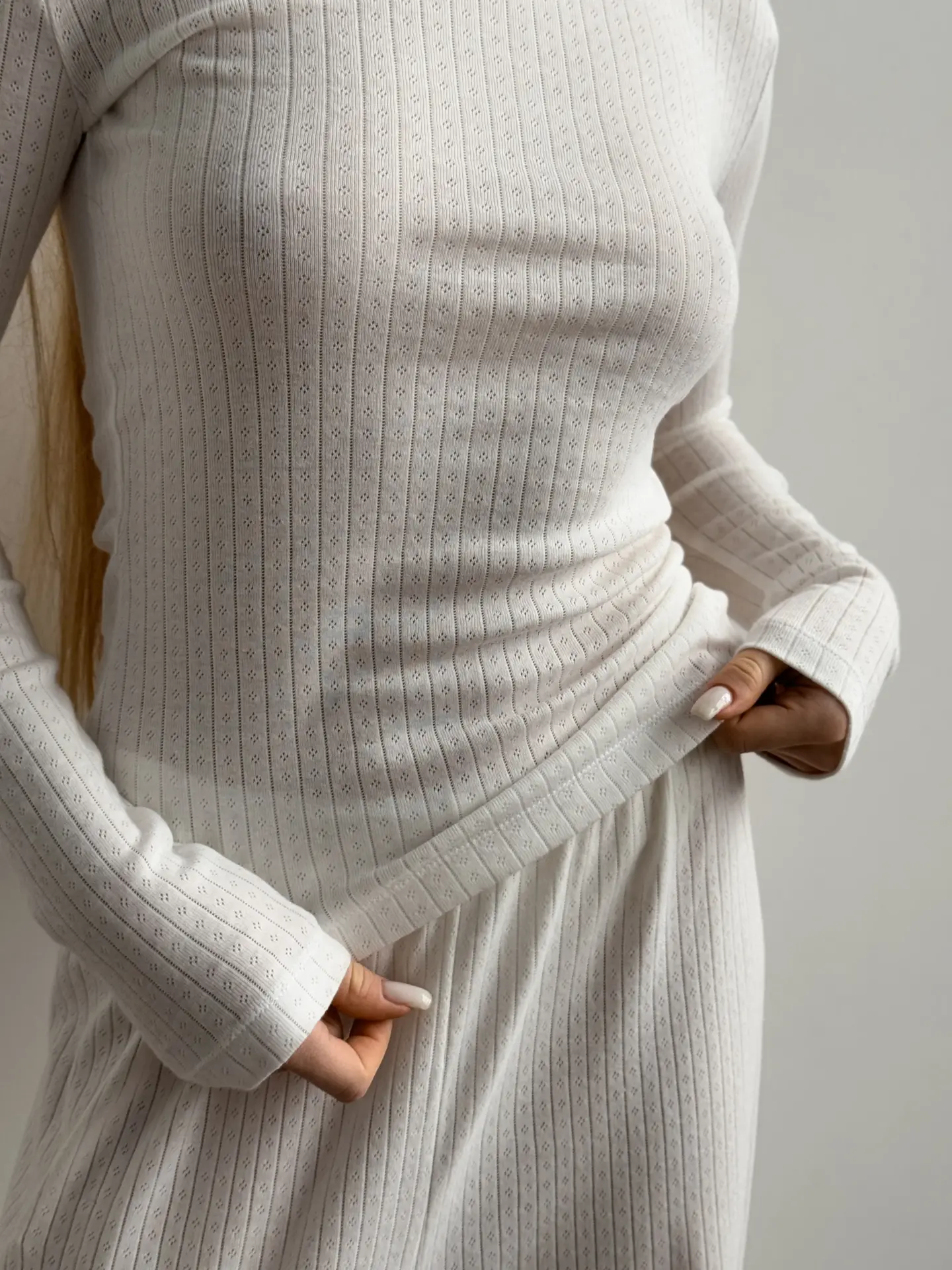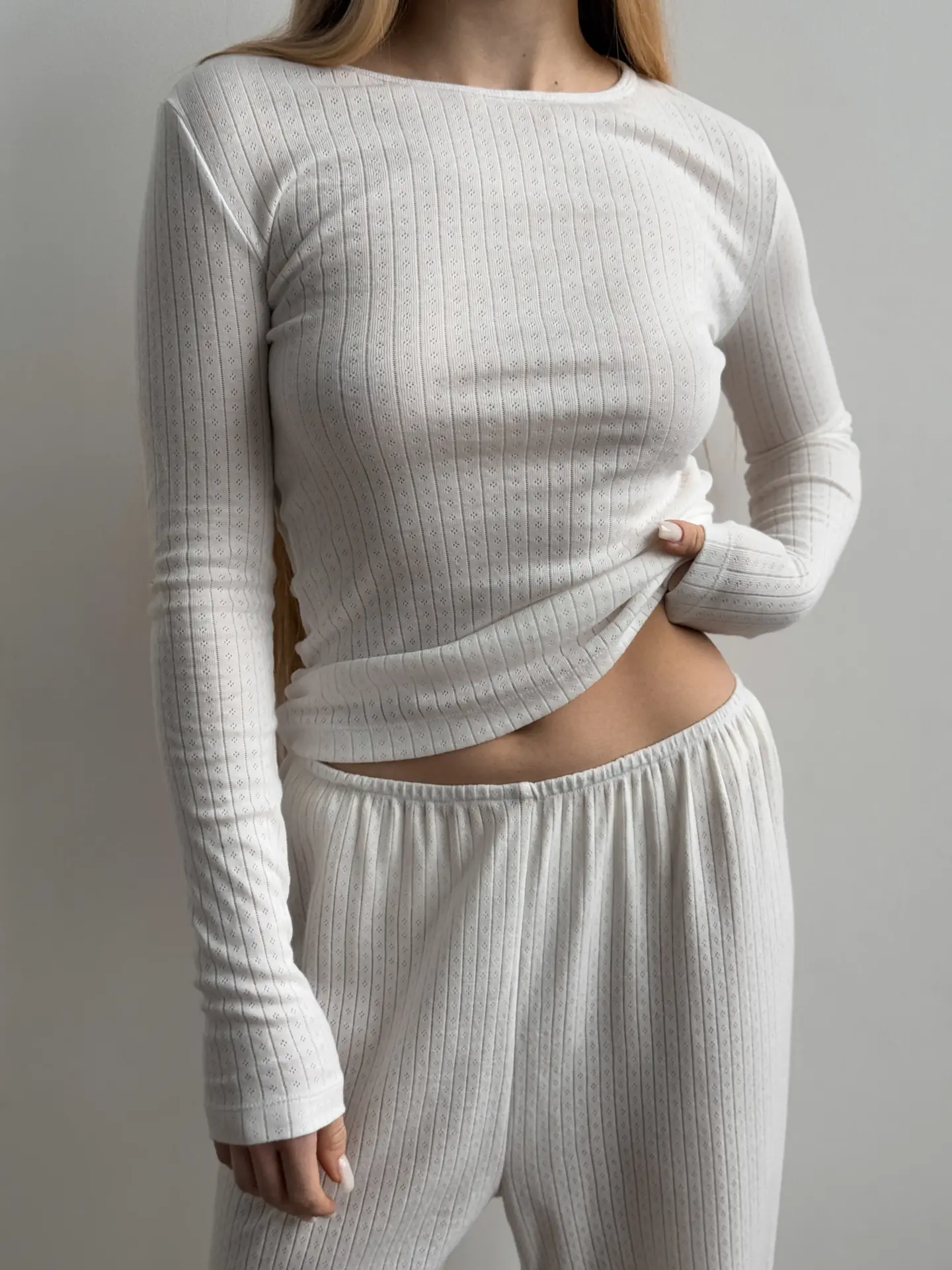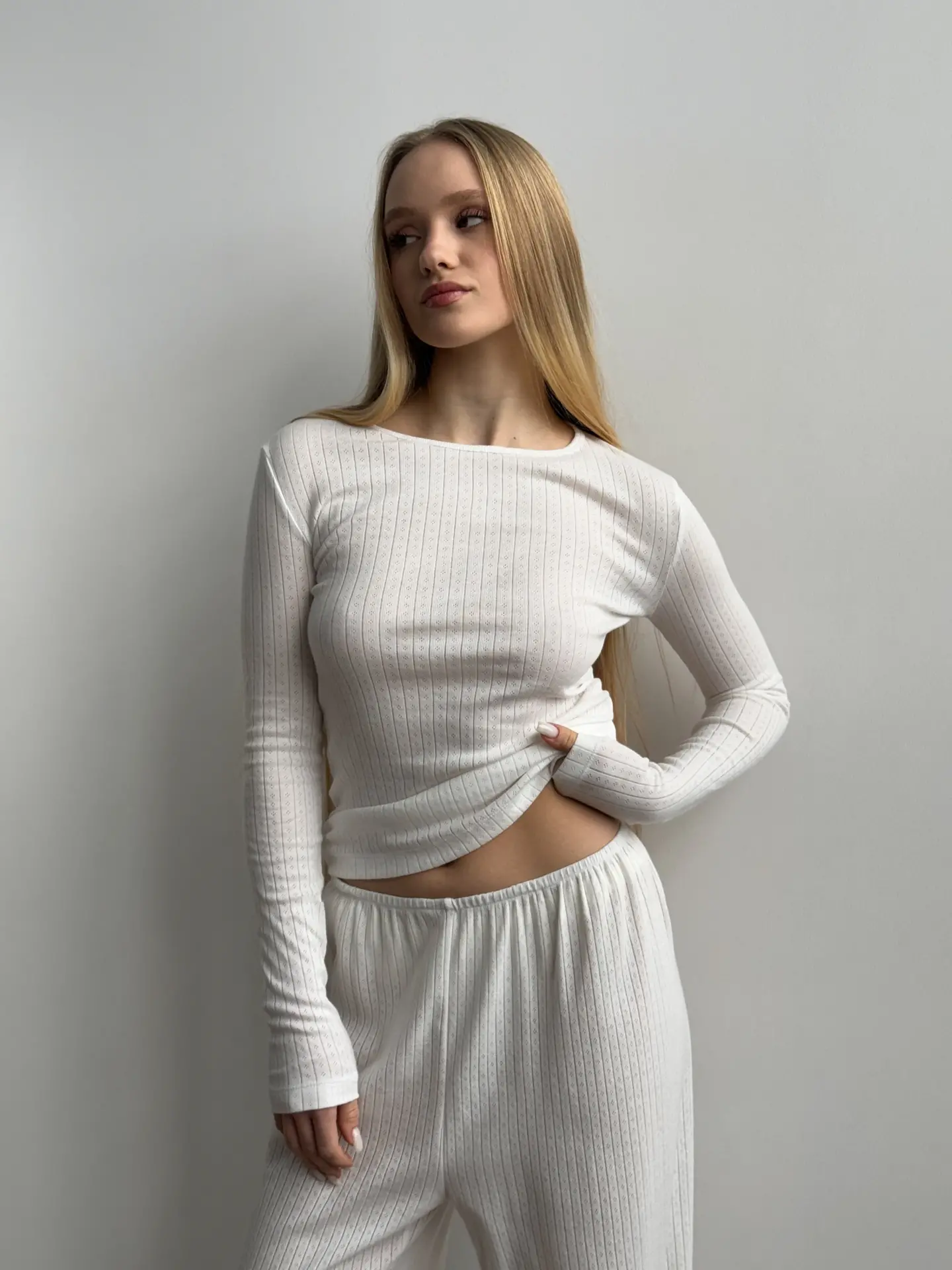 Koszulka z długim rękawem, z ribany prążkowanej, mleczna
