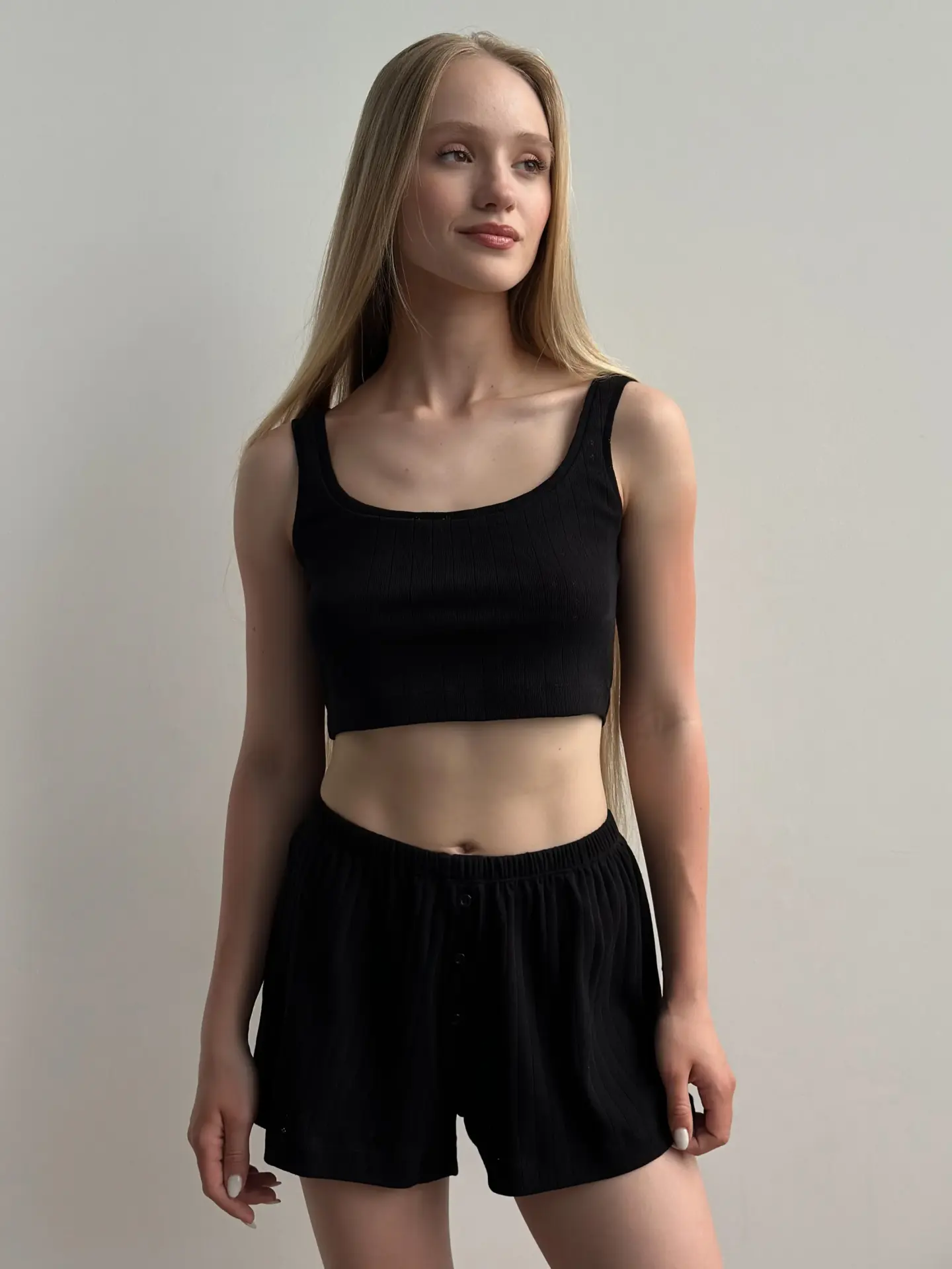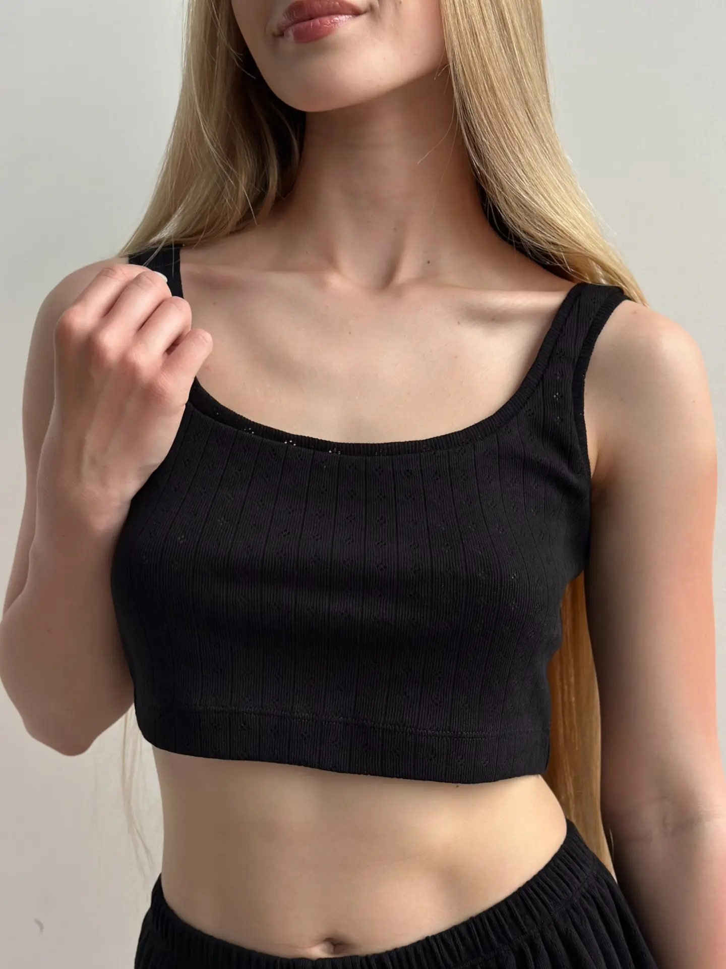 Top Ribana to stylowy i wygodny element garderoby. Wykonany z elastycznego materiału z delikatnym pionowym wzorem, zapewnia wygodę i dodaje elegancji. Idealnie nadaje się do codziennej garderoby, pasuje zarówno do domowych zestawów, jak i do codziennych stylizacji.