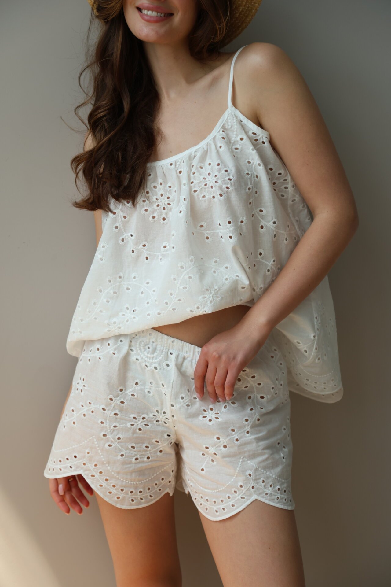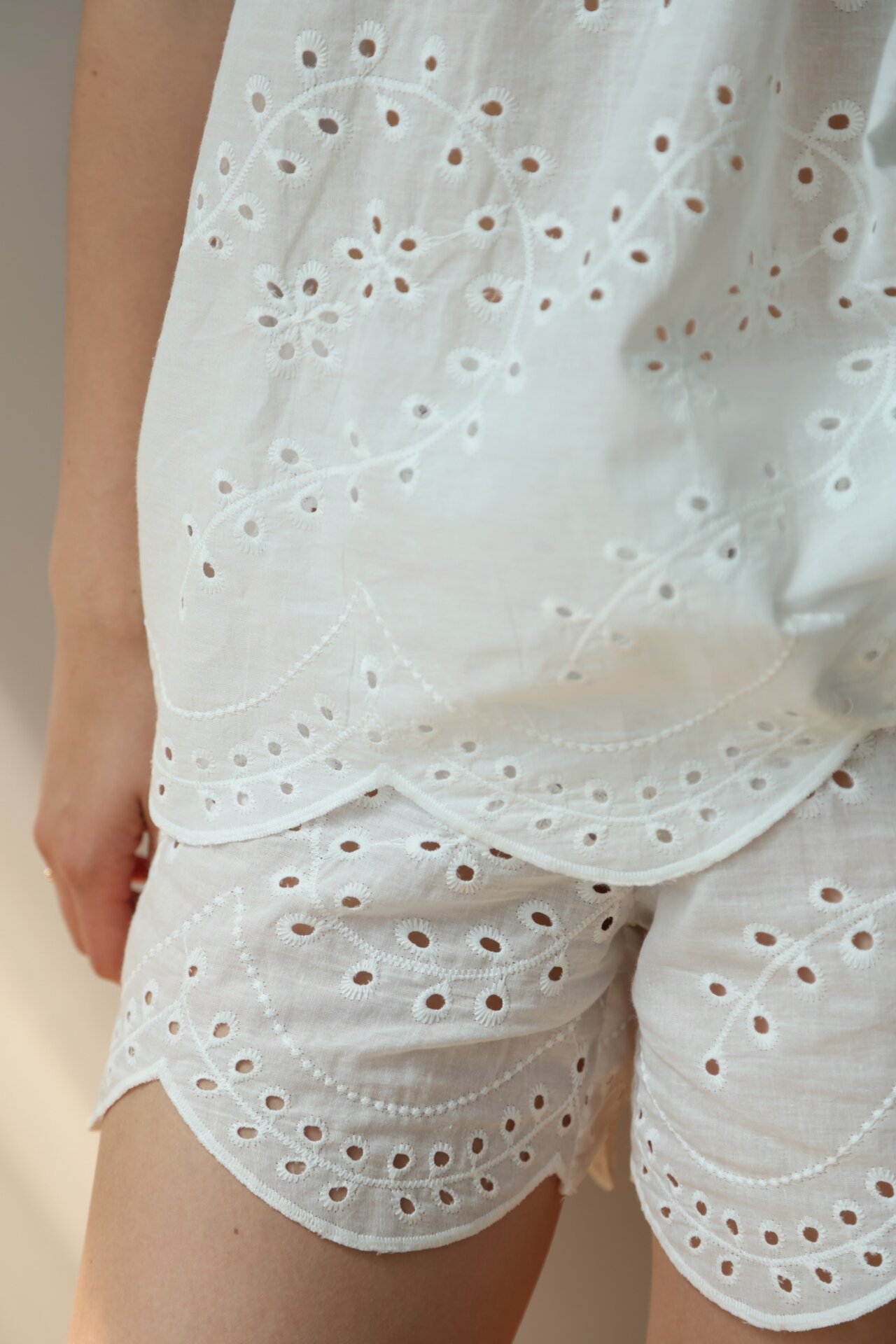 Szorty Mono z bawełny, haft ażurowy „gałązka”, białe