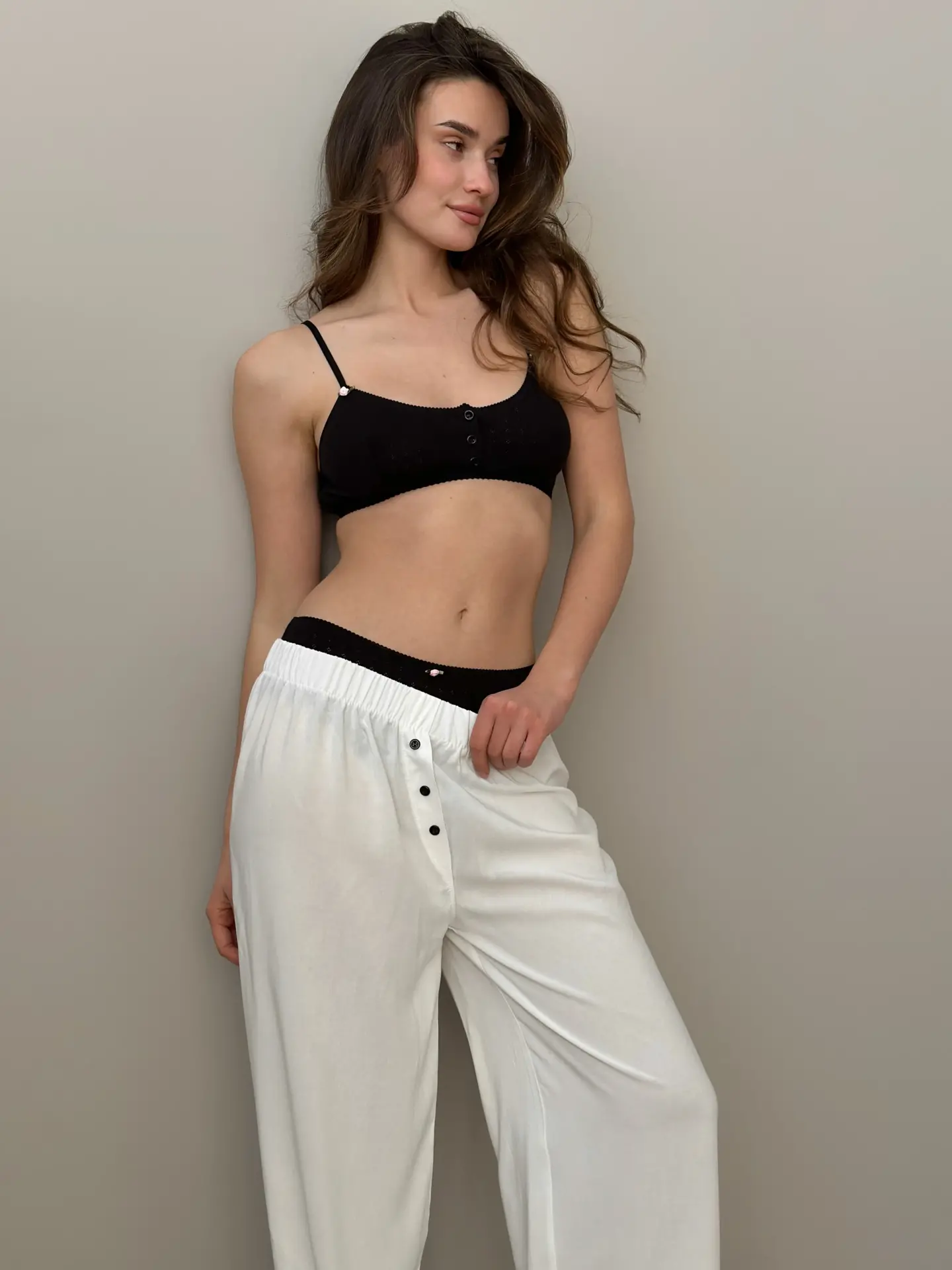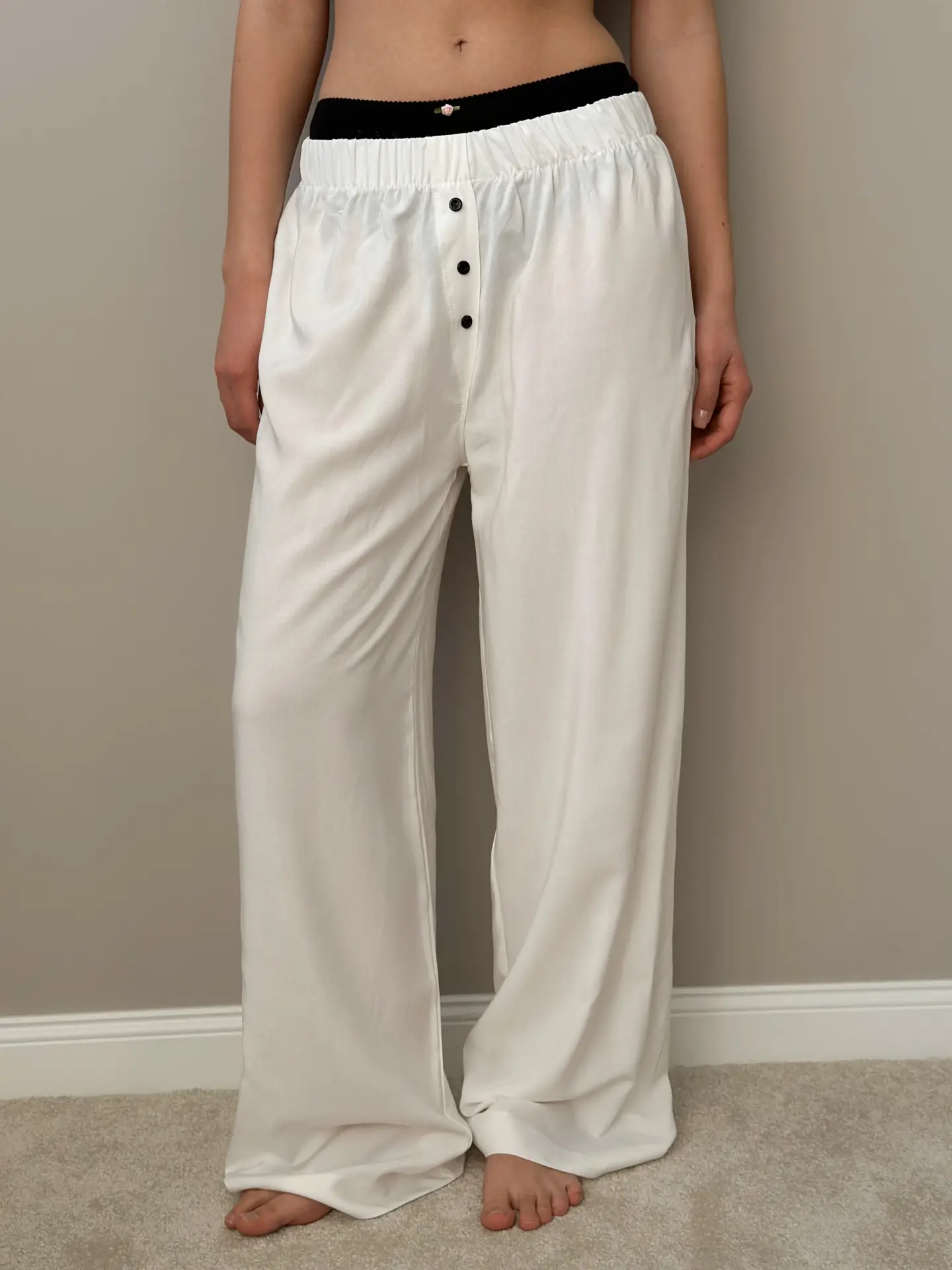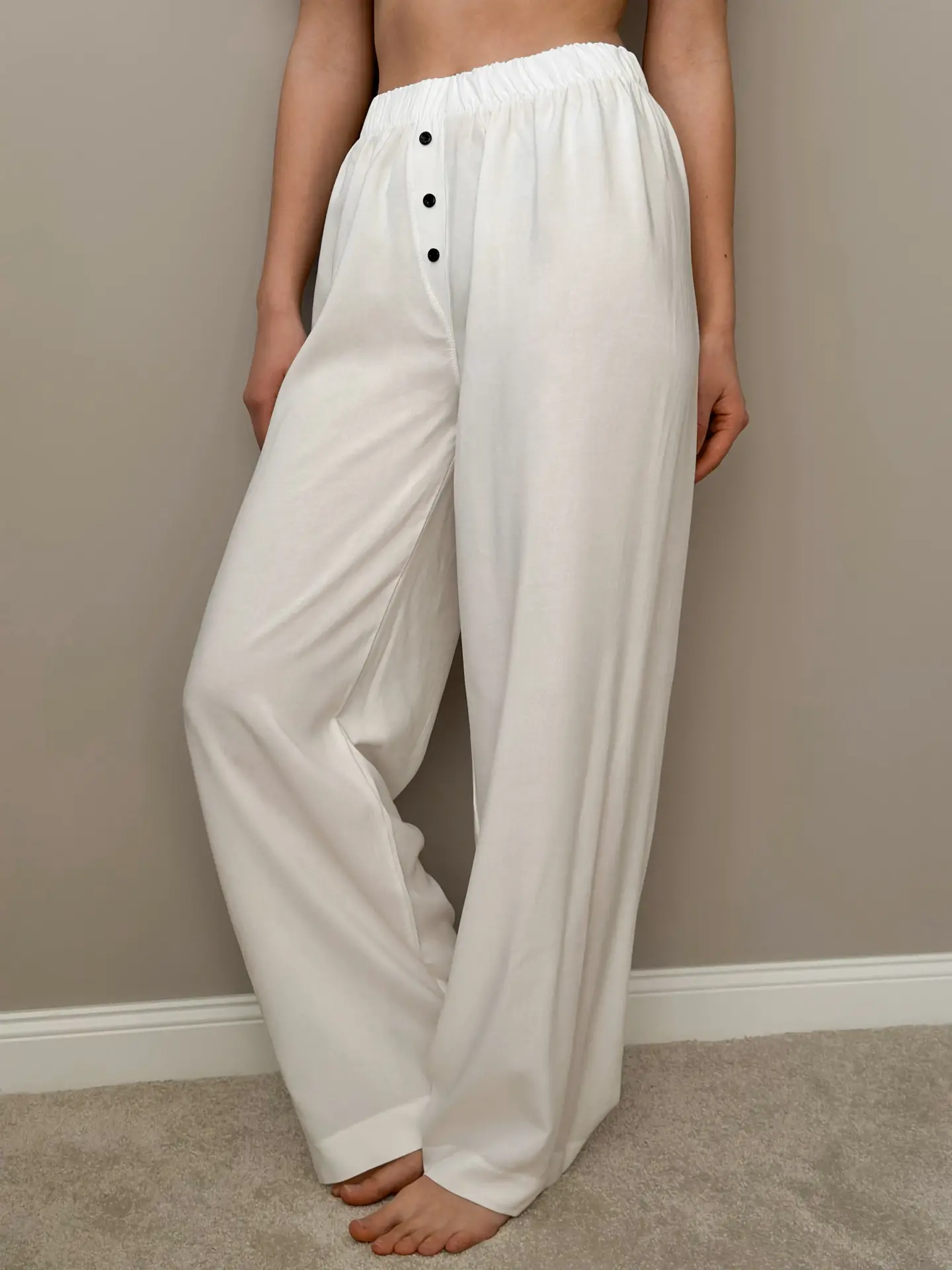Spodnie Mono z rozporkiem ozdobnym, ze staplu, mleczne