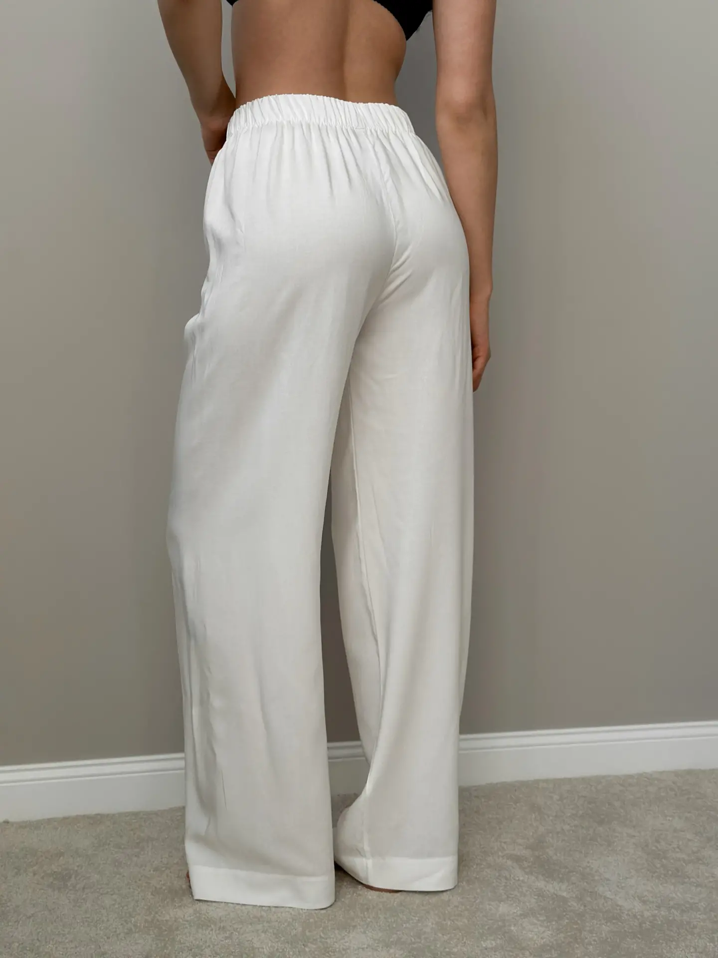 Spodnie mono z guzikiem z paska w kolorze mlecznym łączą wygodę i lekkość. Naturalny materiał zapewnia przyjemne uczucie, a wyrafinowany krój dodaje elegancji. Idealny wybór dla stylowych i swobodnych stylizacji.
