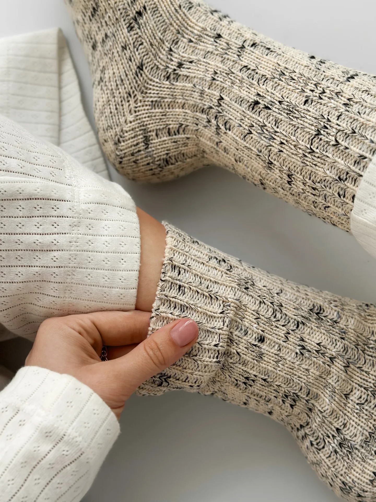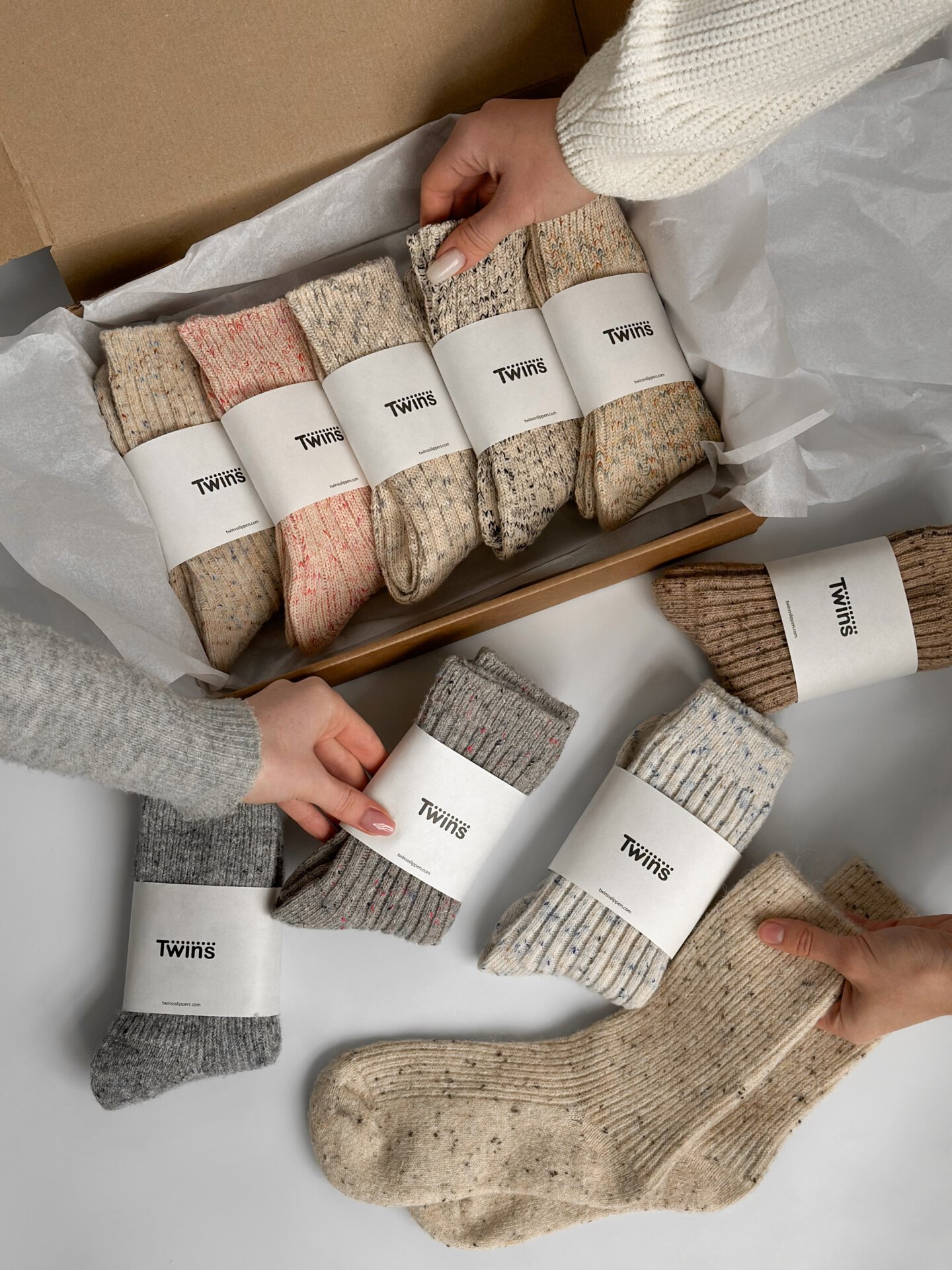 Ciepłe damskie skarpetki wysokiej jakości, zawierające wełnę i miękką gumkę.