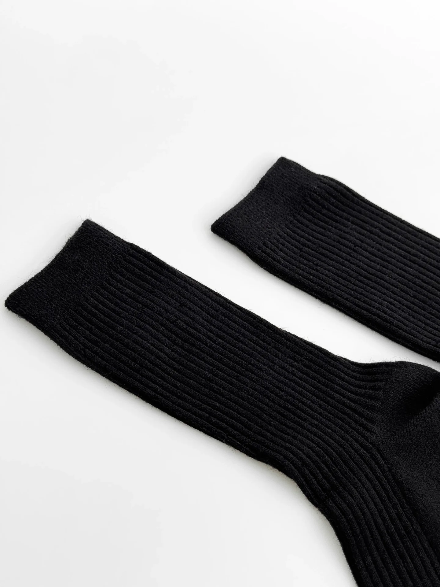 Skarpety Twins wysokie, wełniane prążkowane, czarne