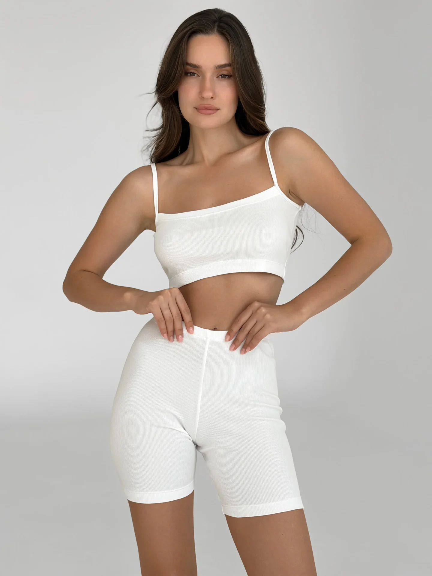 Spodenki kolarskie, z dzianiny prążkowanej, mleczne
