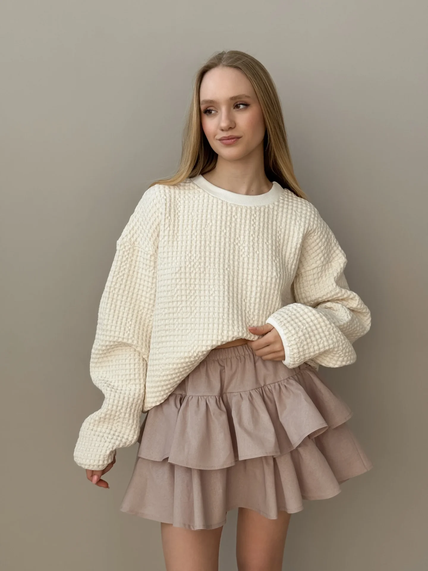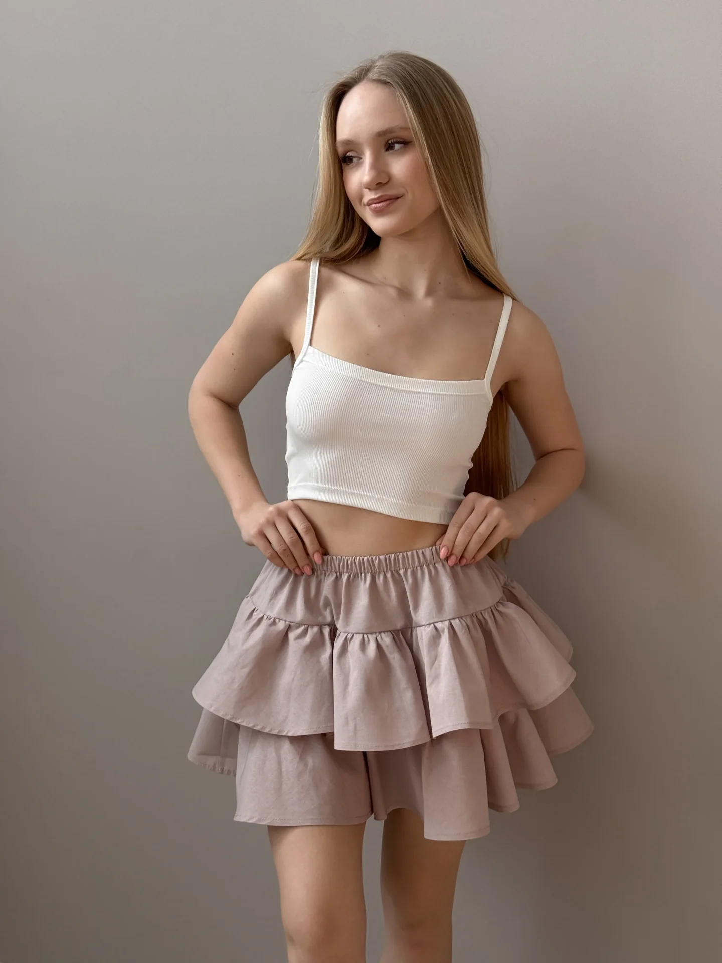 Spódnica z falbankami z popeliny łączy lekkość i kobiecość. Naturalny materiał zapewnia komfort, a delikatne falbanki dodają stylizacji subtelności. Idealny wybór na letnie spacery i romantyczne looki.