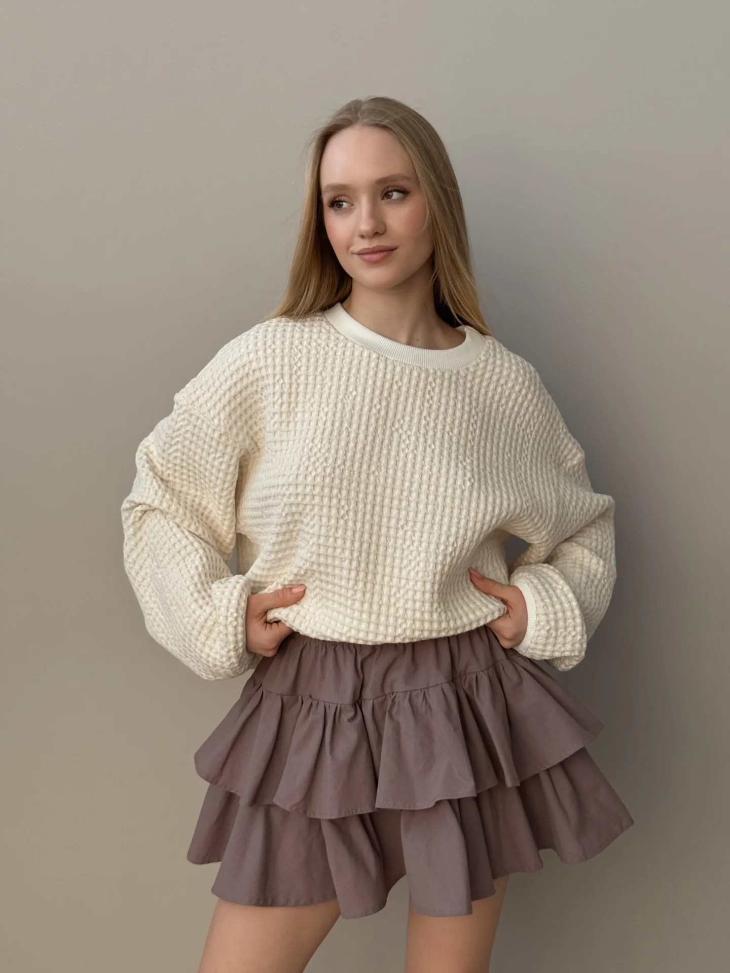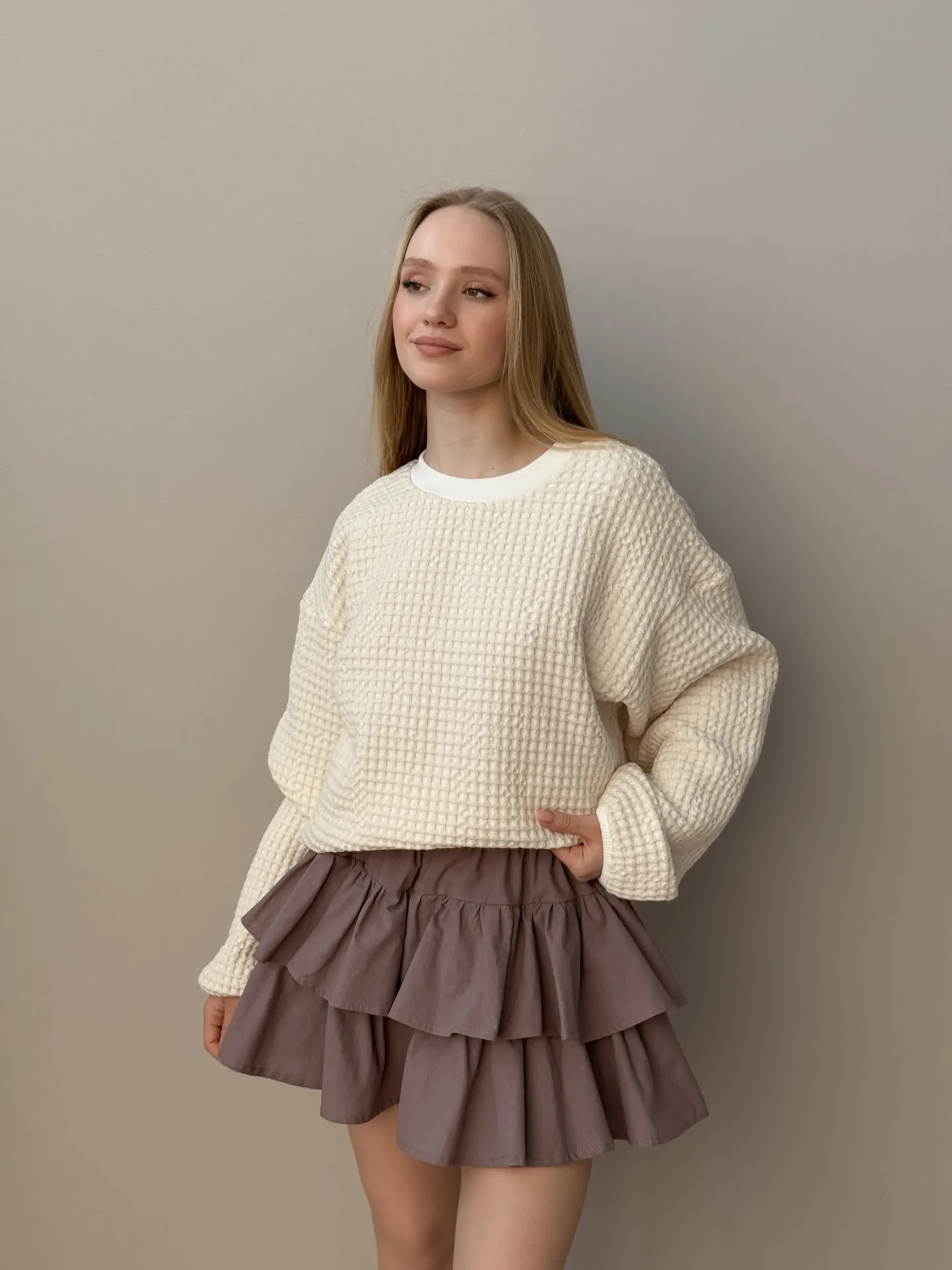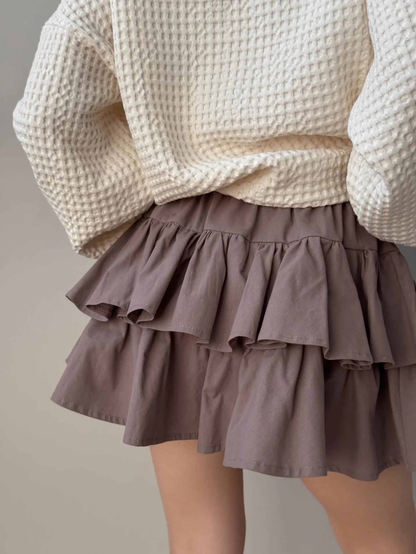 Spódnica z falbankami z popeliny łączy lekkość i kobiecość. Naturalny materiał zapewnia komfort, a delikatne falbanki dodają stylizacji subtelności. Idealny wybór na letnie spacery i romantyczne looki.