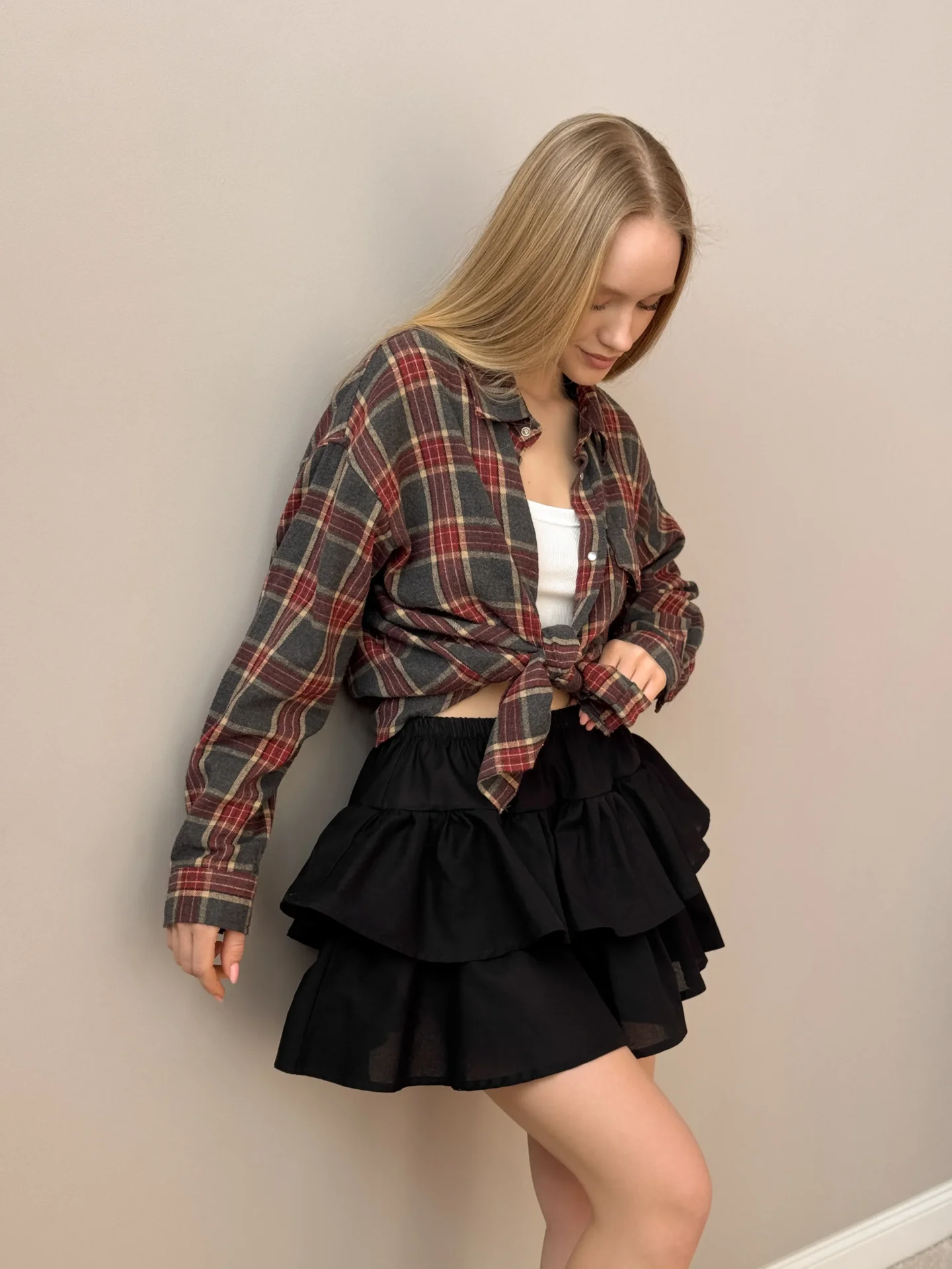 Spódnica z falbankami z popeliny łączy lekkość i kobiecość. Naturalny materiał zapewnia komfort, a delikatne falbanki dodają stylizacji subtelności. Idealny wybór na letnie spacery i romantyczne looki.