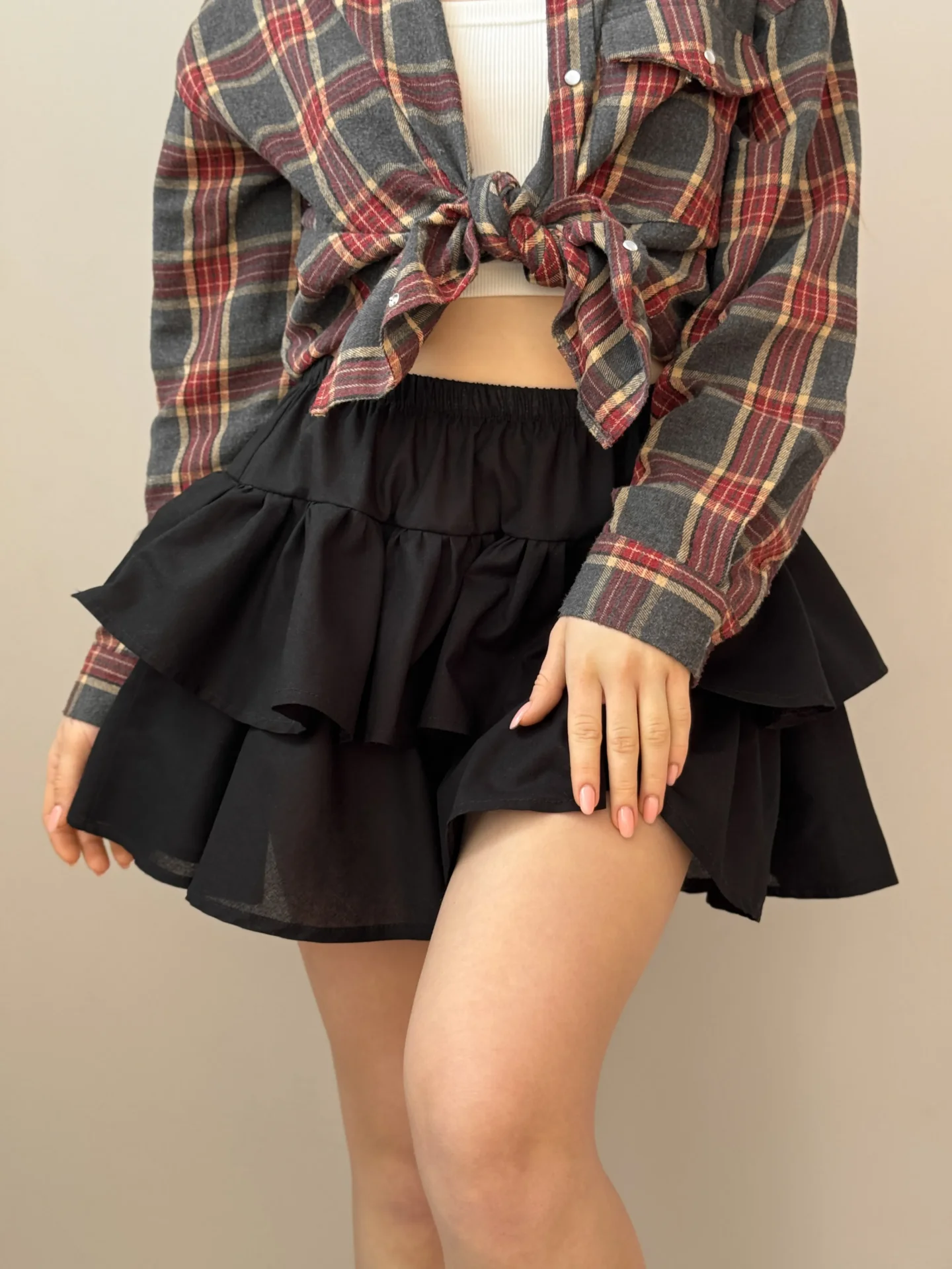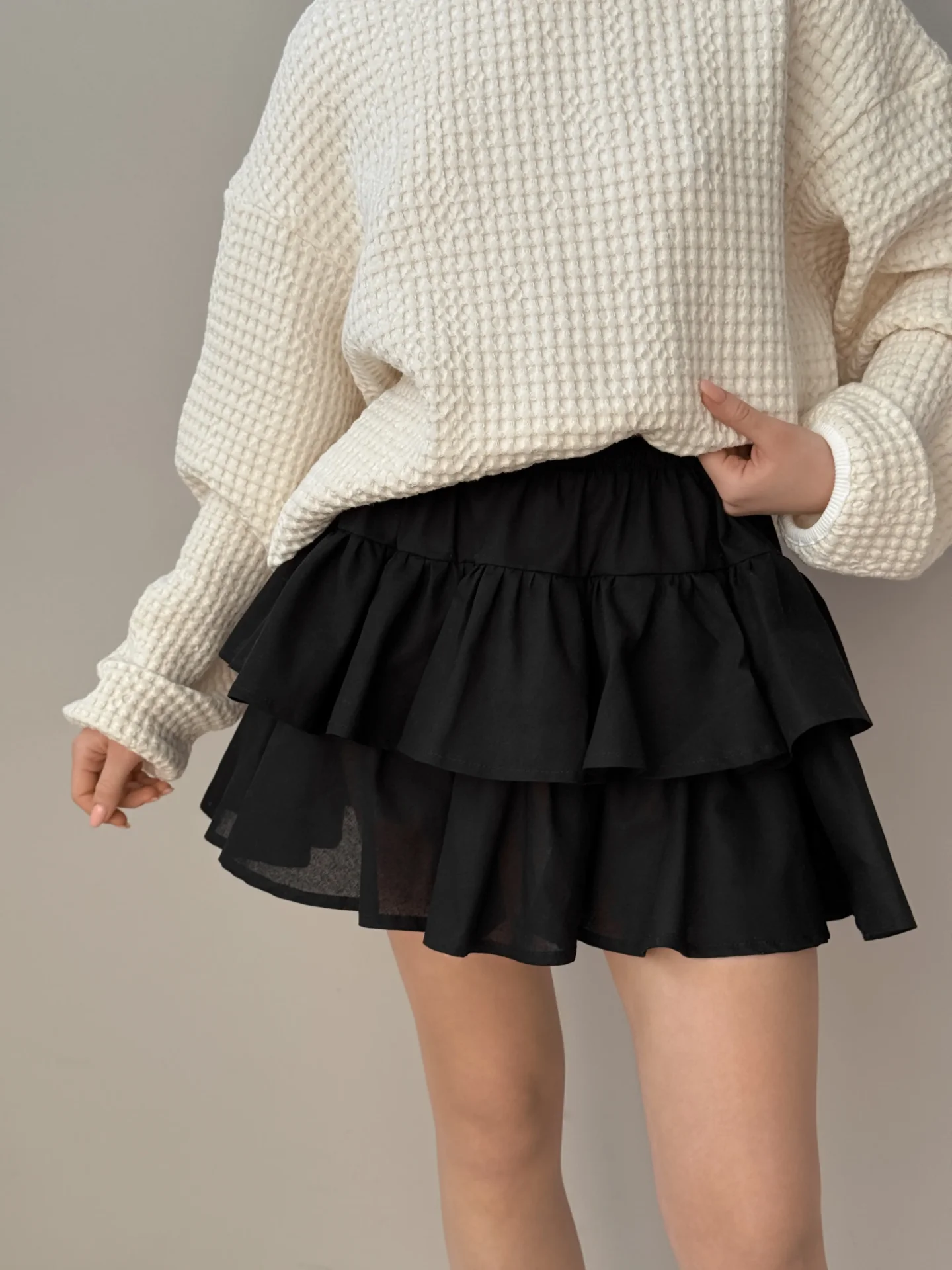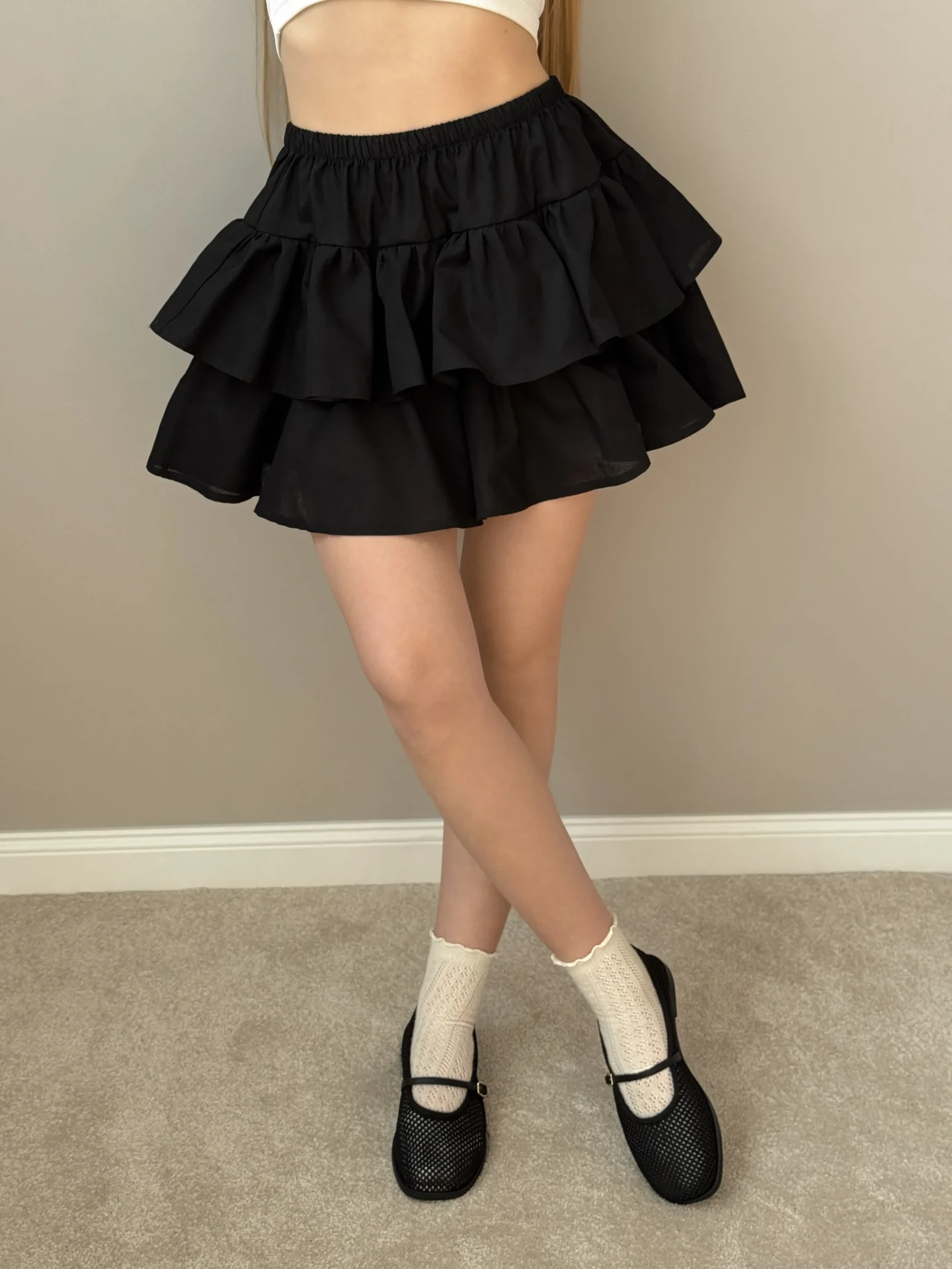 Spódnica z falbanami, z popeliny, czarna