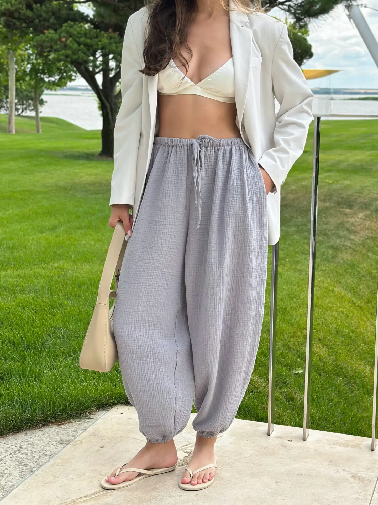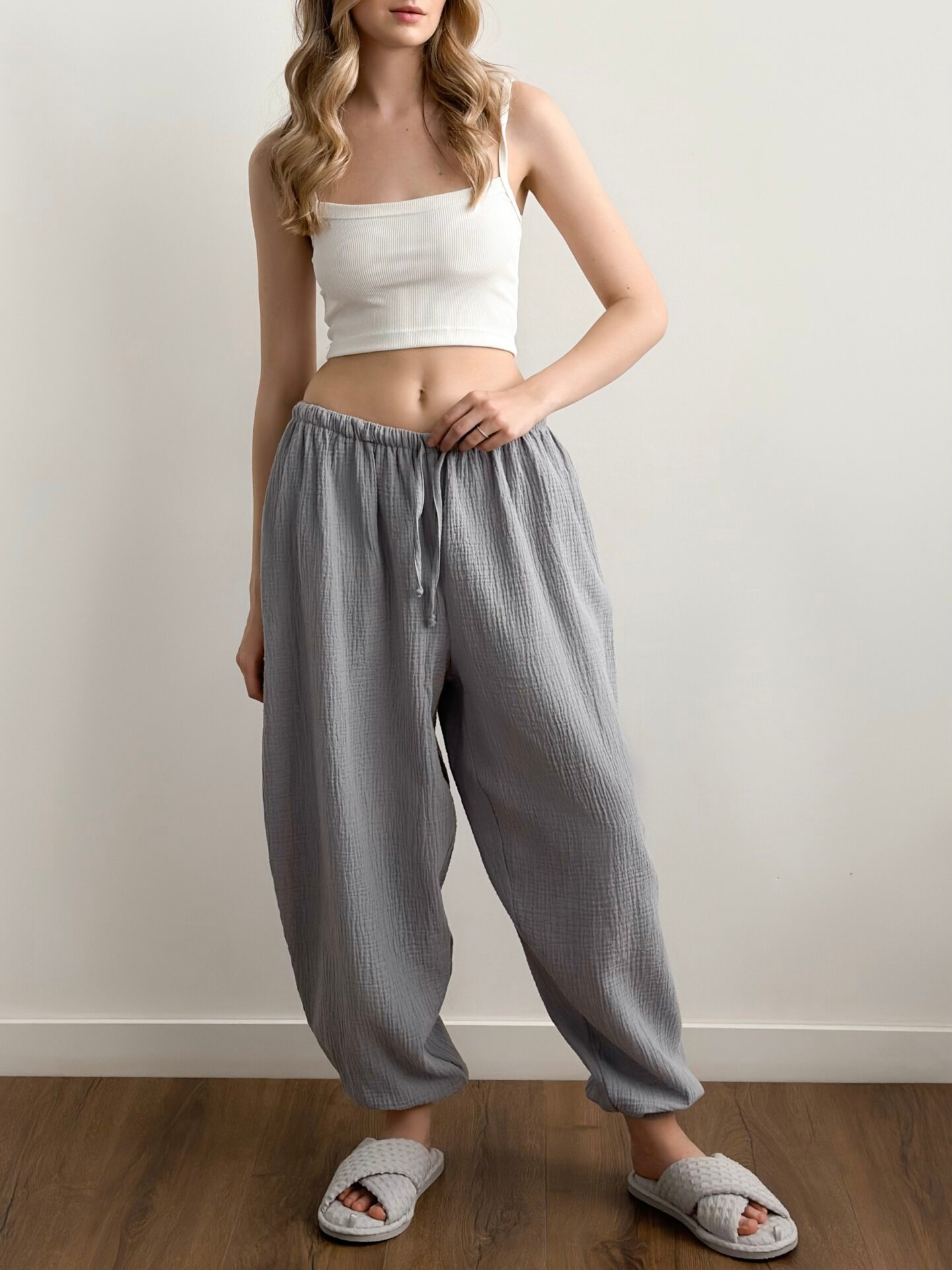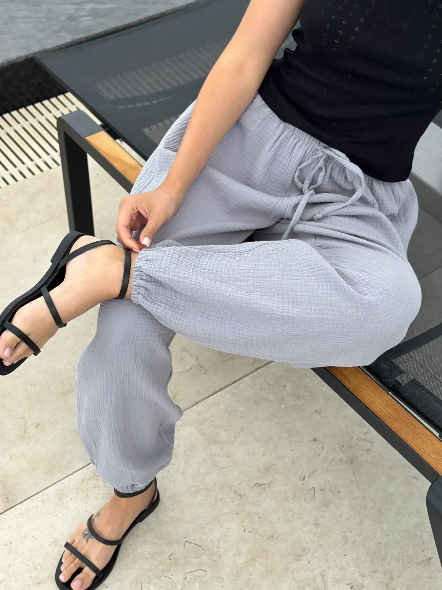 Spodnie Mono szarawary z muślinu dwuwarstwowego, szare