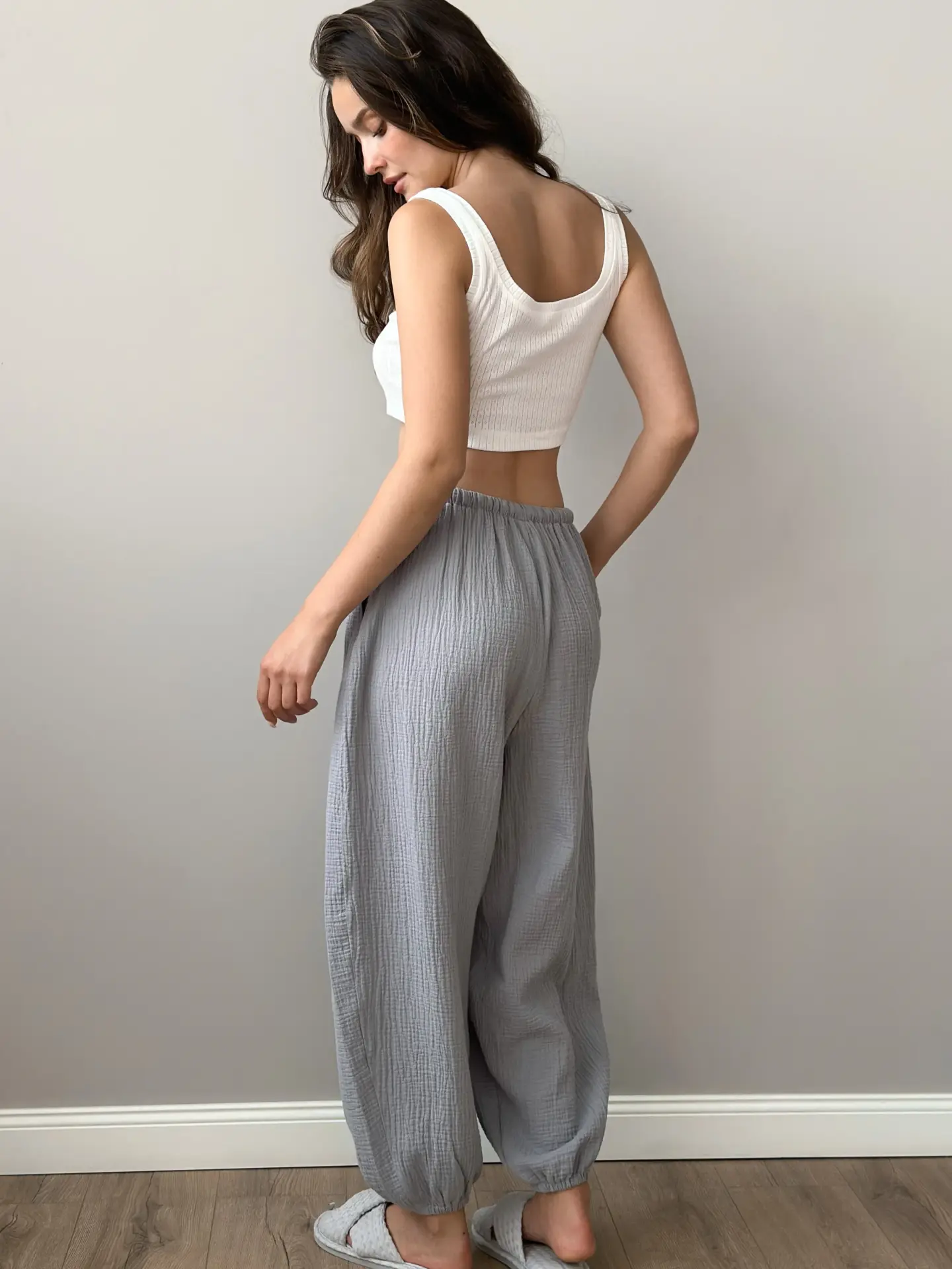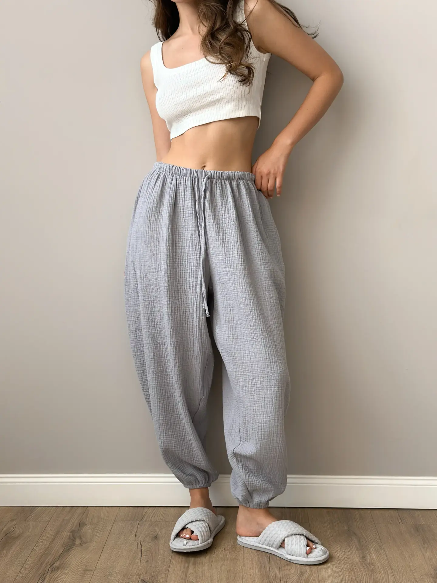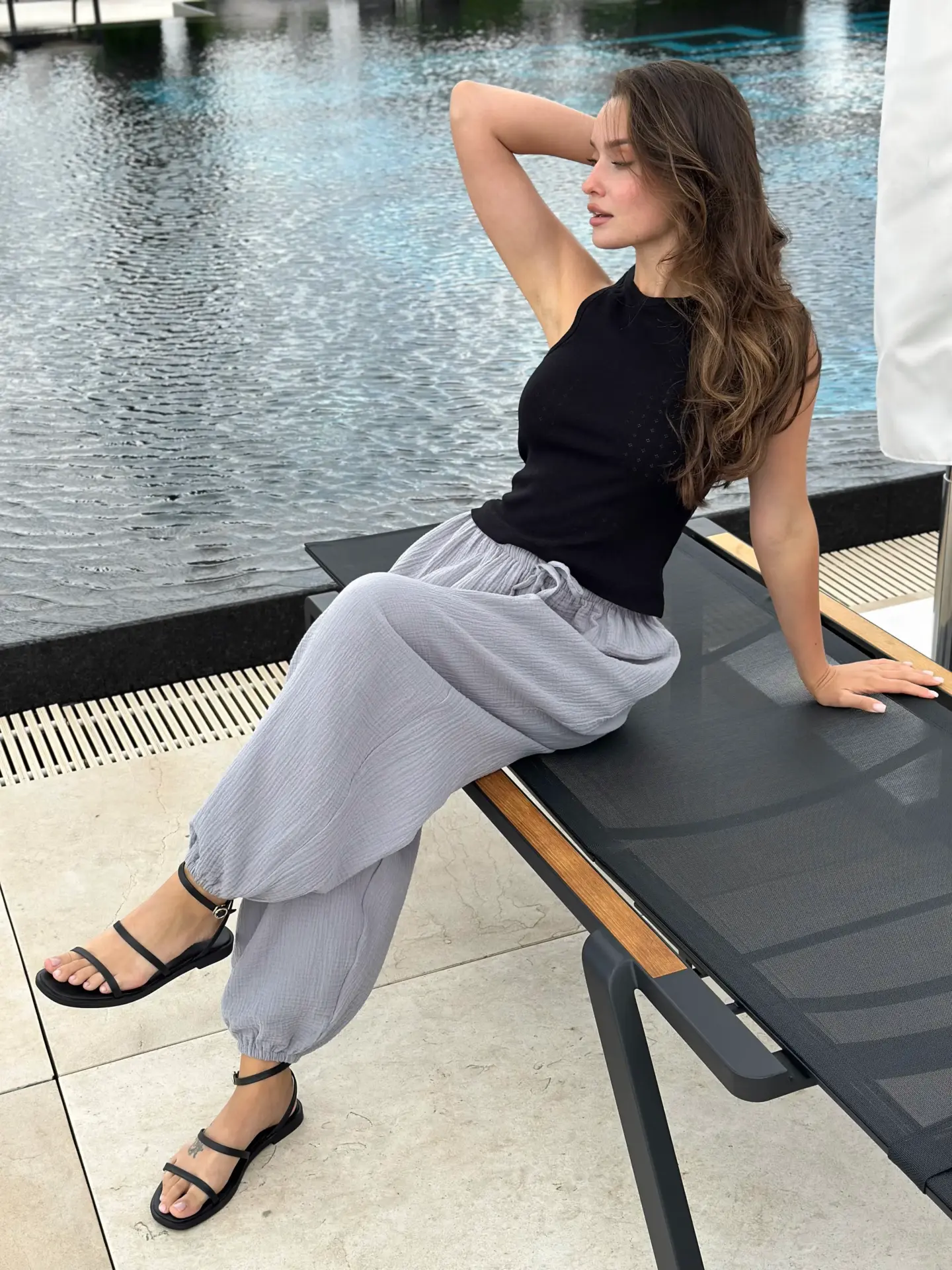 Spodnie Mono szarawary z muślinu dwuwarstwowego, szare