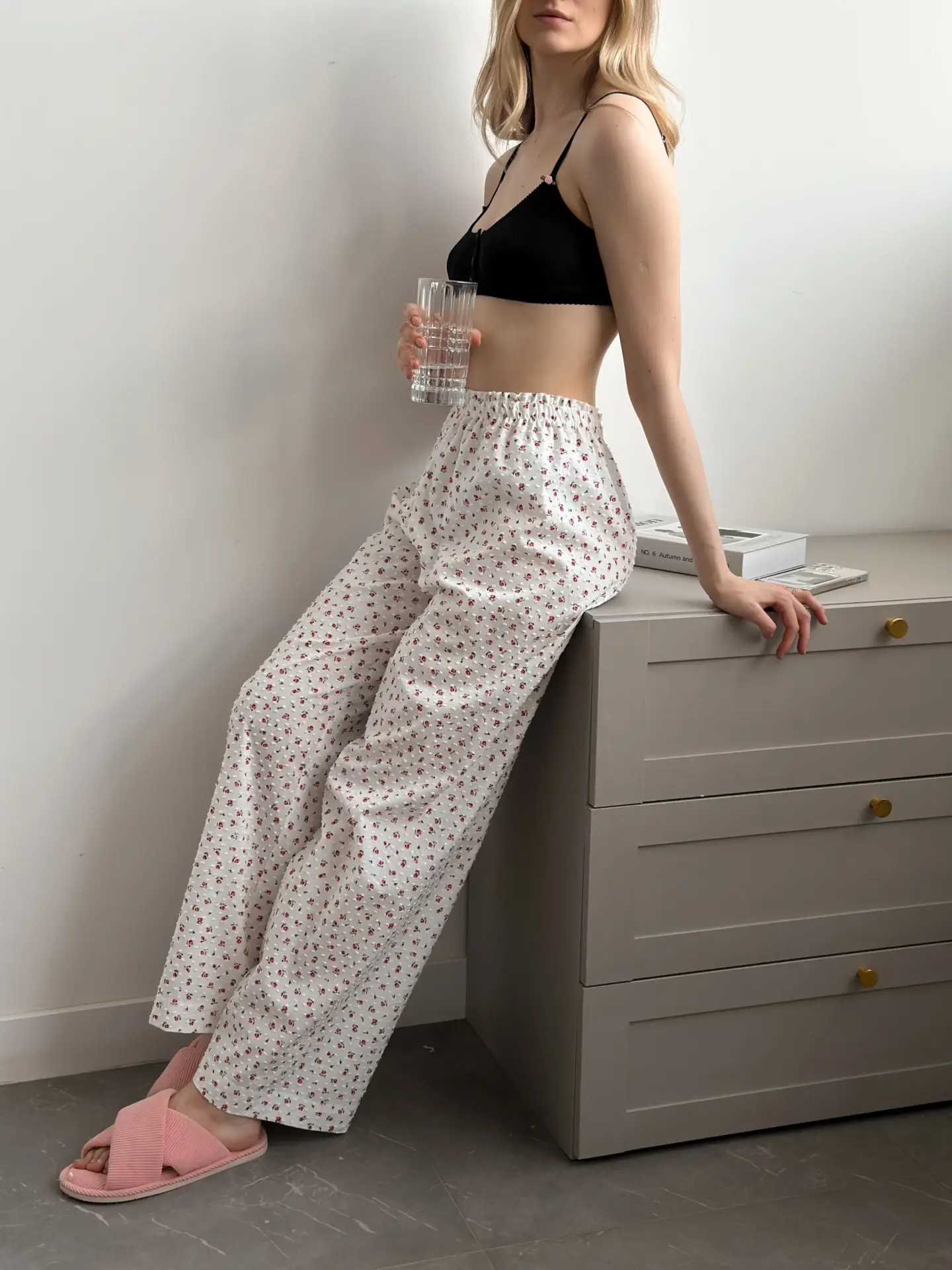 Spodnie Mono z batystu mają lekką fakturę i dają uczucie świeżości. Naturalna tkanina dobrze przepuszcza powietrze i jest przyjemna w dotyku. Nadają się do domu, wypoczynku lub letnich stylizacji.