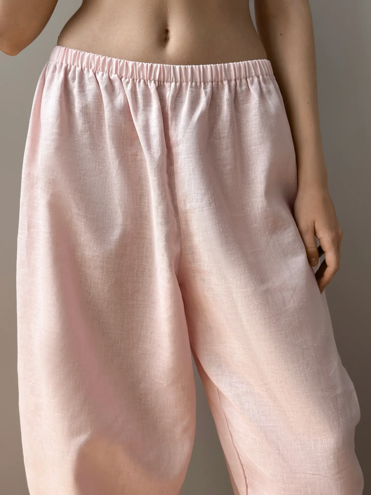 Spodnie Muki z lnu, różowe
