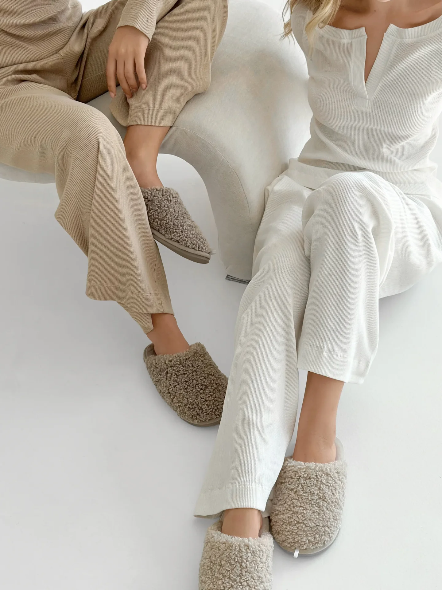 Szerokie spodnie z waflowej dzianiny łączą styl i komfort. Miękki, fakturowany materiał jest przyjemny w dotyku i zapewnia swobodę ruchów. Idealny wybór do przytulnego wypoczynku w domu lub tworzenia luźnych, codziennych stylizacji.