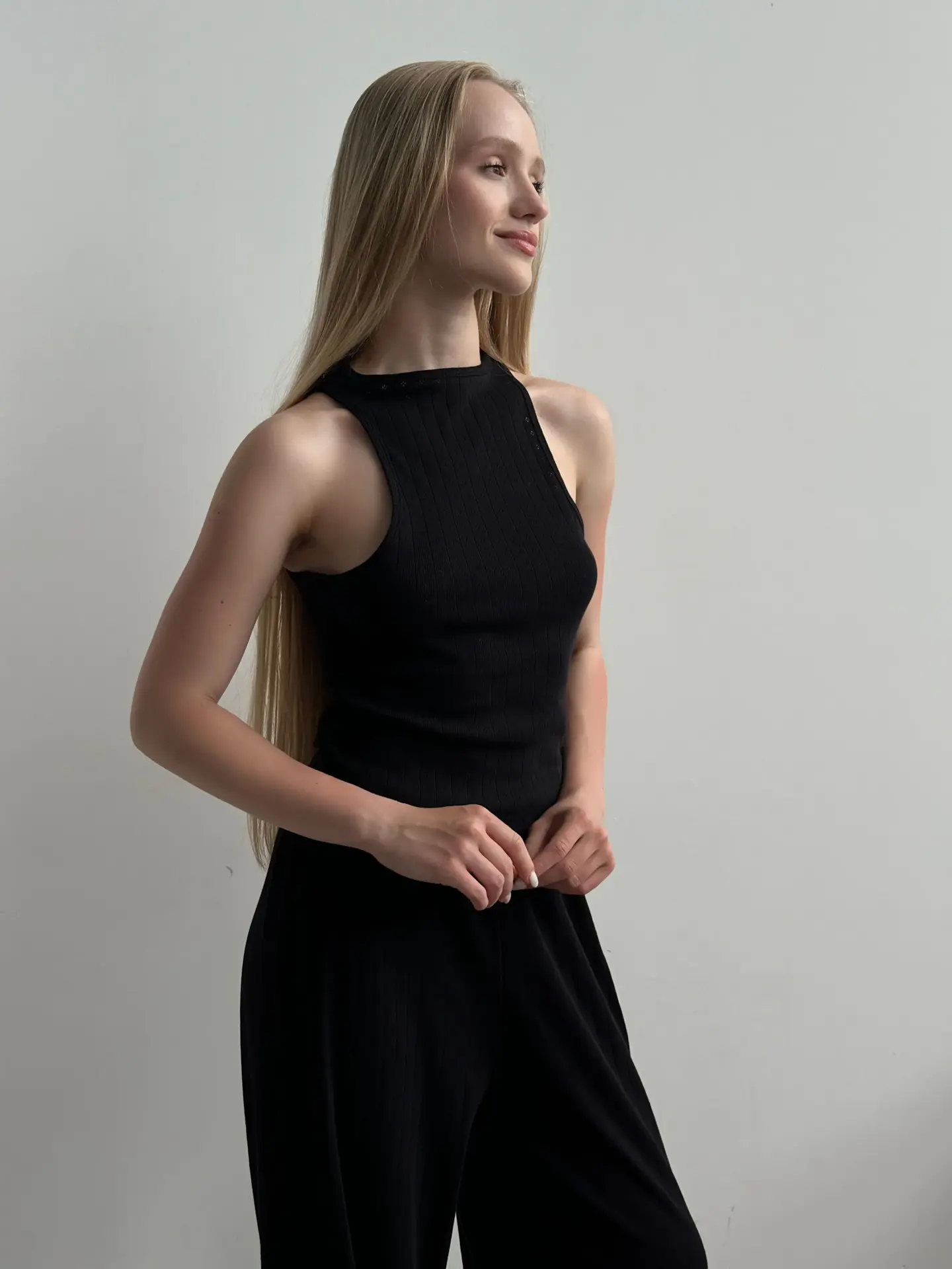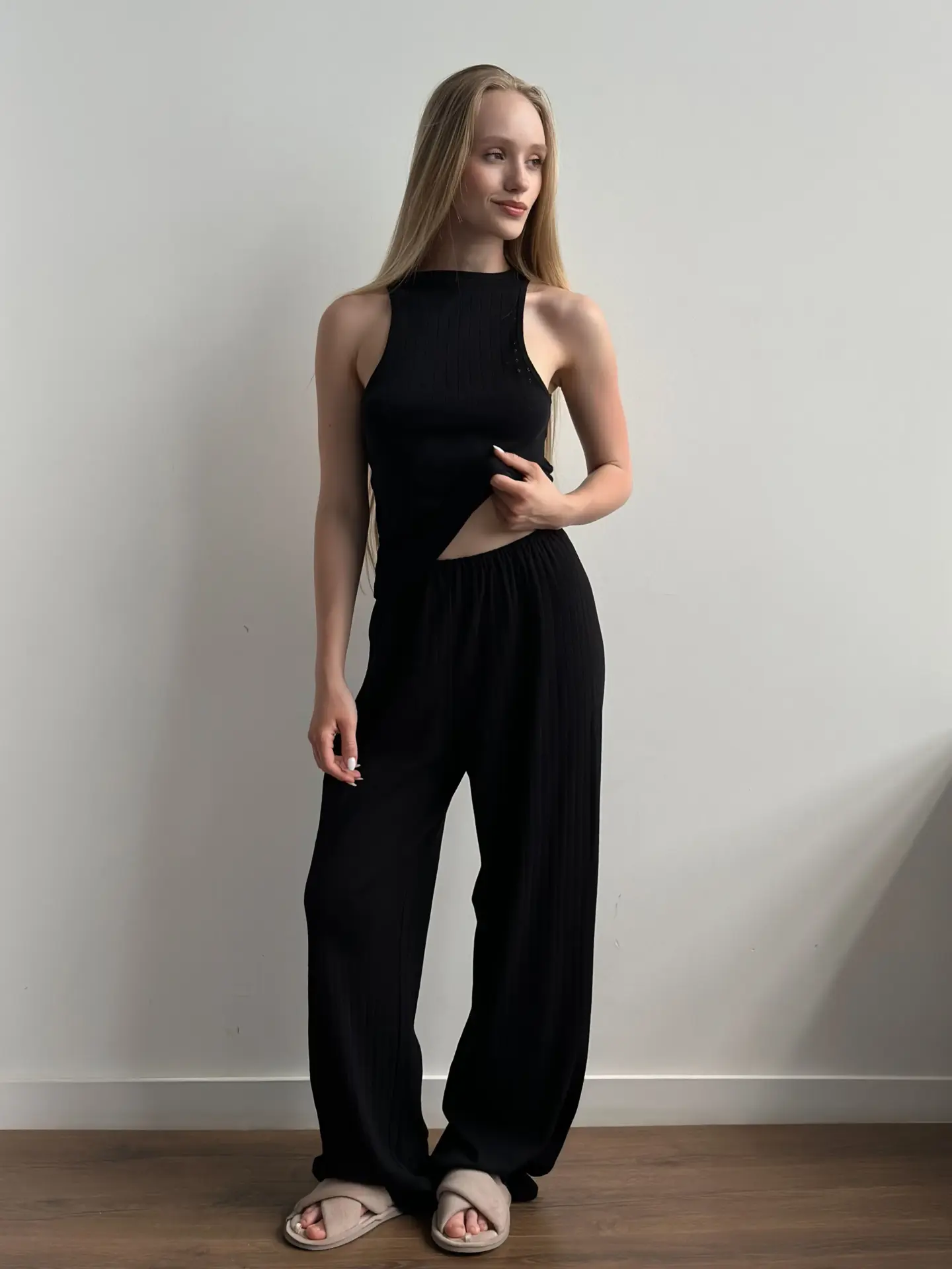 Spodnie szerokie z ribany prążkowanej, czarne