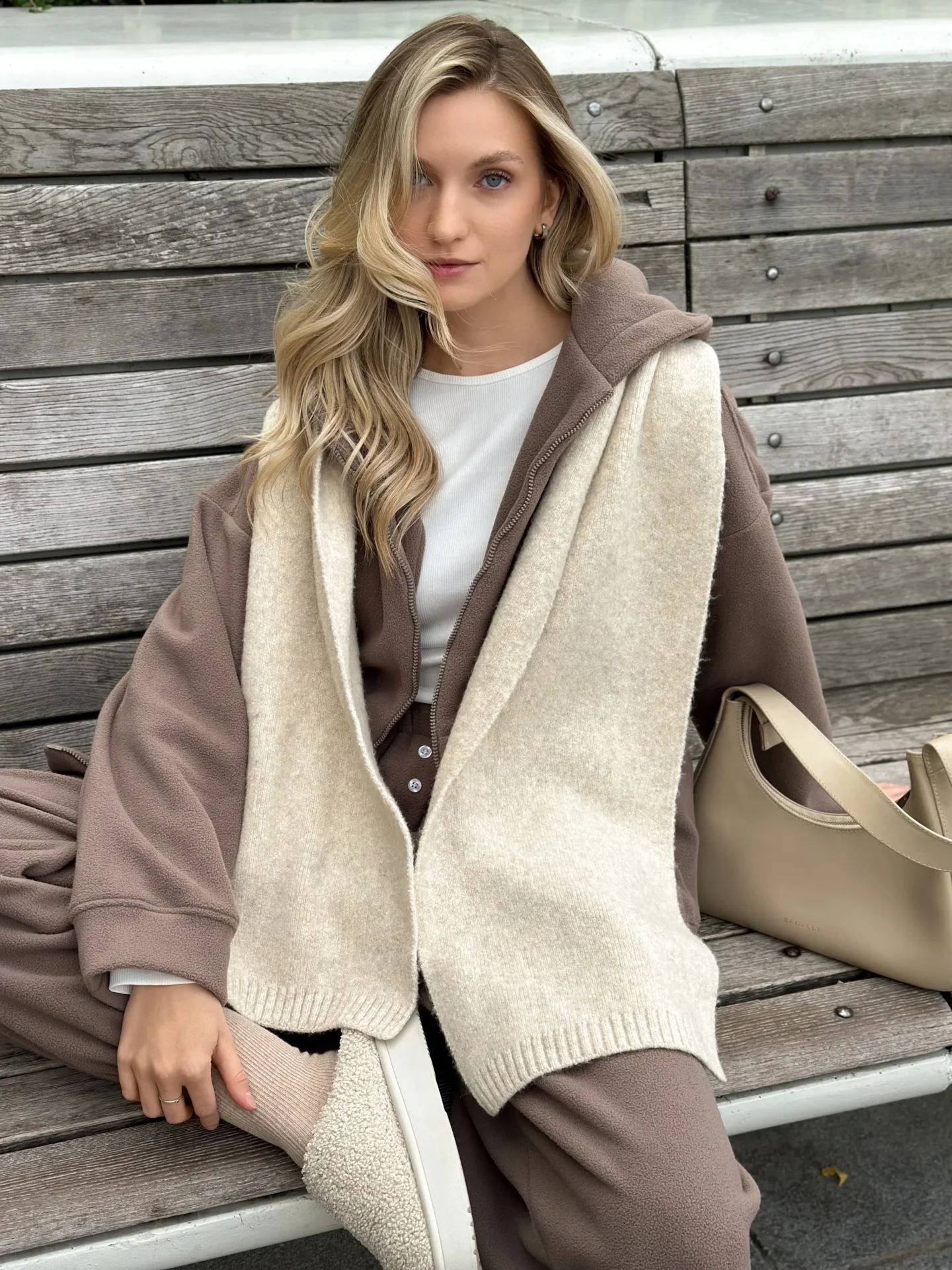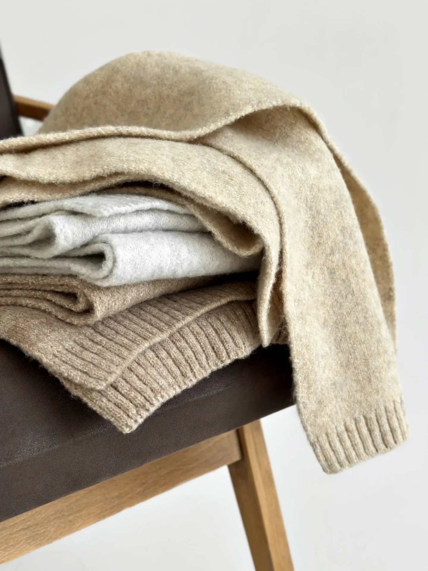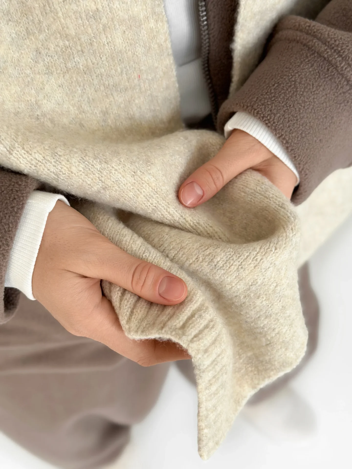 Szal wykonany z miękkiej, puszystej włóczki zapewnia uczucie ciepła i przytulności. Starannie wykonany splot i stonowane odcienie dodają elegancji każdej stylizacji. Idealny dodatek na zimowy sezon — doskonale pasuje do płaszcza, puchowej kurtki czy swetra.