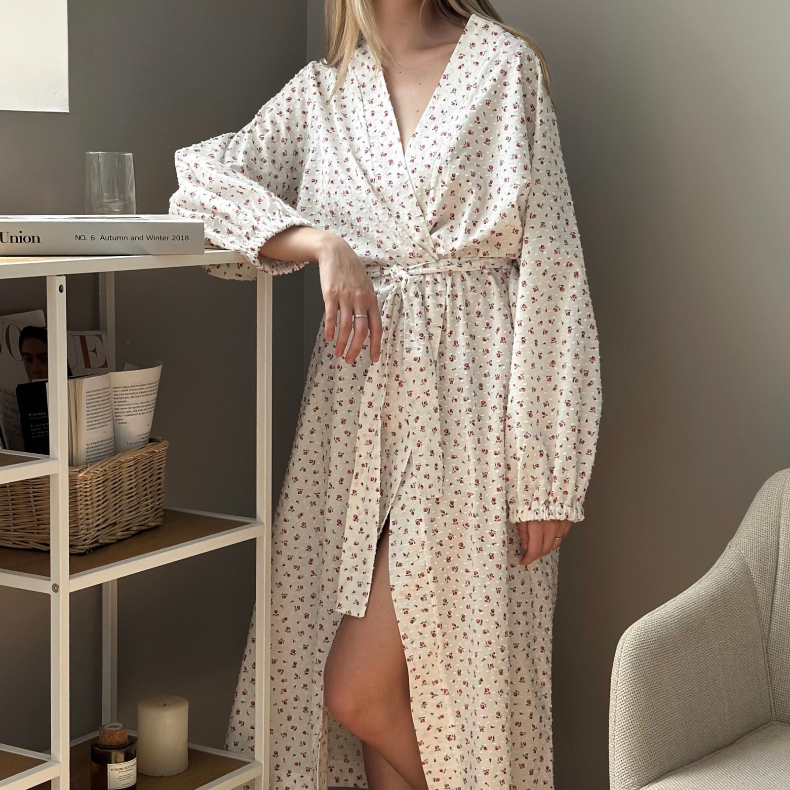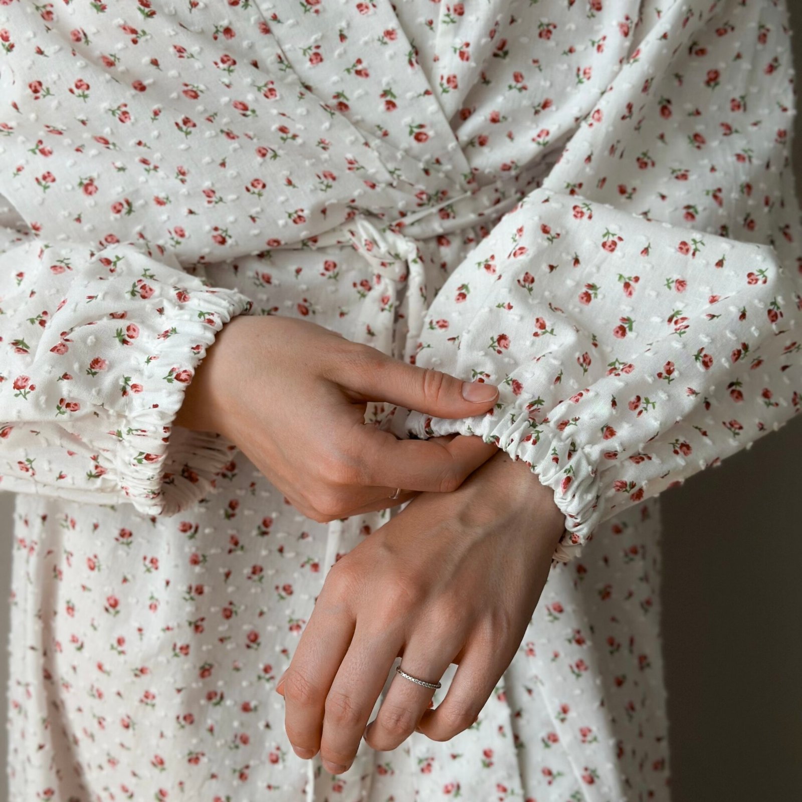 Długi szlafrok z batystu w delikatny nadruk czerwonych róż na białym tle łączy lekkość tkaniny z wyrafinowaną estetyką. Lekka, przewiewna faktura zapewnia komfort, czyniąc model idealnym do domowych stylizacji i porannych rytuałów.Długi szlafrok z muślinu zapewnia komfort i lekkość podczas codziennego noszenia. Naturalna, oddychająca tkanina jest przyjemna dla ciała i daje poczucie wygody. Prosty, stonowany fason sprawdzi się w domu, podczas wypoczynku lub letnich wyjazdów.
