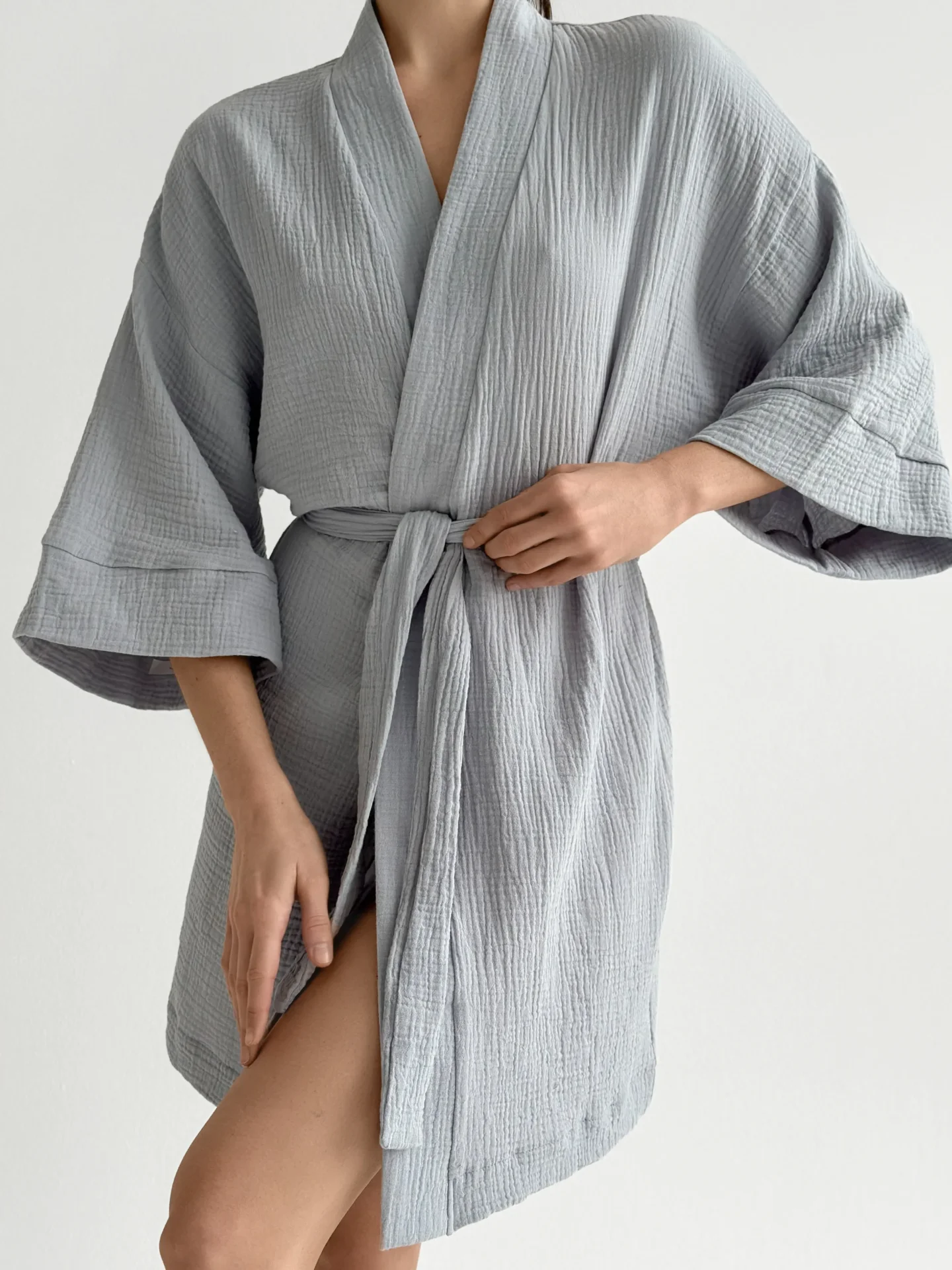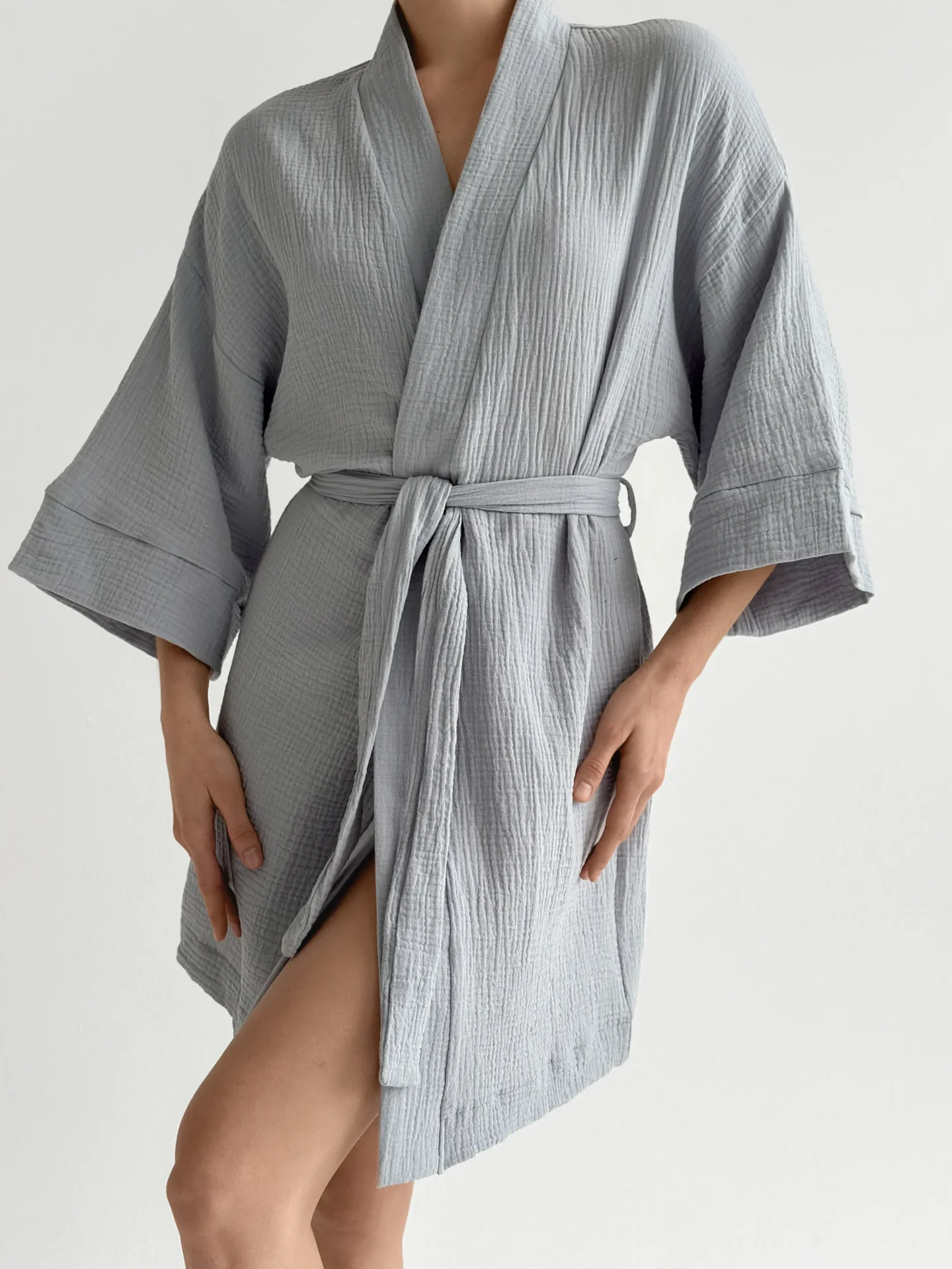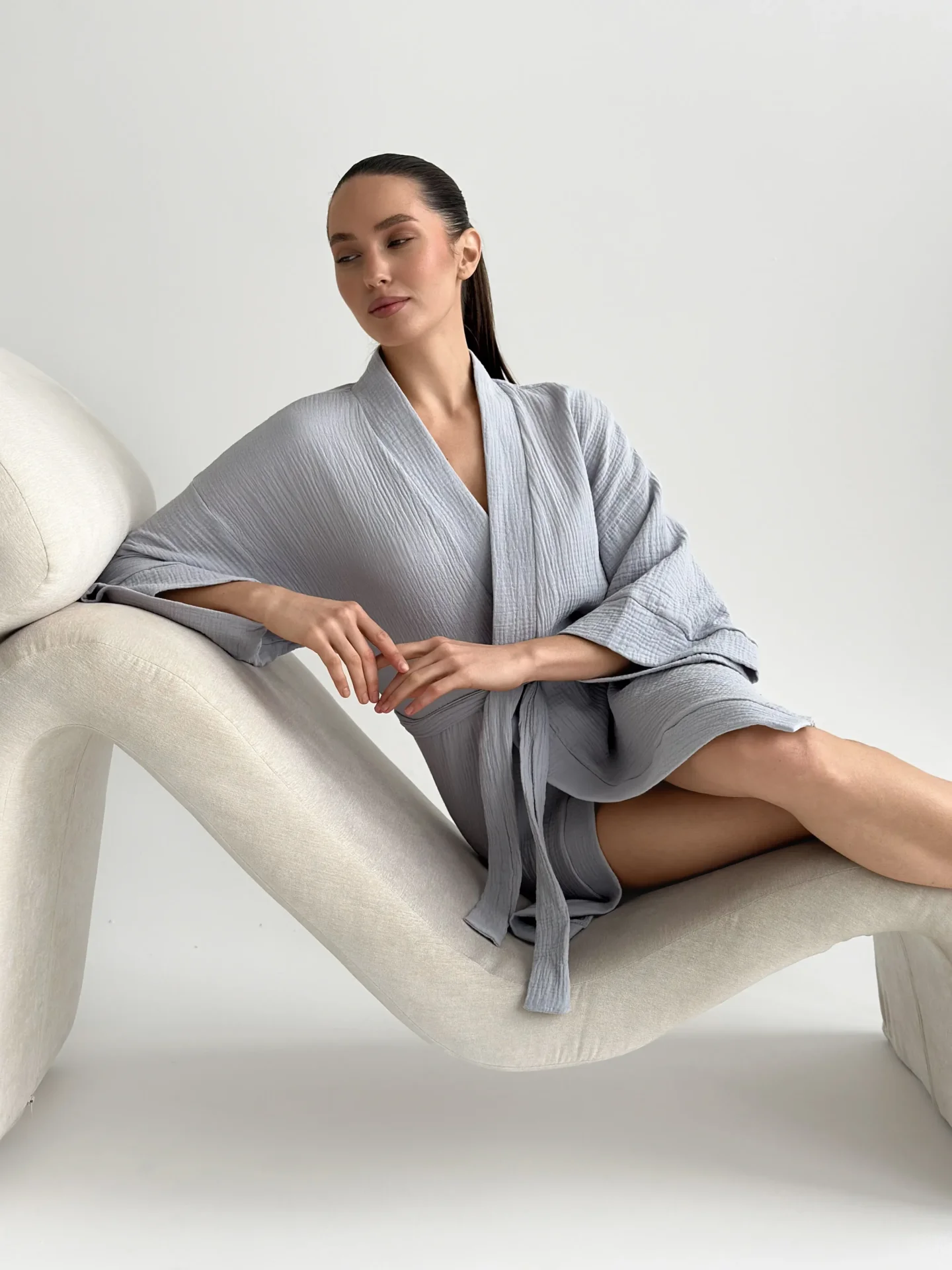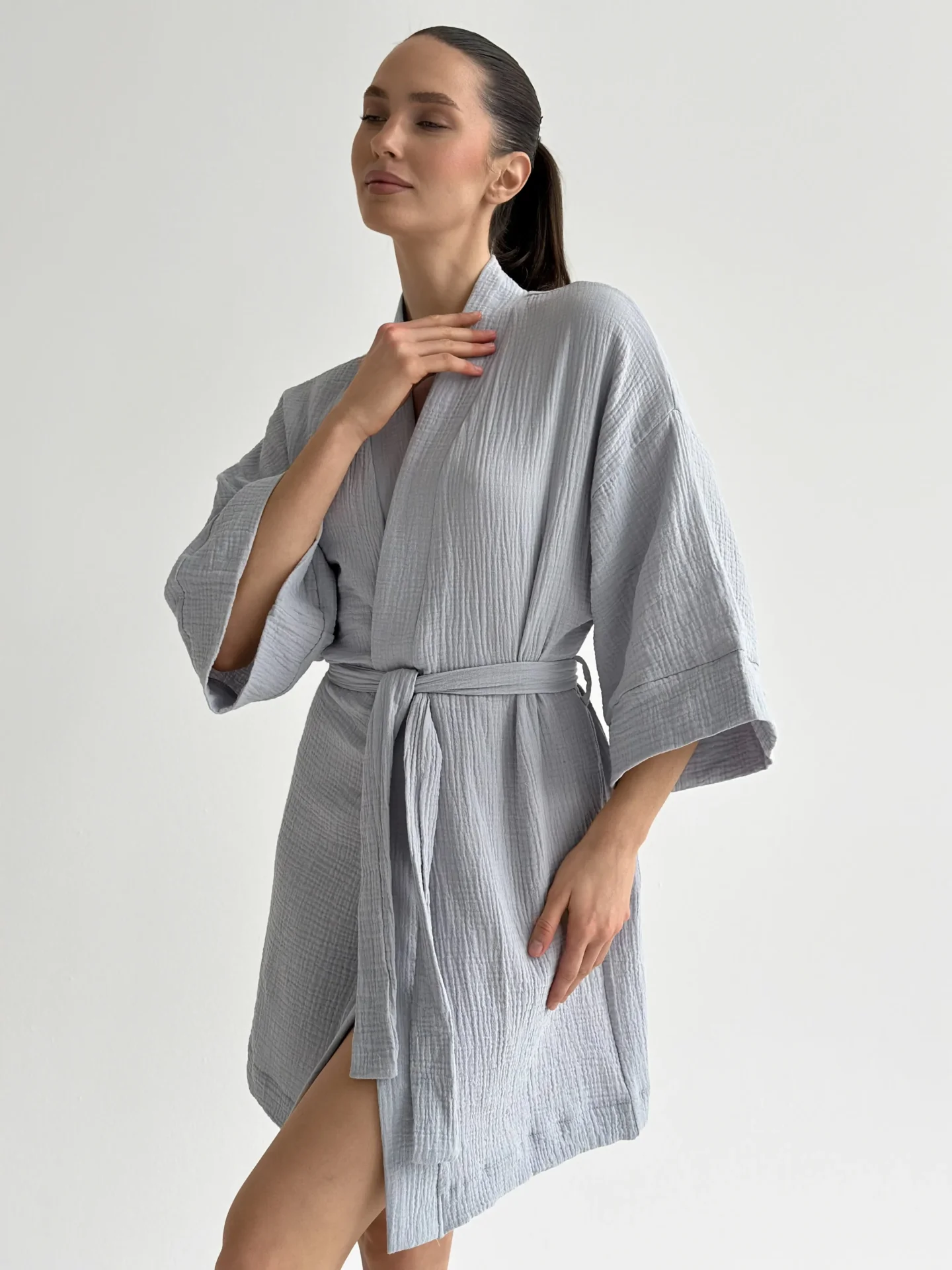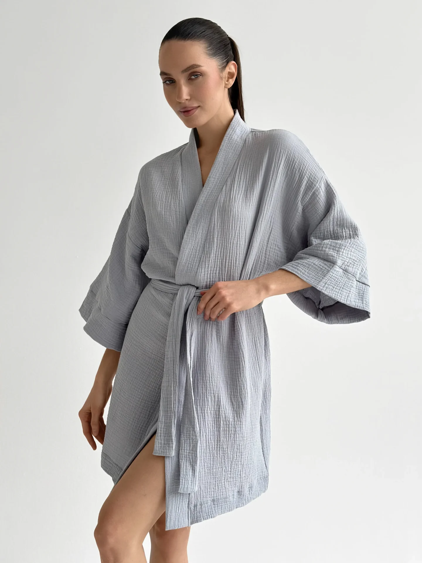 Szlafrok krótki kimono z muślinu dwuwarstwowego, szary