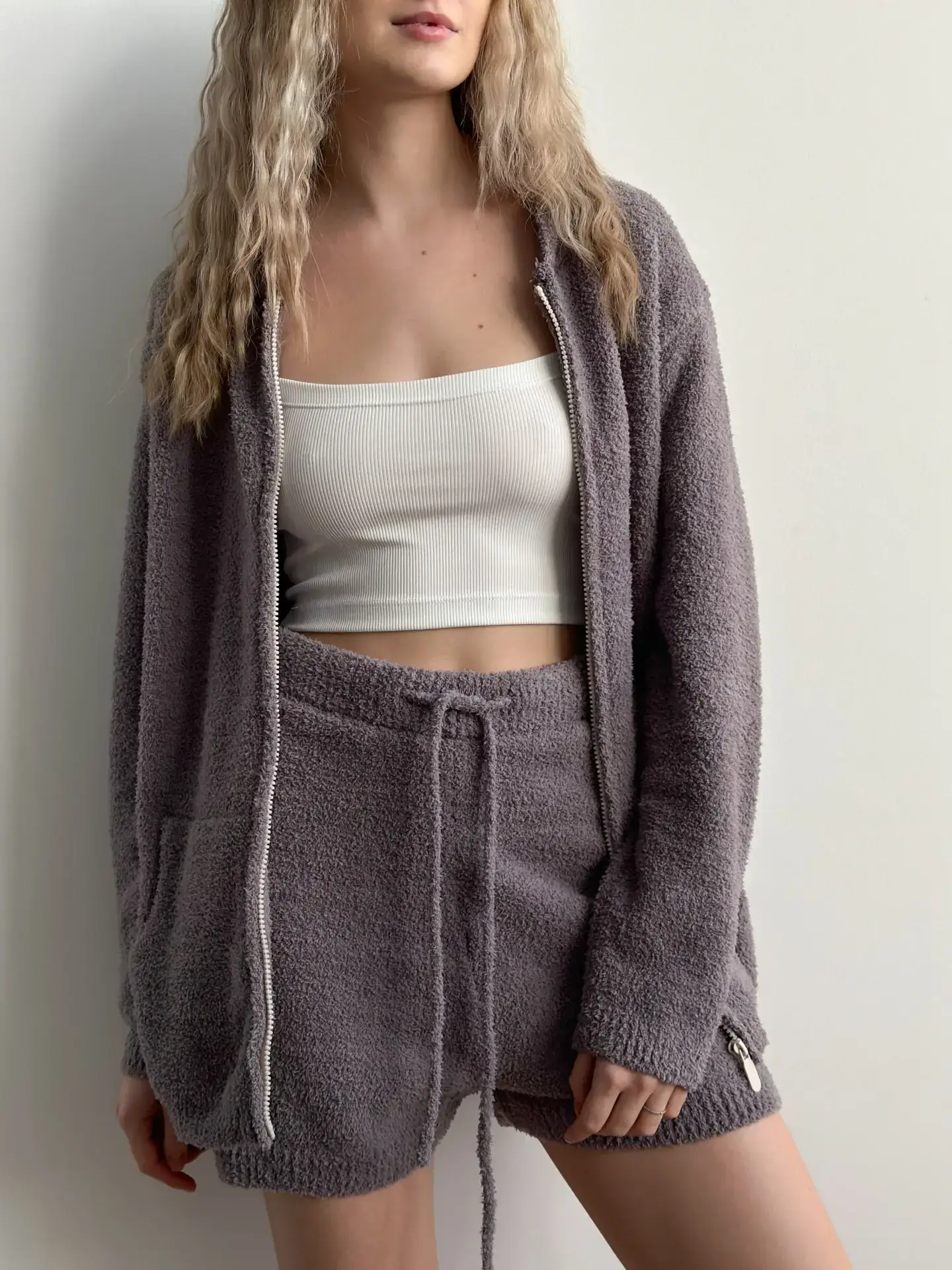 Szorty Soft z dzianiny puszystej, grafitowe