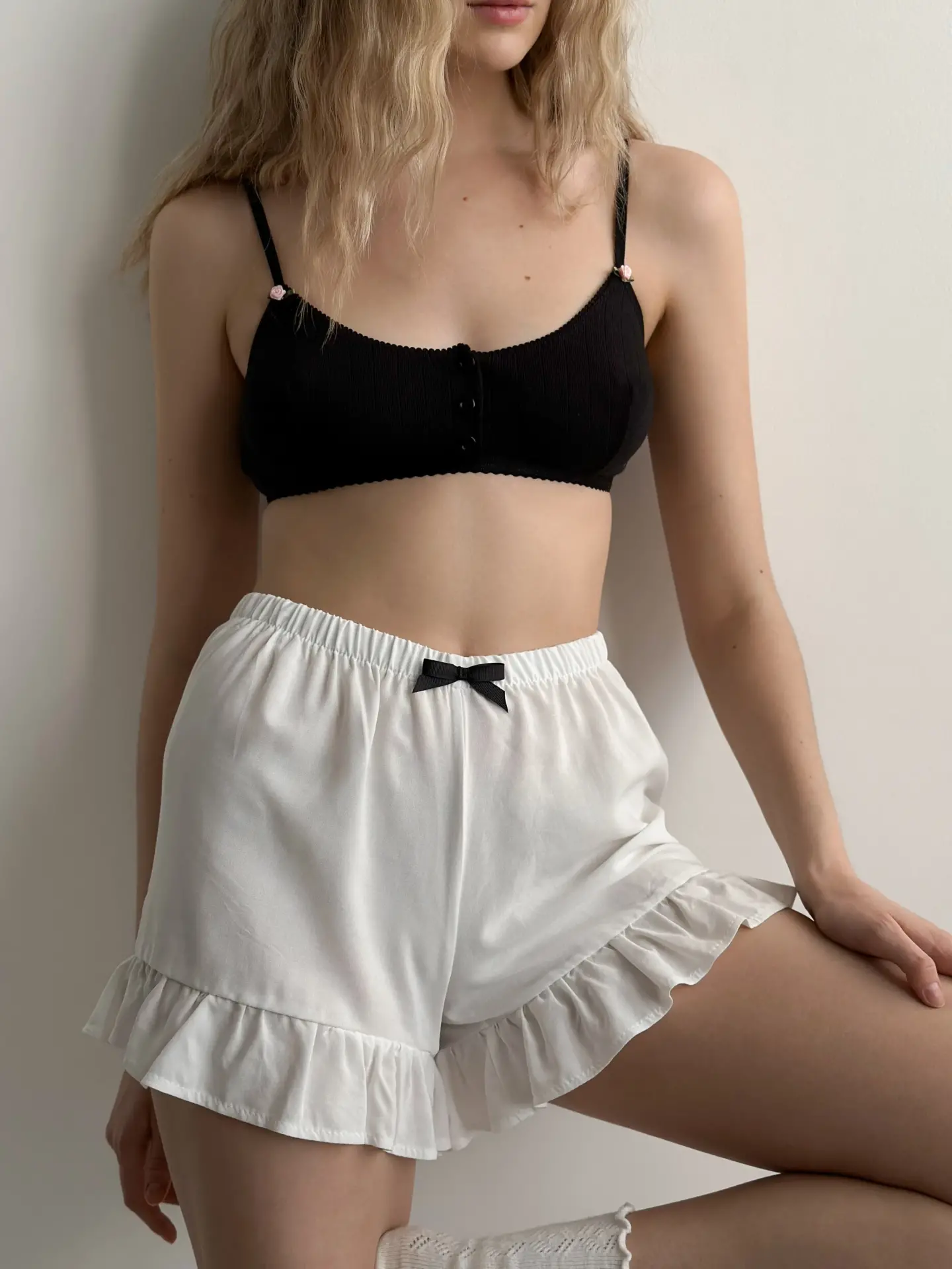 Szorty z falbanami, ze staplu, mleczne - Miso