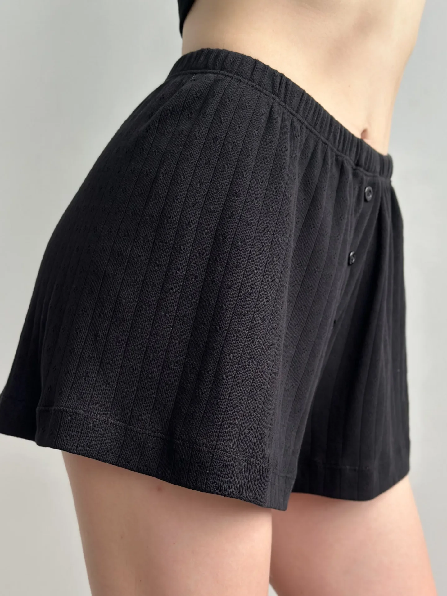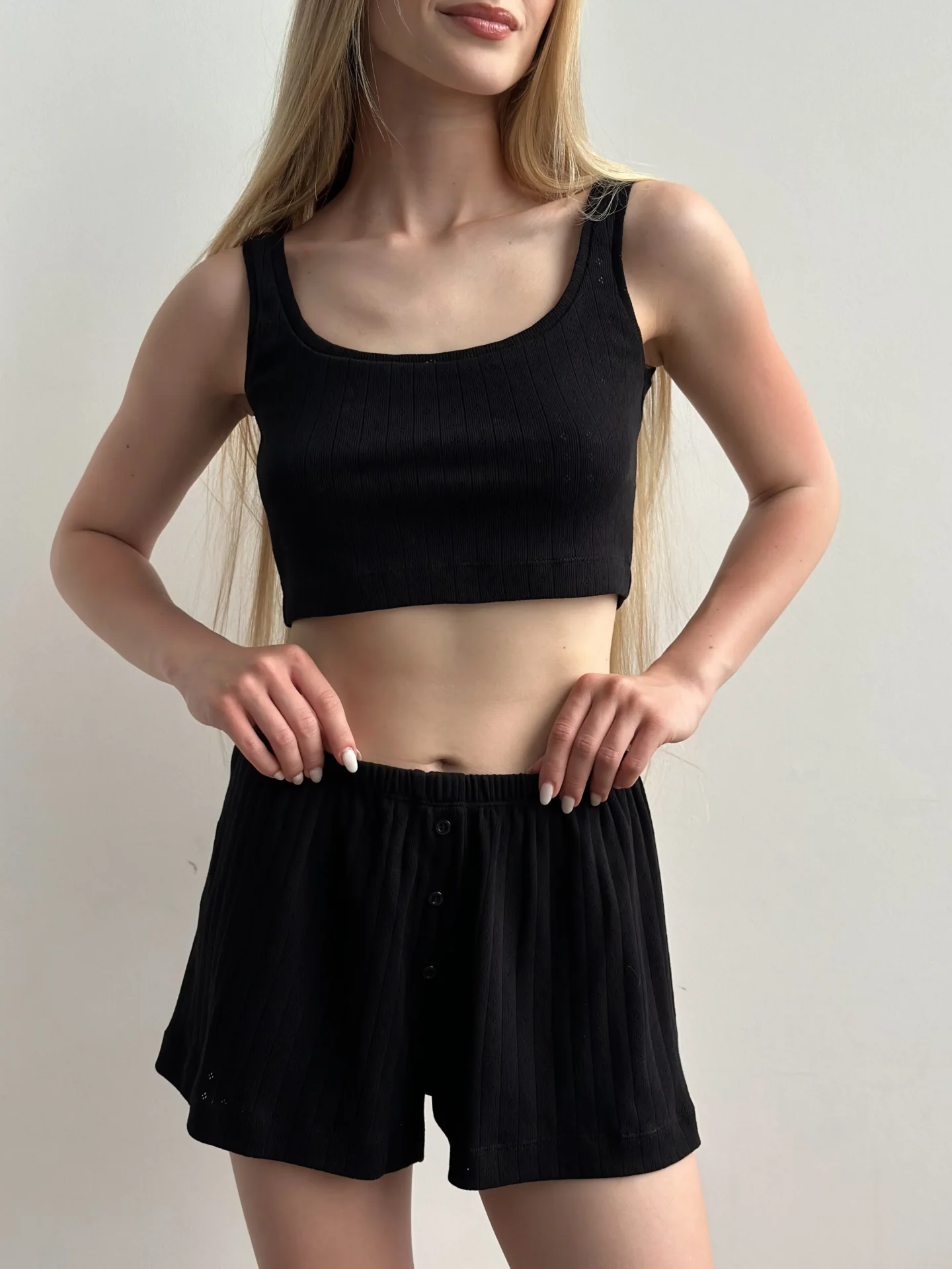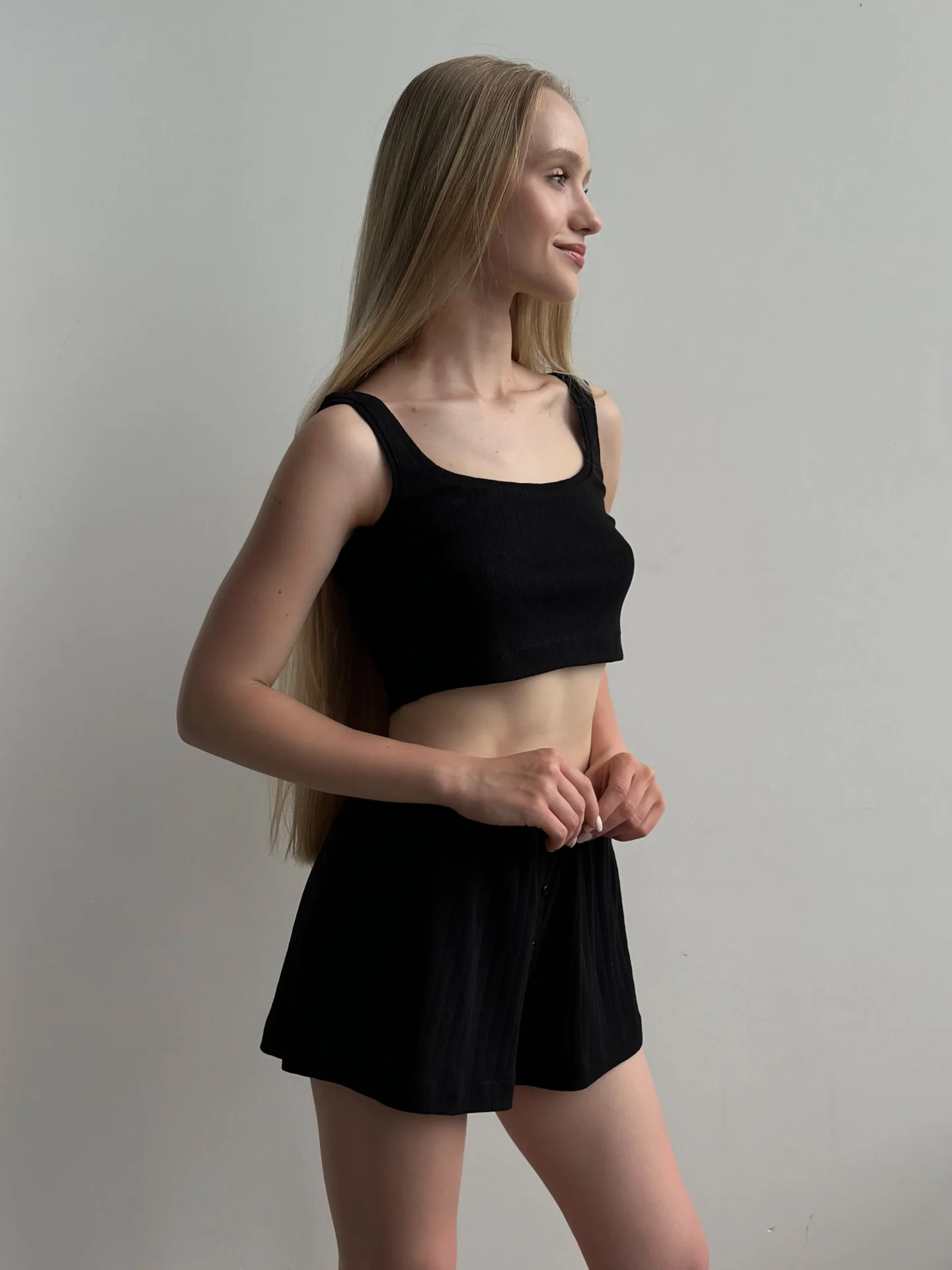 Szorty z rozporkiem ozdobnym, z ribany prążkowanej, czarne